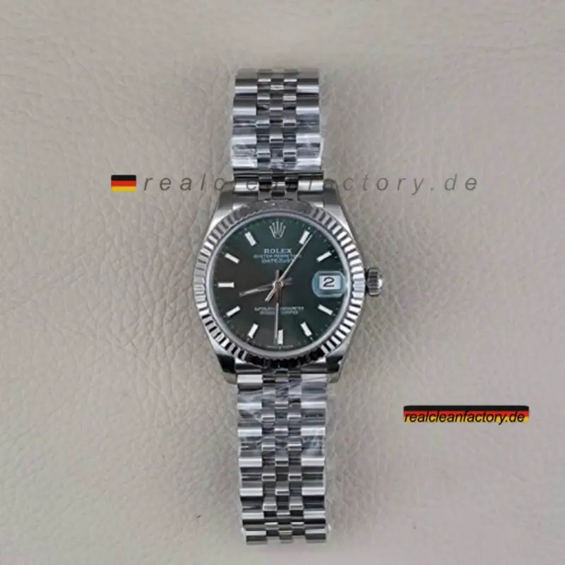 Die Kunstfertigkeit, die in das Clean Factory Rolex Zifferblatt, die Zeiger und Stundenmarkierungen einfließt, ist der echten Rolex am nächsten – ein Standard, den minderwertigere Replikas oft nicht erreichen. Der Druck auf dem Zifferblatt, der Glanz der Zeiger und die präzise Ausrichtung der Stundenmarkierungen sorgen für eine exakte Nachbildung der Originaluhr