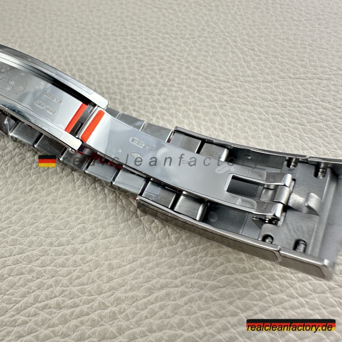 - Im Gegensatz zu Jubilee-Armbändern, die eher auf Formalität ausgerichtet sind, verleiht das Oyster-Armband der Uhr eine Flexibilität, die sie für jede Gelegenheit bereit macht. Ob beim Anziehen eines Anzugs oder für ein Wochenende, die Uhr passt immer. Und weil Clean Factory die Details richtig hinbekommt – wie die sanfte Funktion der Easylink-Erweiterung und die saubere Artikulation jedes Gliedes – trägt sich die Uhr genauso bequem wie ein authentisches Modell.
