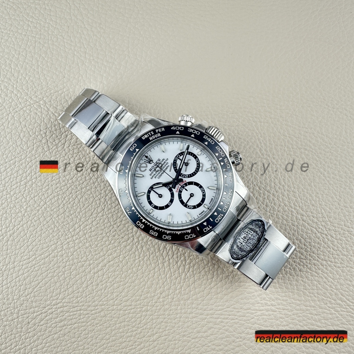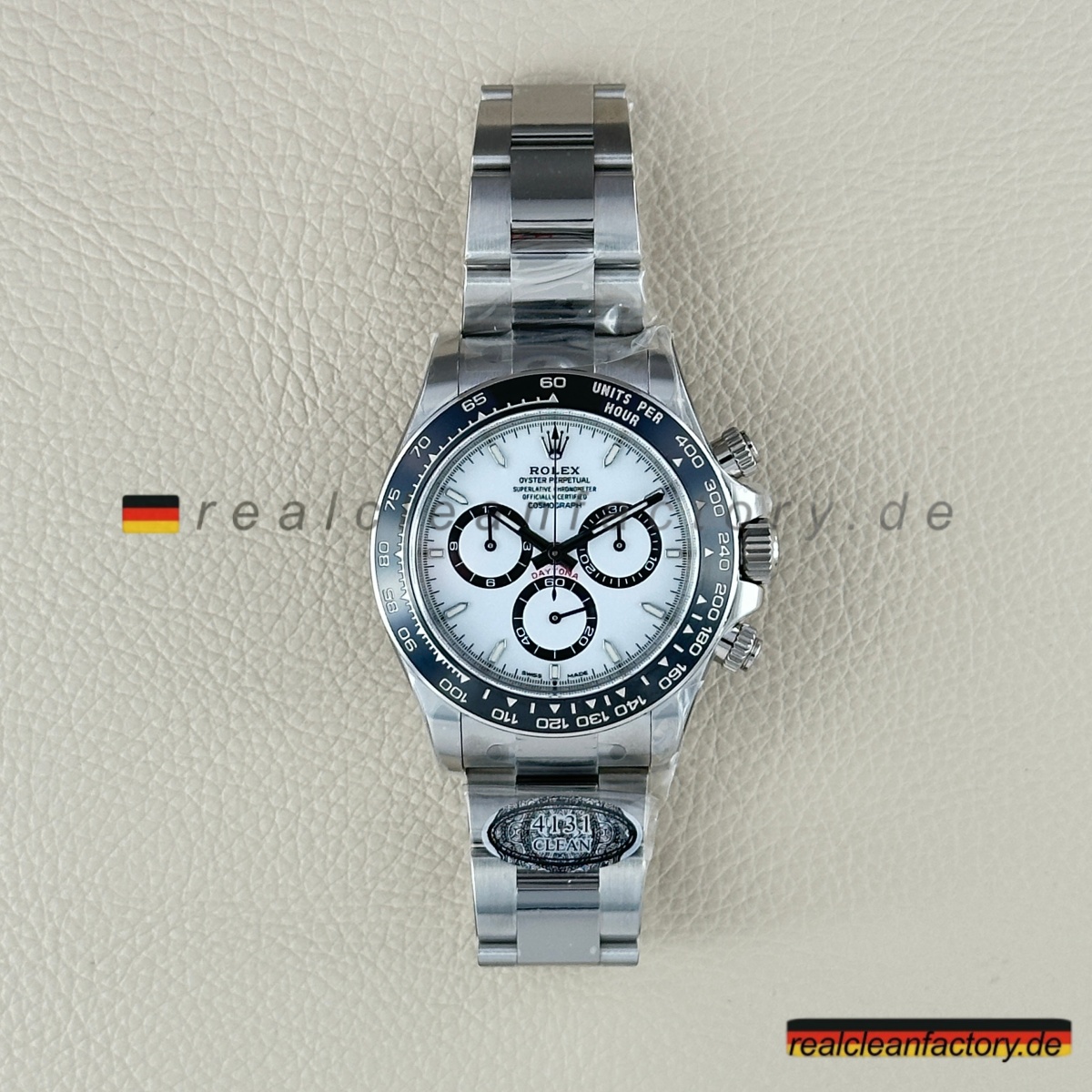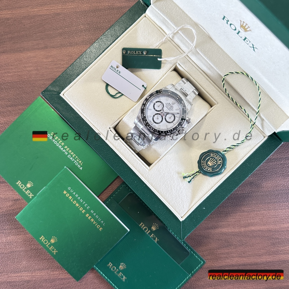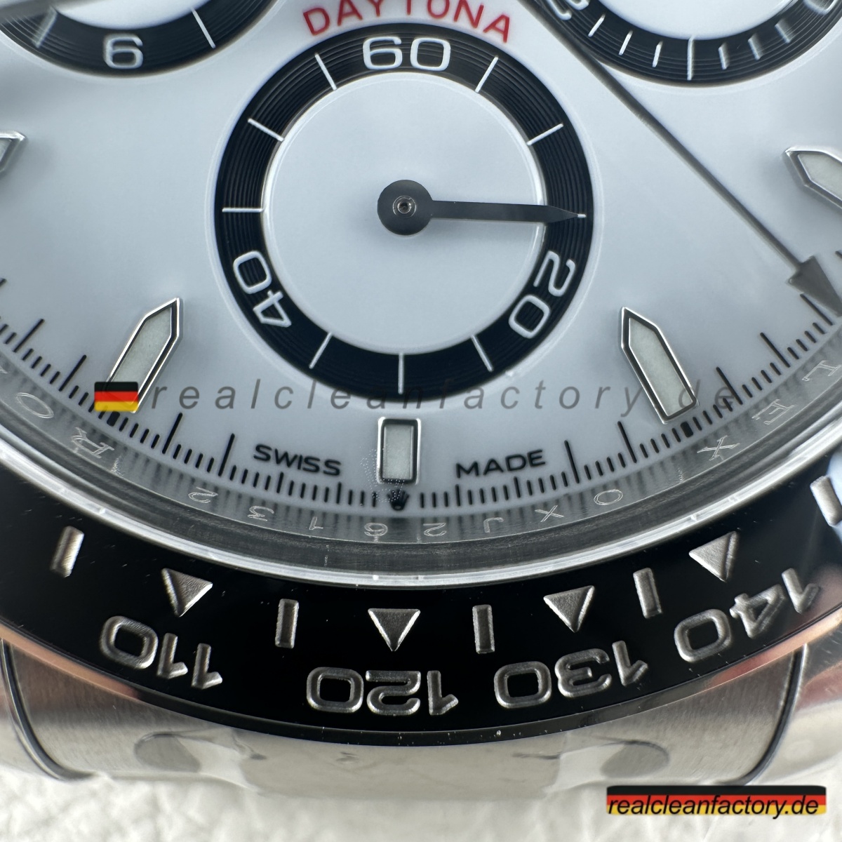 Start Laden Rolex Clean Factory Rolex Daytona 126500LN-0001 Panda | Weißes Zifferblatt Schwarze Subdials | 4131 Uhrwerk | Perfektes Schneckenmuster