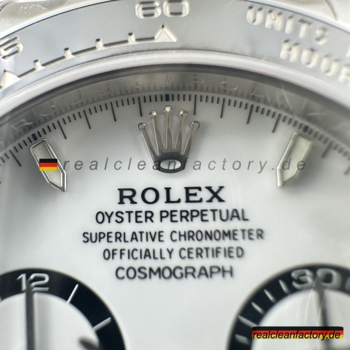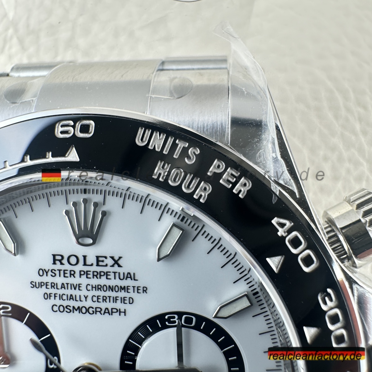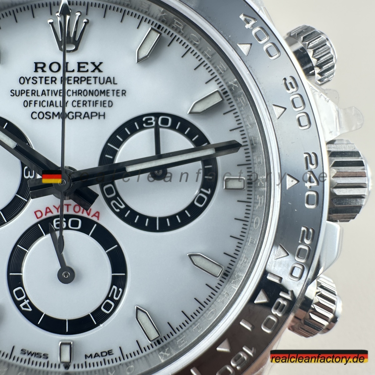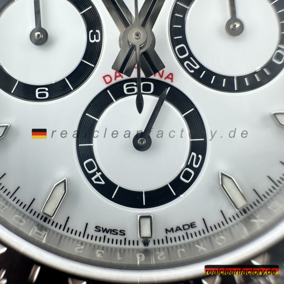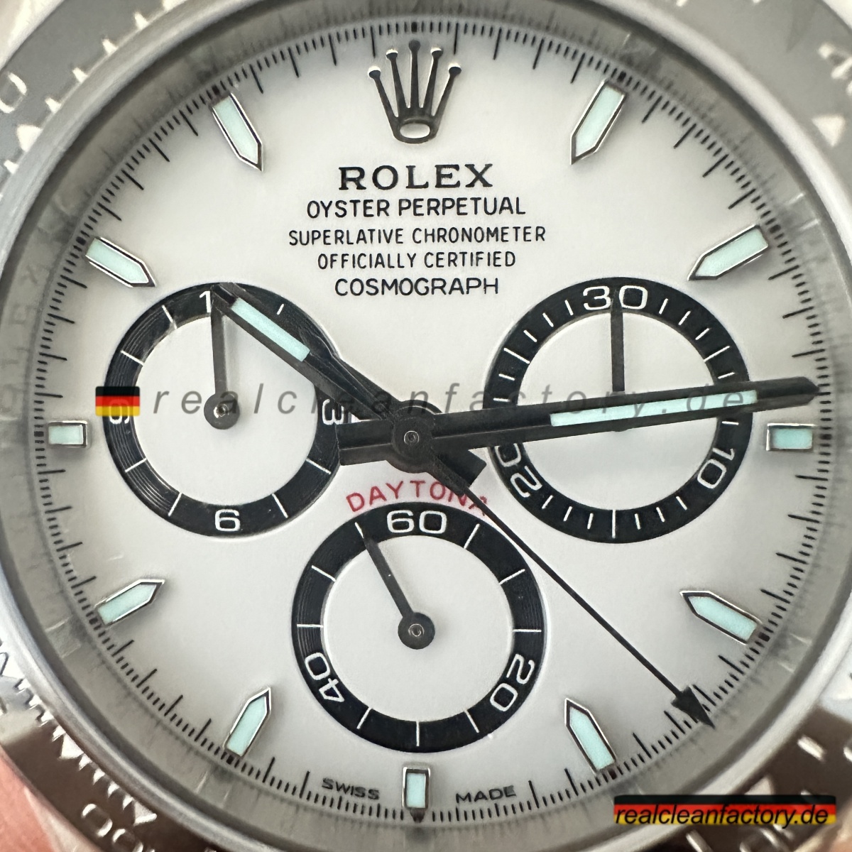 Start Laden Rolex Clean Factory Rolex Daytona 126500LN-0001 Panda | Weißes Zifferblatt Schwarze Subdials | 4131 Uhrwerk | Perfektes Schneckenmuster