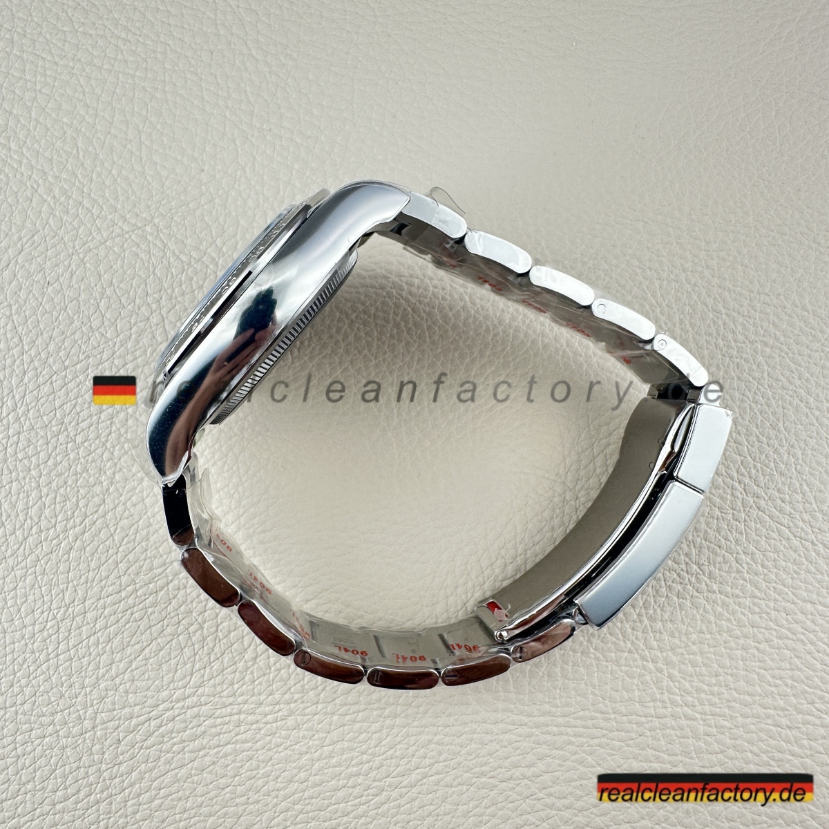 • Das Armband? Überraschend raffiniert. Ausgewogen, nicht klobig. Mittelglieder schimmern genau wie das Original --- weil wir das Bürstmuster von Rolex kopiert haben. Verschluss klickt zu, als würde er es ernst meinen. Kein Klappern. Kein Spiel. Nur dieses befriedigende Schnapp.