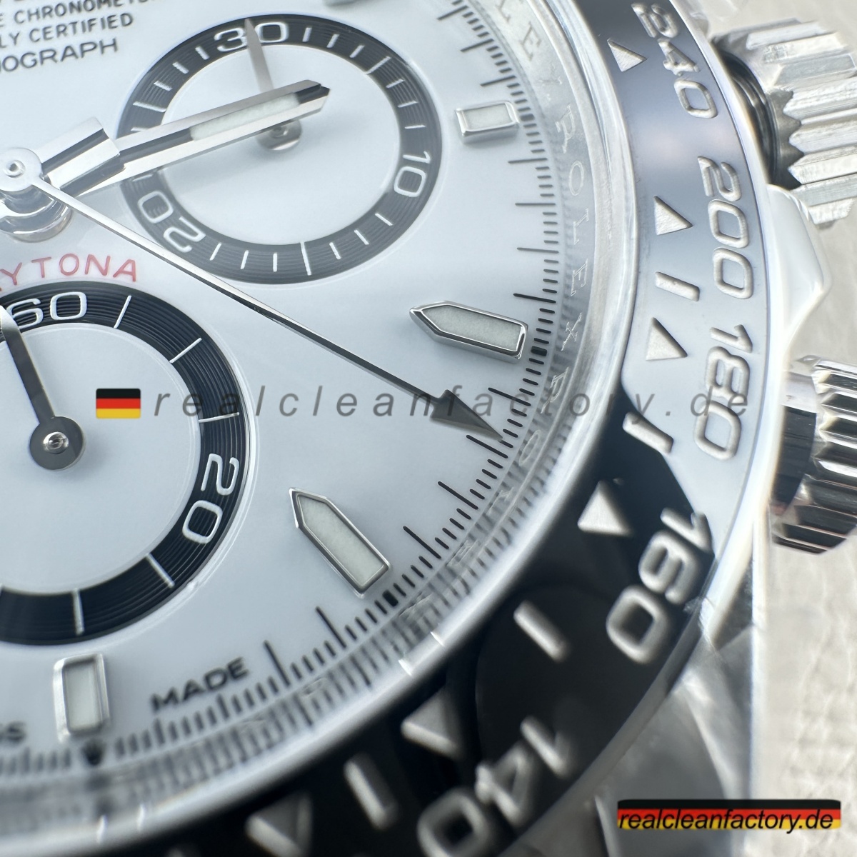Clean Factory Rolex Daytona 126500LN-0001 Panda | Weißes Zifferblatt Schwarze Subdials | 4131 Uhrwerk | Perfektes Schneckenmuster