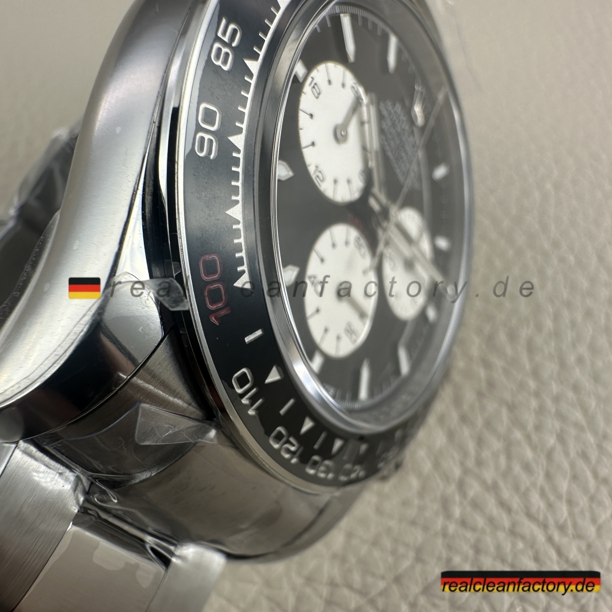 • <p><strong>Was Clean Factorys Überlegenheit beweist, ist der Funktionstest</strong>. Starten Sie den Chronographen und lassen ihn laufen – er misst wirklich bis 24 Stunden, nicht nur 12. Das Hilfszifferblatt bei 9 Uhr zeigt echte 24-Stunden-Inkremente, sauber kalibriert. Probieren Sie das mit anderen „Le Mans“-Replicas – deren 12-Stunden-Werke entlarven sich sofort. Nur Clean Factory bietet echte Funktionalität.</p>