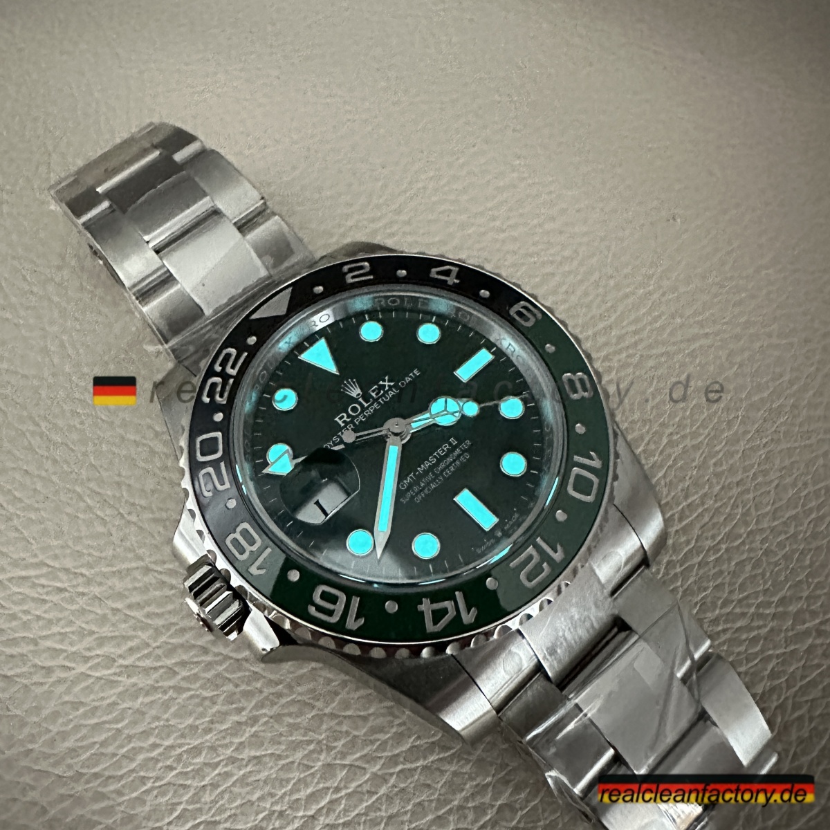 Die Linkshänder-Version dieser GMT-Master II hat mich sofort neugierig gemacht – und ich muss sagen, Clean hat hier wirklich Maßarbeit geleistet. Das grüne Zifferblatt wirkt frisch, aber nicht übertrieben.