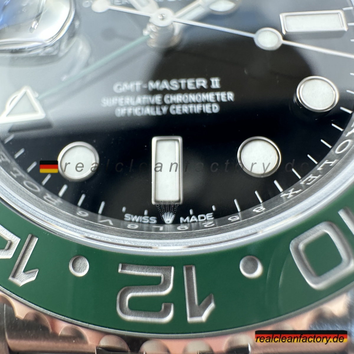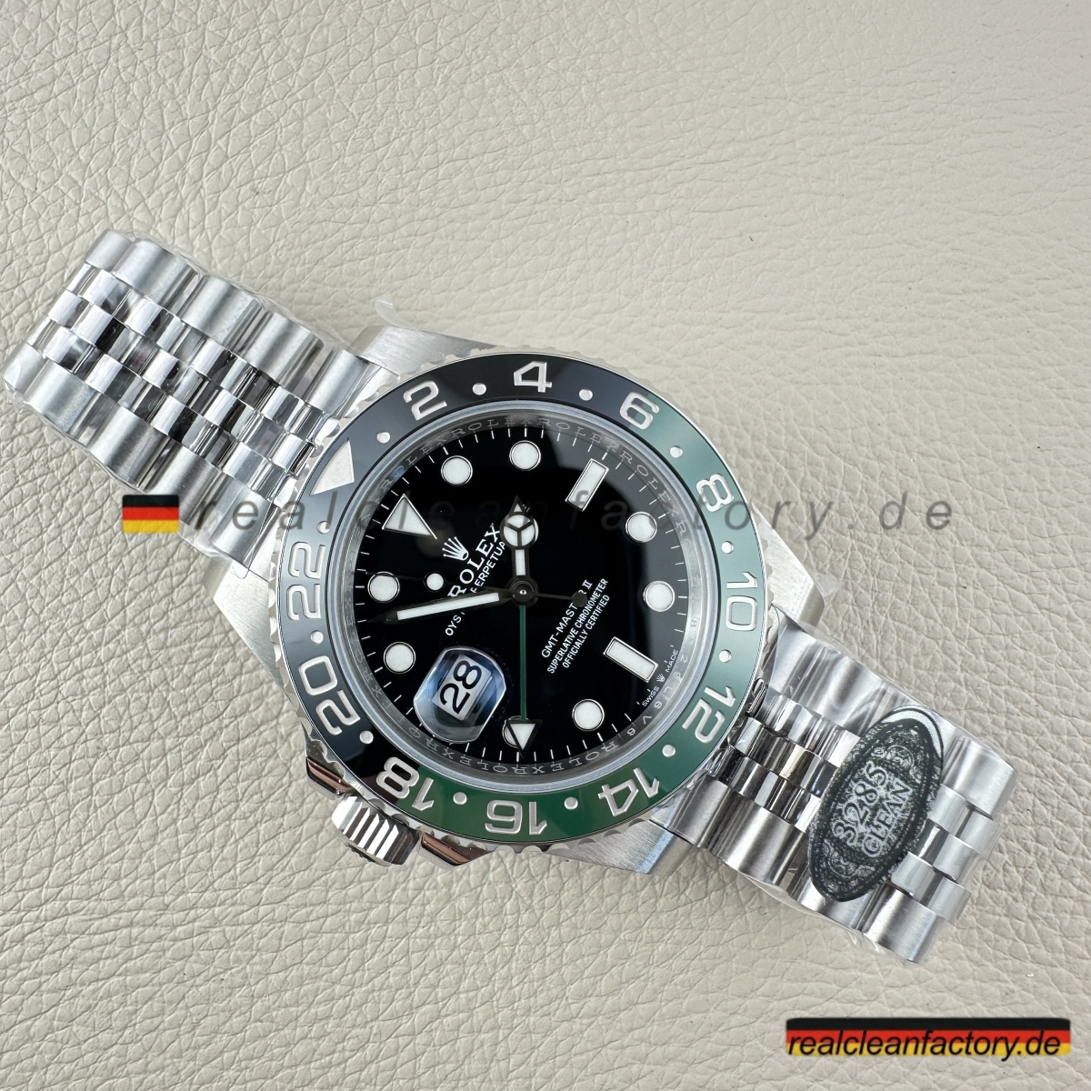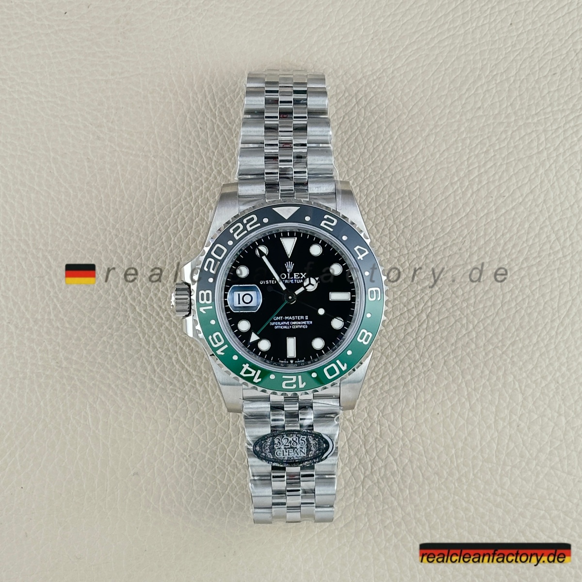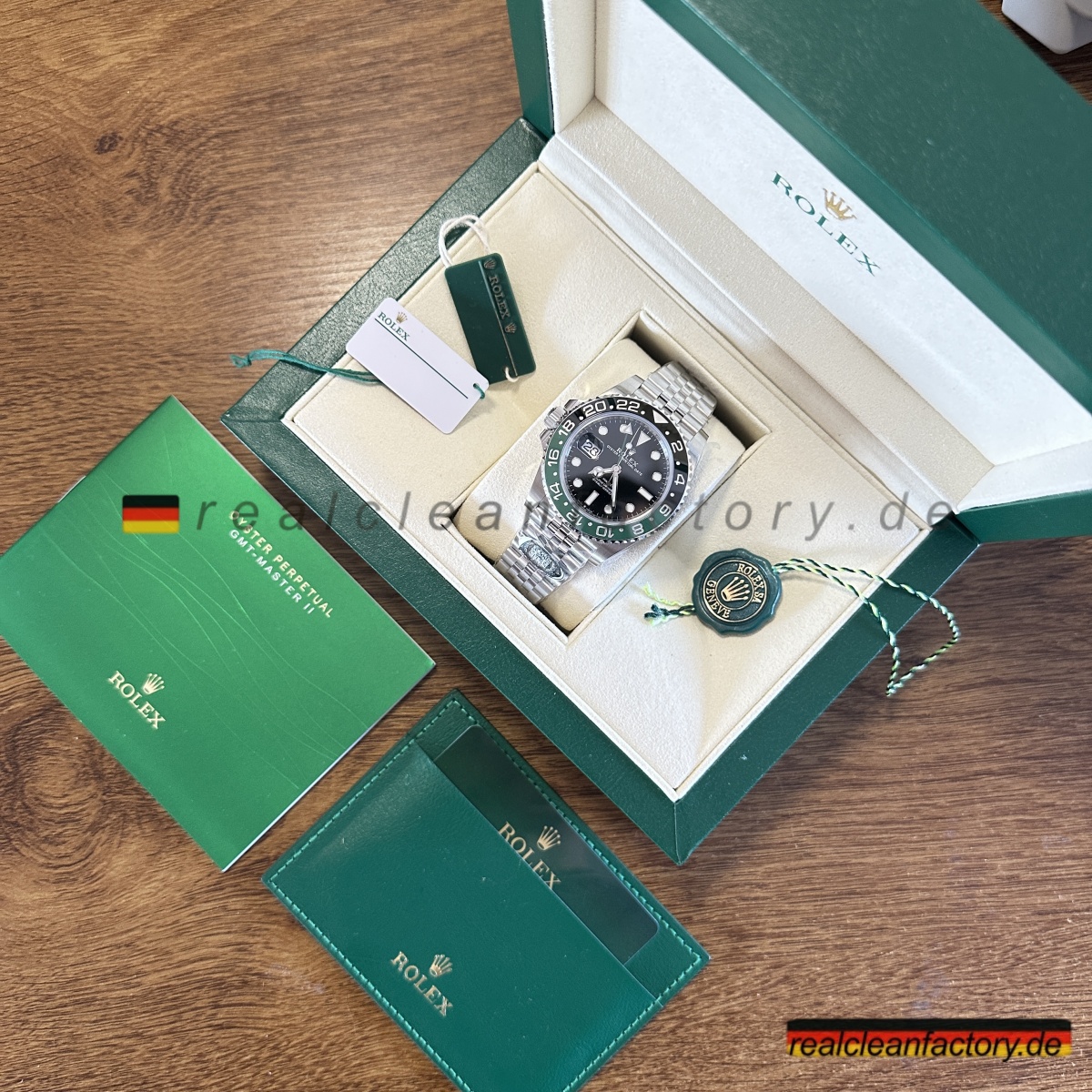 Wir sind die authentische Clean Factory – akzeptieren Sie keine Substitute. Der Premium-Preis beschert Ihnen eine Uhr mit der perfekt ausgeführten V3 „Sprite“-Lünette, die selbst ernsthafte Sammler beeindrucken wird. Für diejenigen, die die einzigartige linkshändige Rolex GMT-Master II mit ihrer markanten grün-schwarzen Keramiklünette und dem Premium-Jubilee-Armband schätzen, bietet dieses Stück einen unvergleichlichen Wert, wenn die echte Version nahezu unmöglich zu erhalten ist.