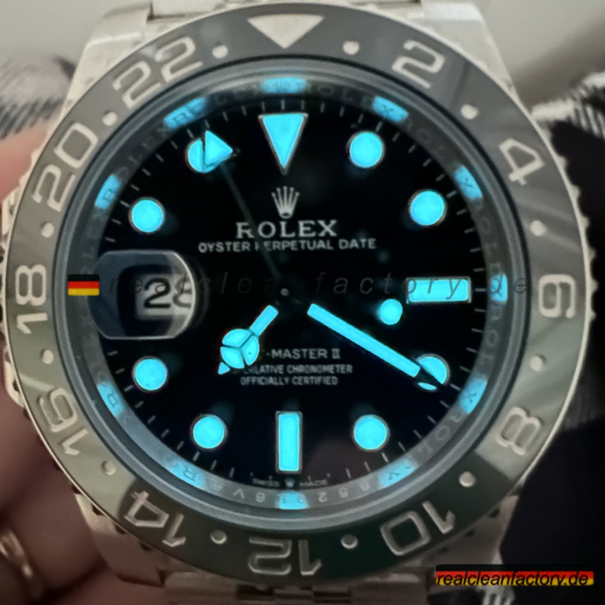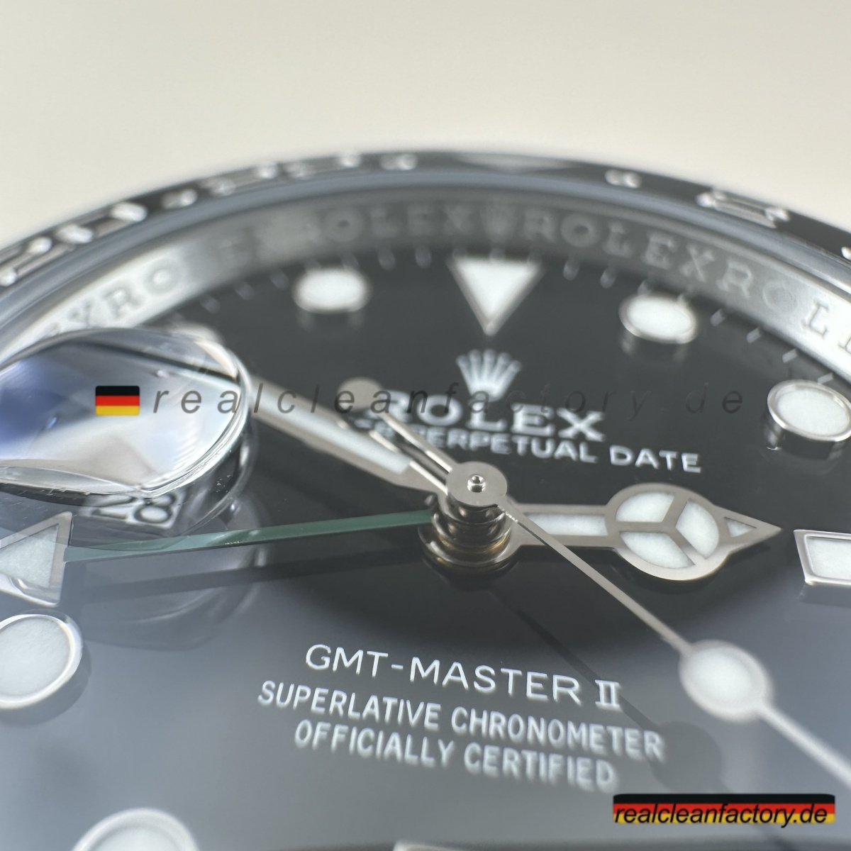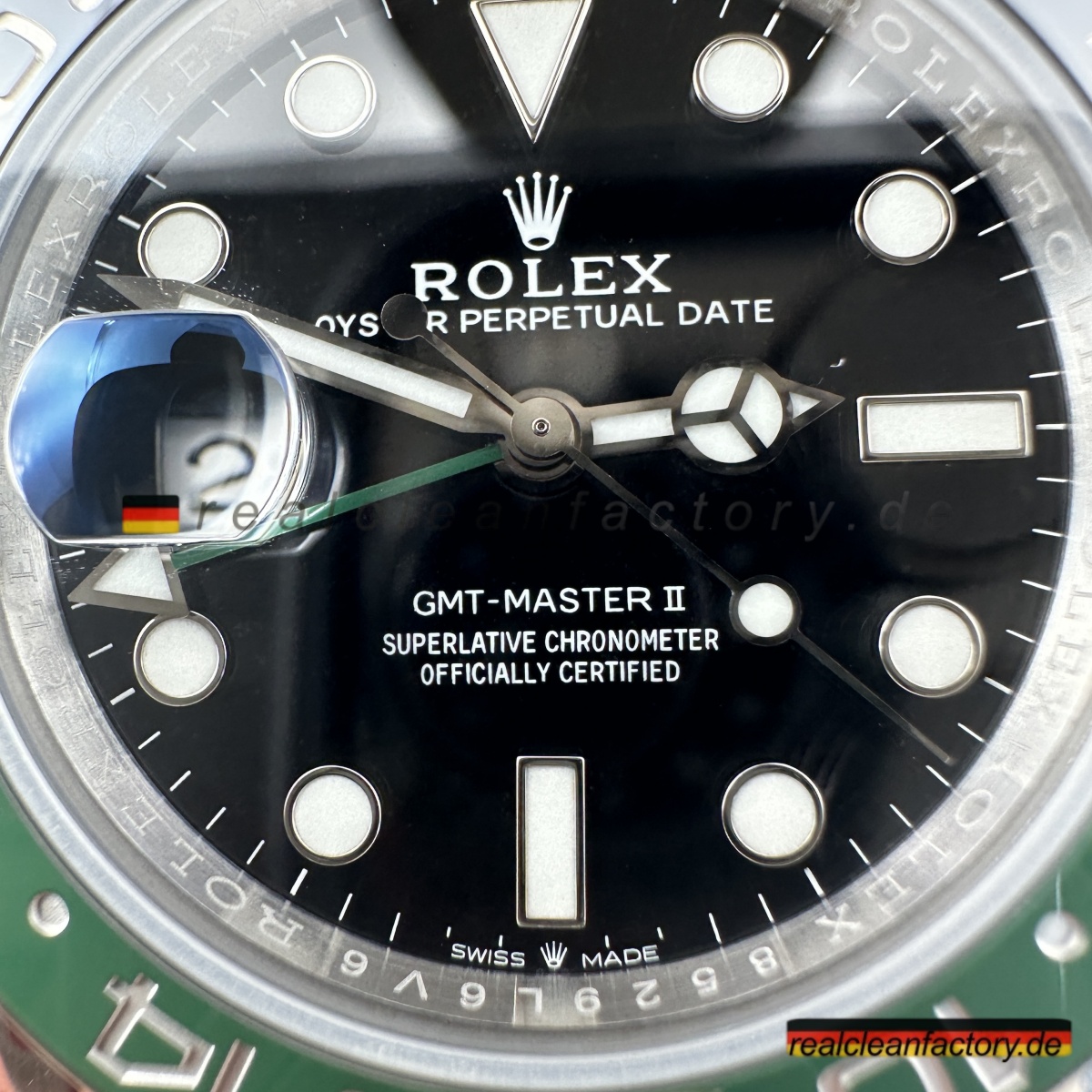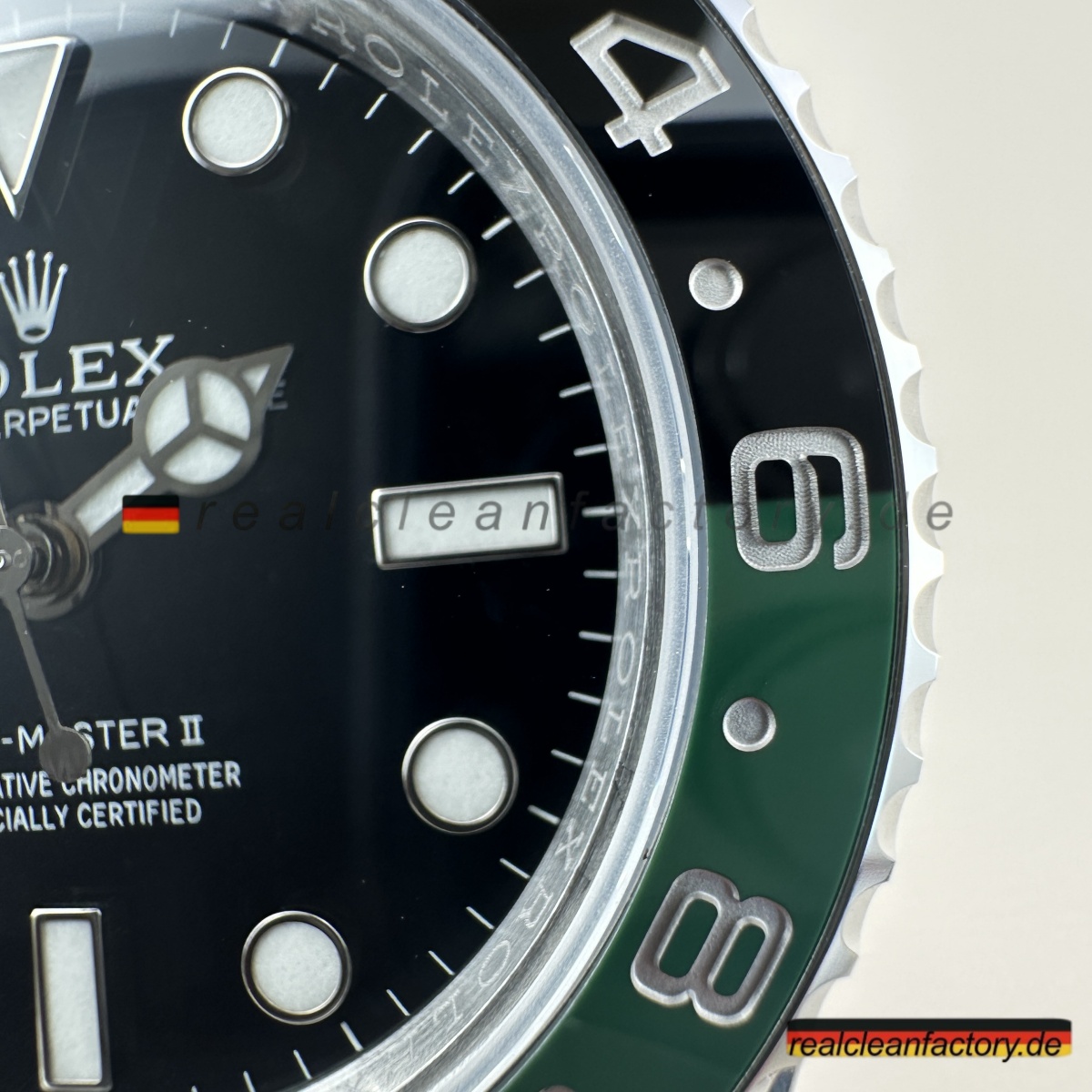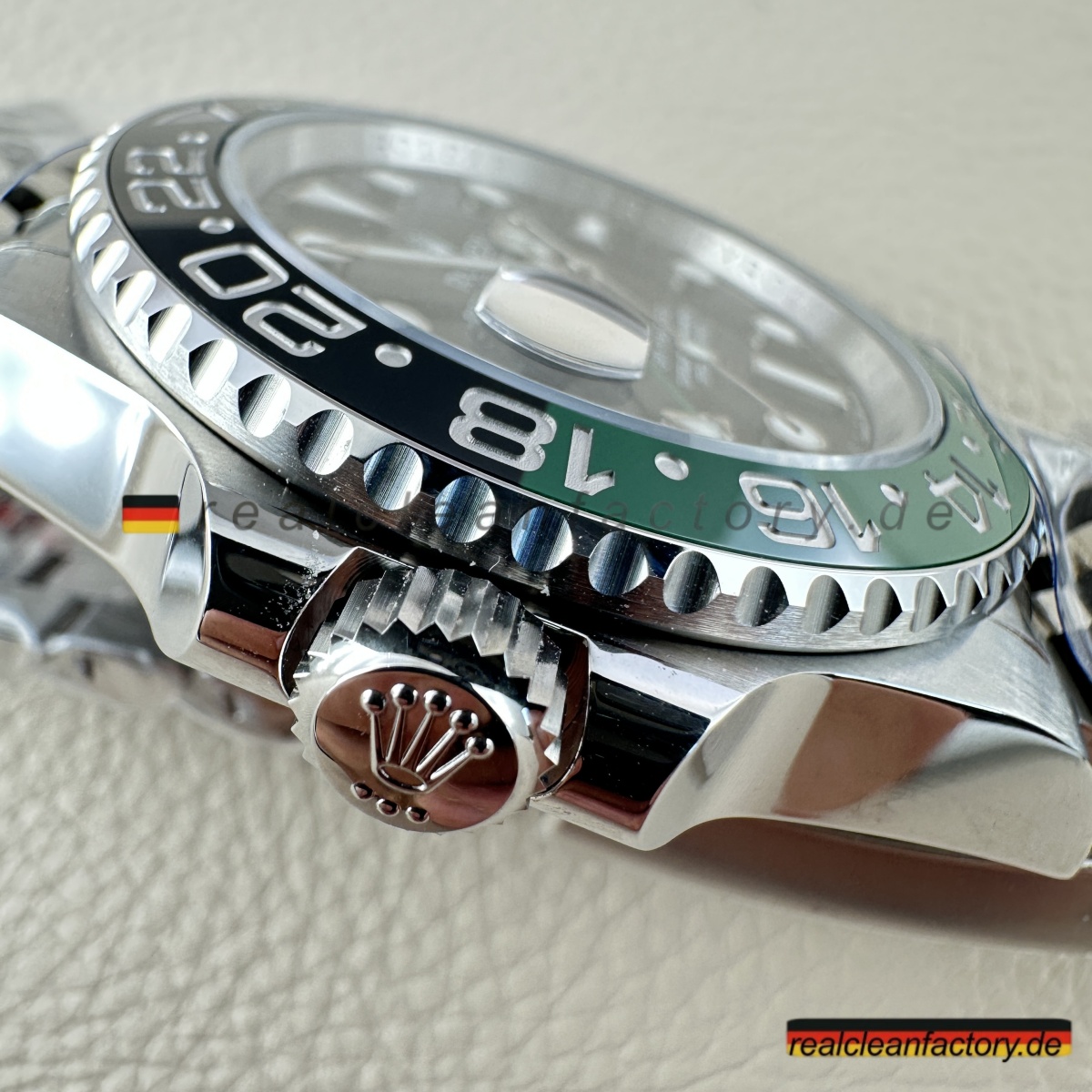 Wir sind die authentische Clean Factory – akzeptieren Sie keine Substitute. Der Premium-Preis beschert Ihnen eine Uhr mit der perfekt ausgeführten V3 „Sprite“-Lünette, die selbst ernsthafte Sammler beeindrucken wird. Für diejenigen, die die einzigartige linkshändige Rolex GMT-Master II mit ihrer markanten grün-schwarzen Keramiklünette und dem Premium-Jubilee-Armband schätzen, bietet dieses Stück einen unvergleichlichen Wert, wenn die echte Version nahezu unmöglich zu erhalten ist.
