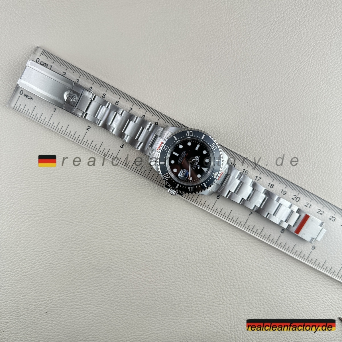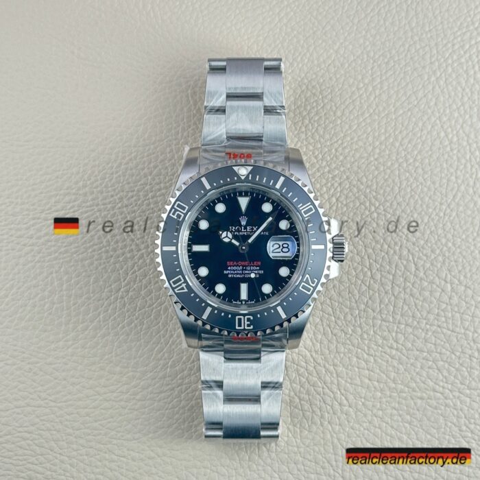 Der Unterschied der Präzision: Diese rote Sea-Dweller zeigt eindrucksvoll, warum Clean Factory den Super-Clone-Markt dominiert. Die Schweizer Ölfarbe, die perfekte Buchstabenformen erzeugt, die exakt kalibrierte rote Farbe, der präzise Zifferblattdruck, der unter der Lupe dem Original entspricht – das sind Ergebnisse, die nur mit Schweizer Technologie und Know-how möglich sind. Kombiniert mit dem Super Clone 3235 Werk und dem modernen 43-mm-Format vereint diese Sea-Dweller historischen Charme und zeitgemäße Funktionalität. Wenn die Qualität in jedem Buchstaben des Zifferblatts sichtbar ist, wissen Sie, dass Sie etwas Besonderes tragen.