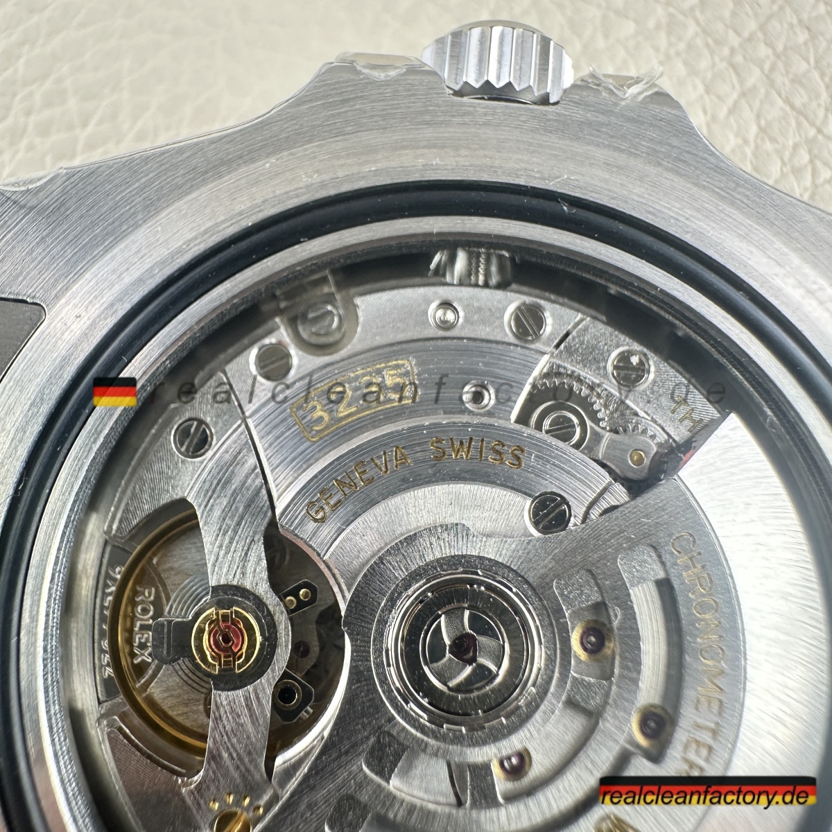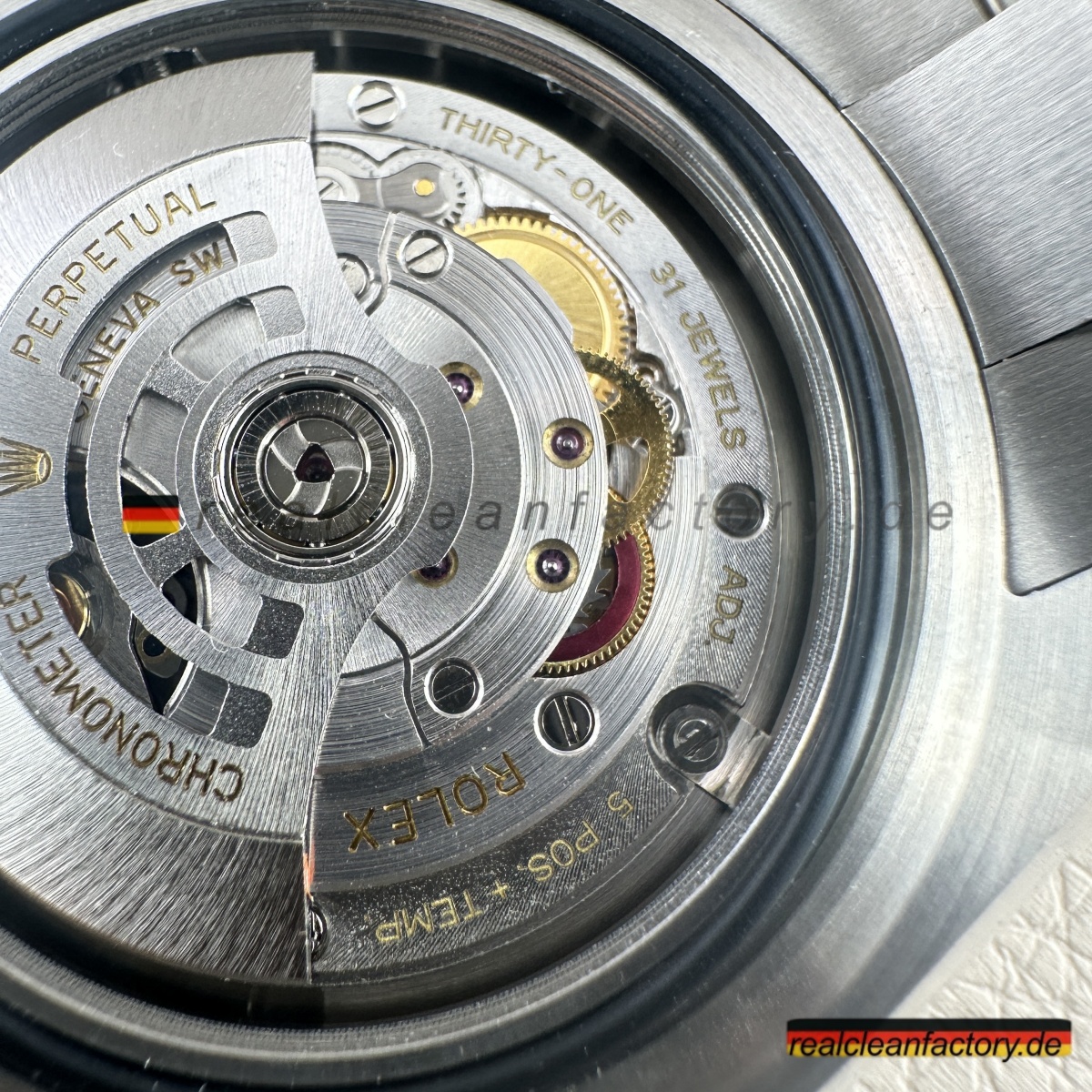 - Das Super Clone 3235 Uhrwerk unterstreicht Clean Factorys Anspruch auf echte Funktionalität. Hier arbeitet kein dekoriertes 2824, das nur so tut, als wäre es mehr. Das 3235 hat dieselbe Architektur wie das Original – bidirektionaler Aufzug für höchste Effizienz, echte 70 Stunden Gangreserve und die Chronergy-Hemmung für exakte Präzision. Ziehen Sie die Krone heraus, und Sie spüren sofort die unverwechselbare Rolex-DNA in der Bedienung.