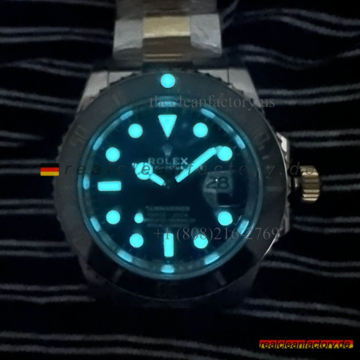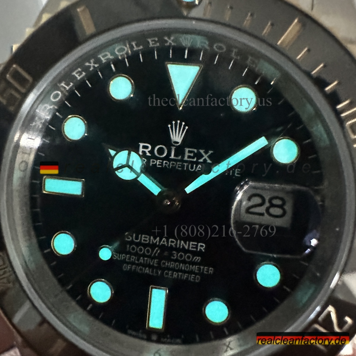 4. Helles blaues Lume, das in Farbe und Leuchtdauer perfekt der originalen Rolex-Lumineszenz entspricht