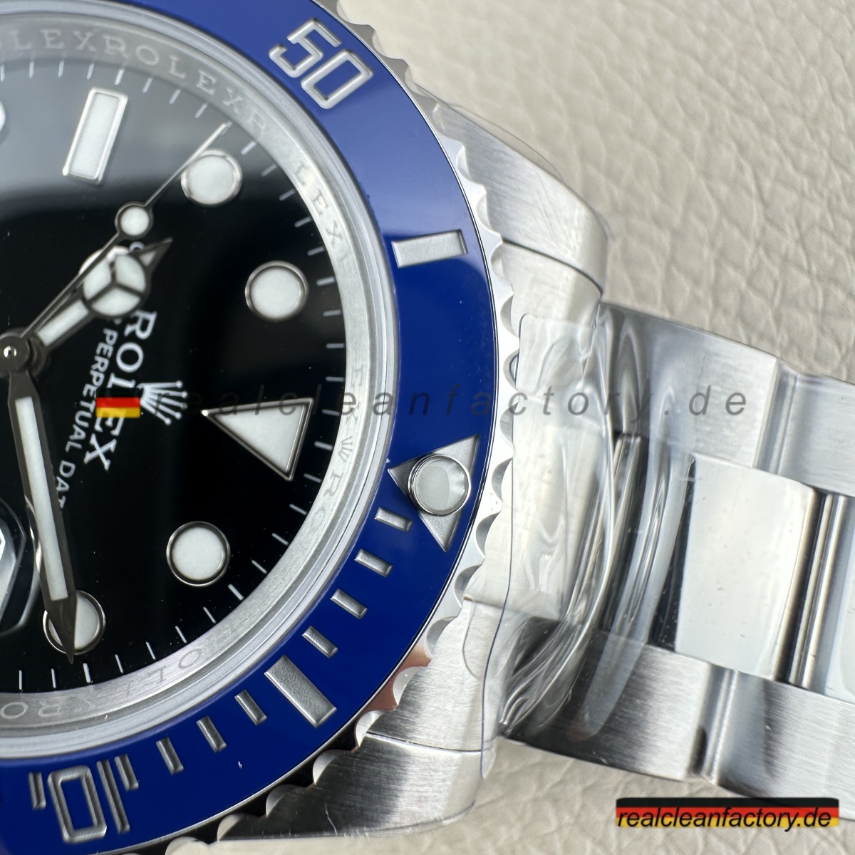4. Helles blaues Lume, das in Farbe und Leuchtdauer perfekt der originalen Rolex-Lumineszenz entspricht