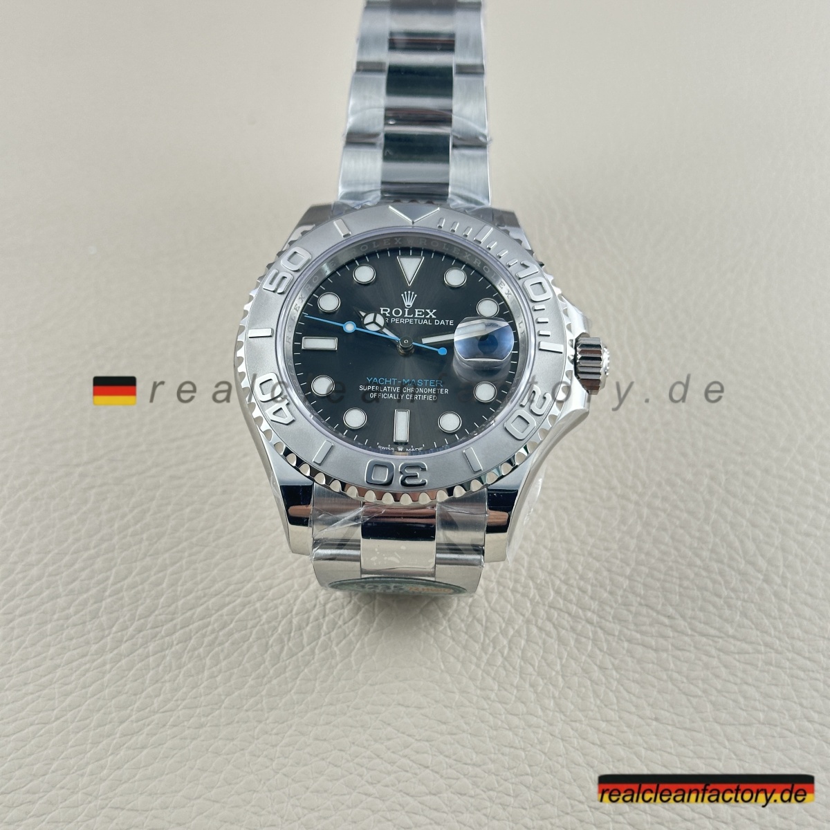 - Unsere **Yacht-Master 126622-0001** mit grauem Zifferblatt sticht hervor. Während jeder die auffällige blaue Version wählt, ist dieses graue Zifferblatt mit blauem Sekundenzeiger für die, die es verstehen. Es passt genauso gut in ein Geschäftstreffen wie auf dem Wasser. Wir arbeiten an dieser Version seit 2022, und diese neueste Charge enthält Details, die einen zweimal hinschauen lassen.