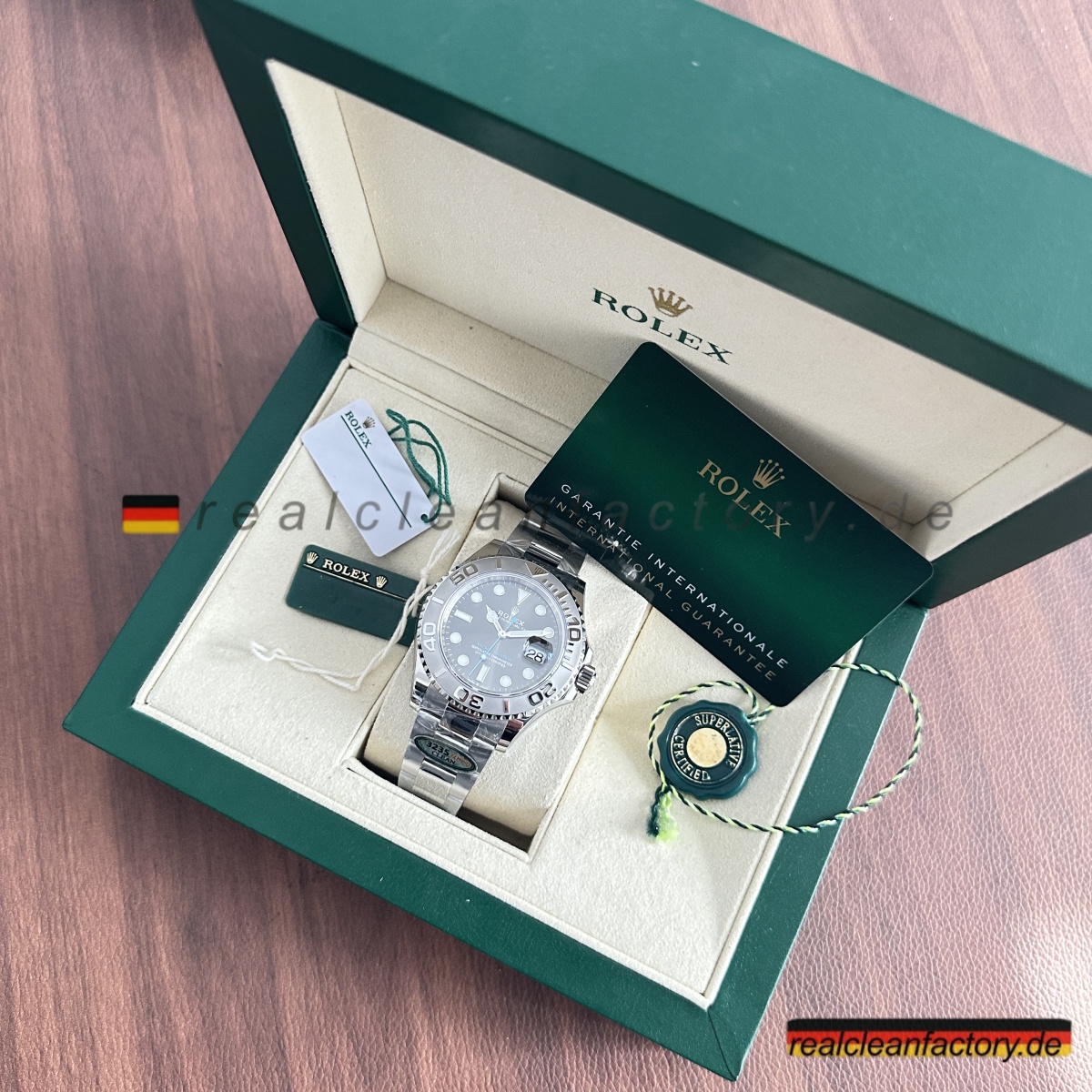 - Wir sind die echte **Clean Factory** – nicht Wiederverkäufer, die behaupten, unsere Produkte anzubieten, während sie Abstriche machen. Der Preisunterschied von $150 zwischen uns und gefälschten „Clean“ Uhren ist der Unterschied zwischen einer Uhr, die auf Fotos gut aussieht, und einer, die auch nach Jahren noch perfekt läuft.