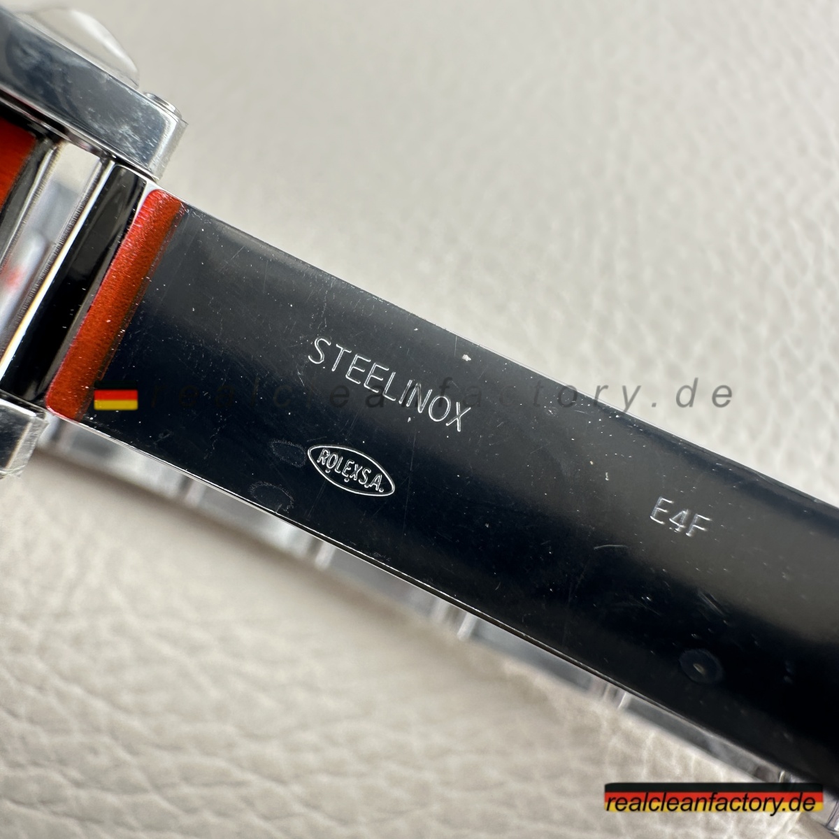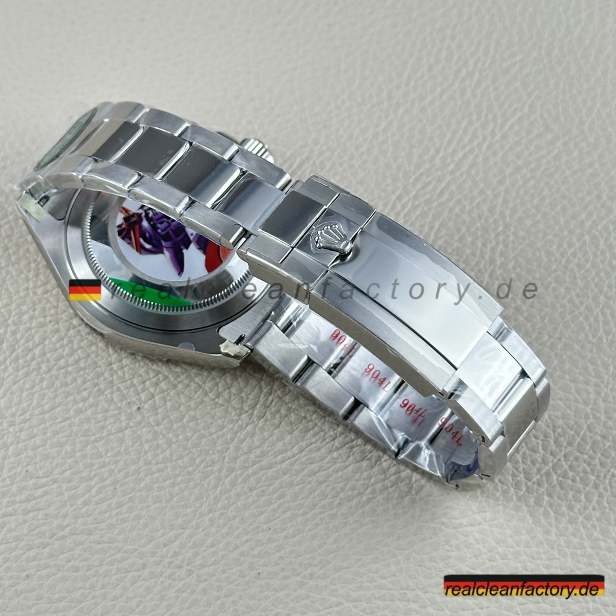 - Korrekte Modellnummer zwischen Ansätzen bei 6 Uhr eingraviert, entsprechend echtem Rolex-Format