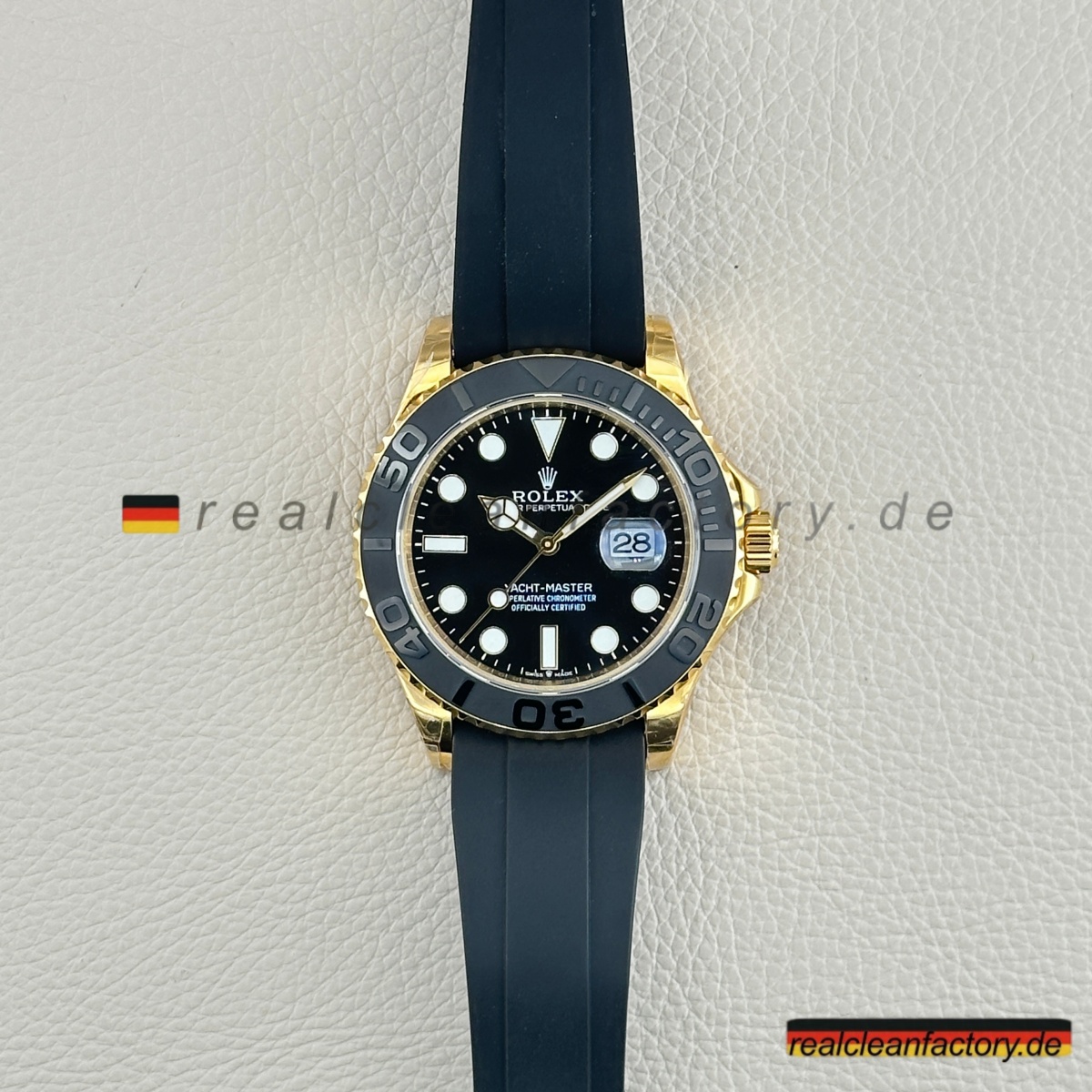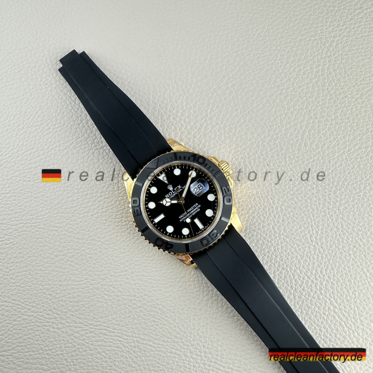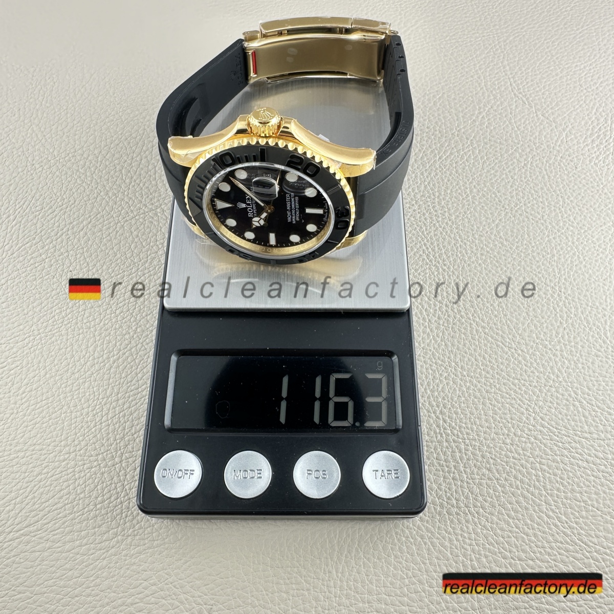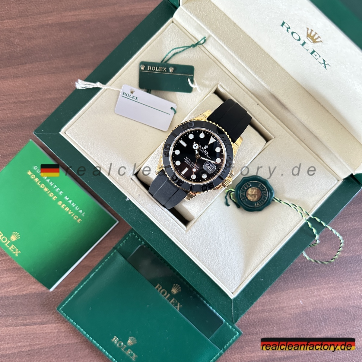 - Unsere Rolex Yacht-Master 226658-0001 in Gelbgold mit Oysterflex ist ehrlich gesagt beeindruckend. Hat die 904L Stahlbasis mit dicker 18k Goldplattierung, die wirklich hält - kein Verblassen, kein Abnutzen wie bei den billigen Sachen. Dieses warme Gold gegen die schwarze Lünette und Oysterflex? Sieht genauso aus, als würde man in einen AD gehen und das echte Ding im Display sehen.