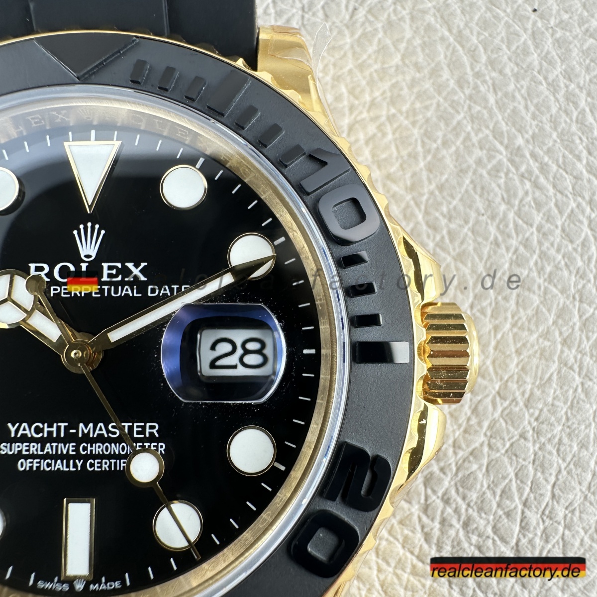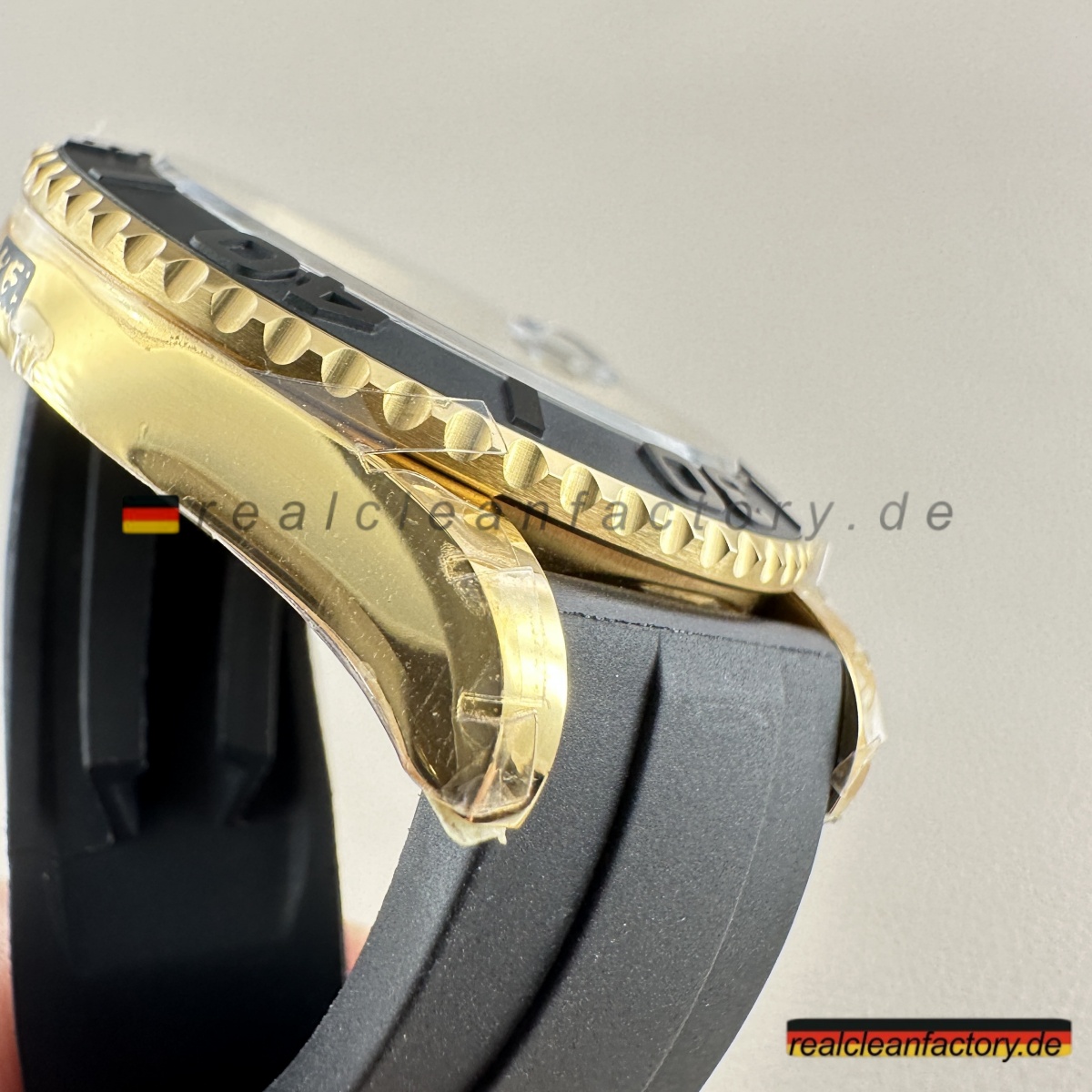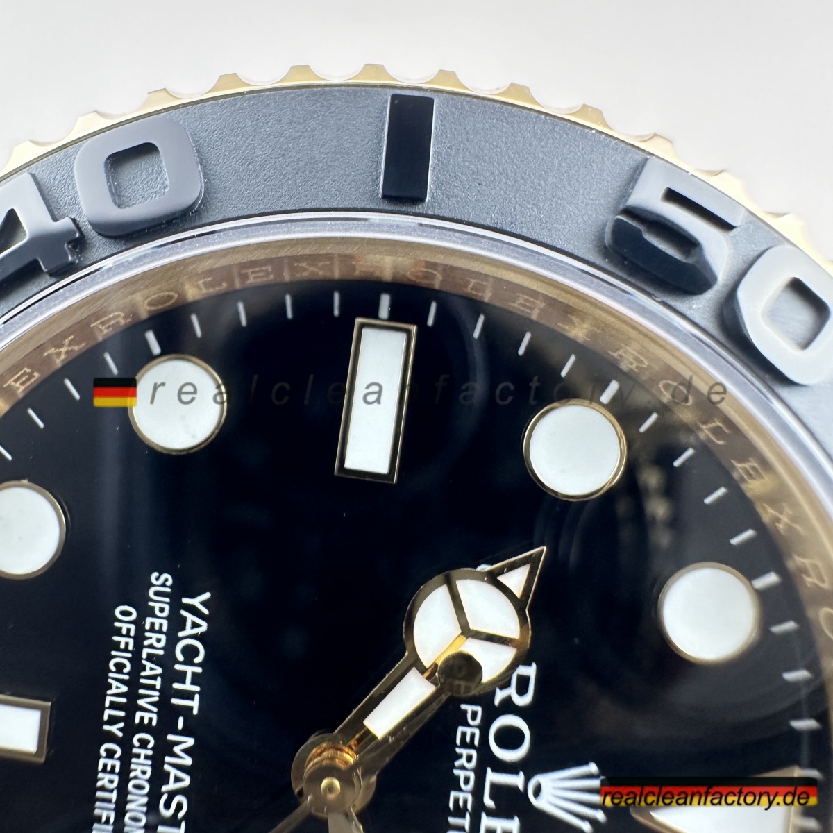 - Unsere Rolex Yacht-Master 226658-0001 in Gelbgold mit Oysterflex ist ehrlich gesagt beeindruckend. Hat die 904L Stahlbasis mit dicker 18k Goldplattierung, die wirklich hält - kein Verblassen, kein Abnutzen wie bei den billigen Sachen. Dieses warme Gold gegen die schwarze Lünette und Oysterflex? Sieht genauso aus, als würde man in einen AD gehen und das echte Ding im Display sehen.