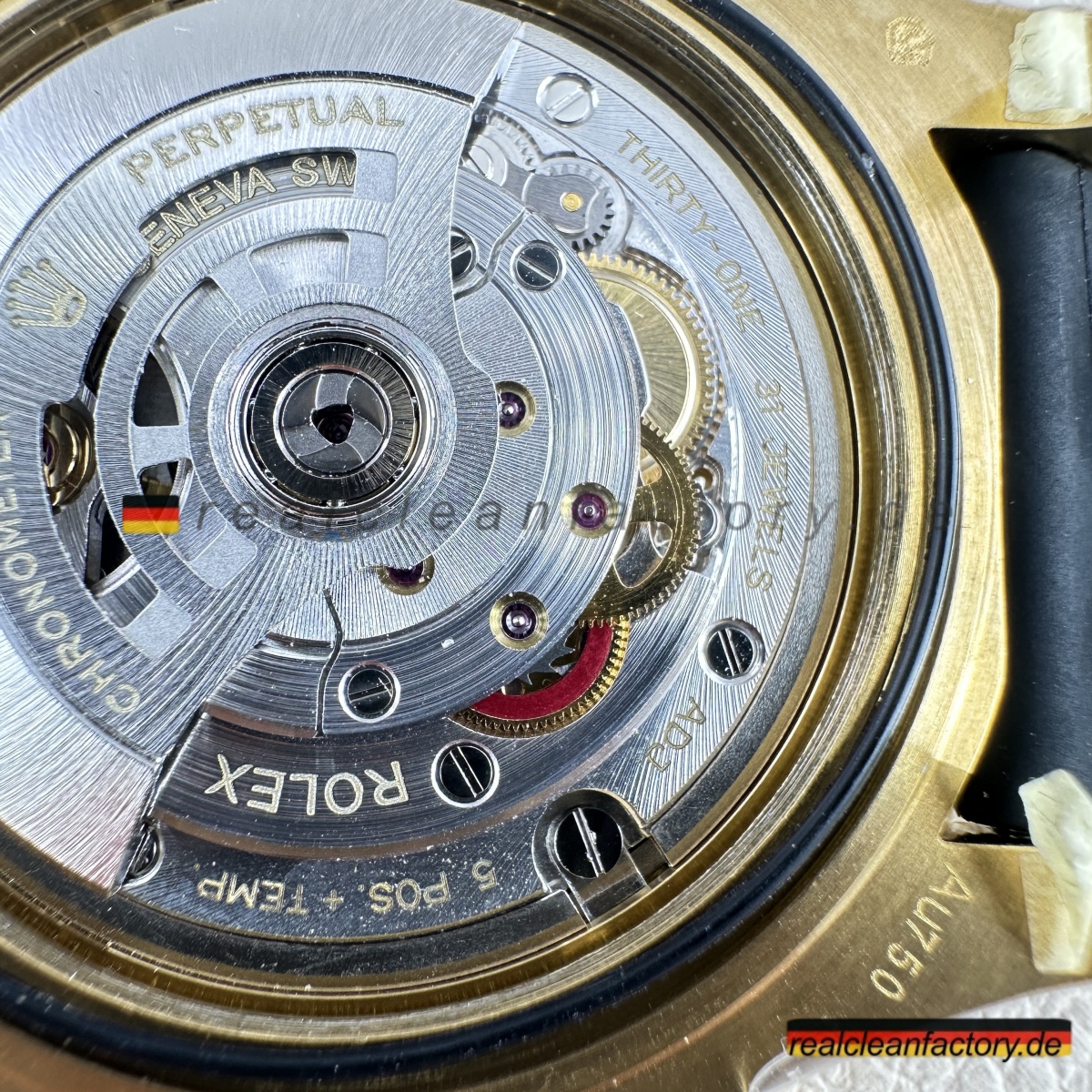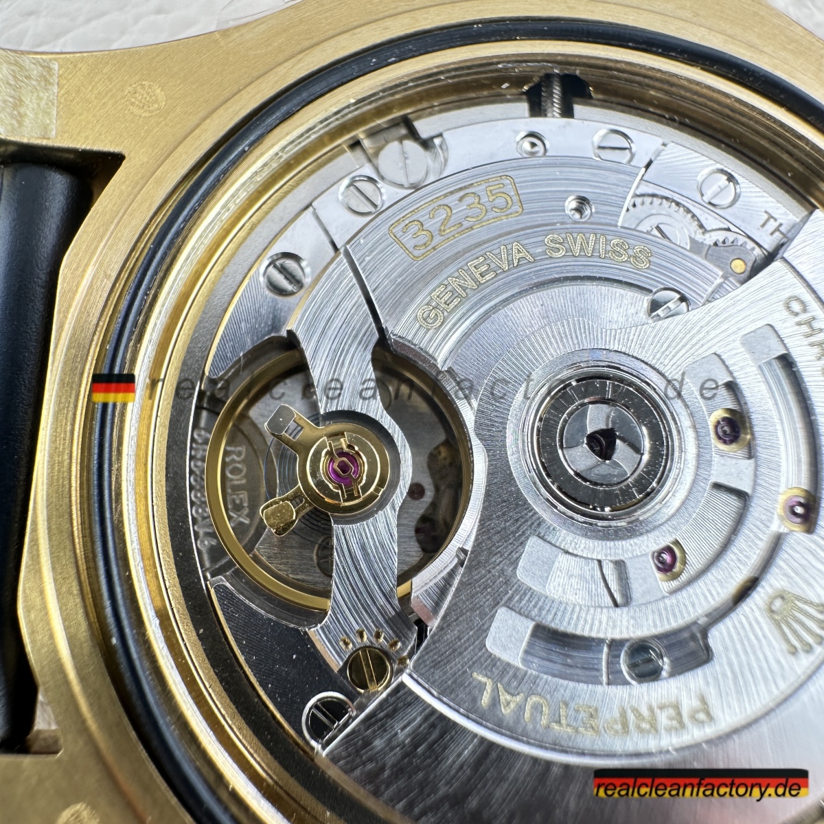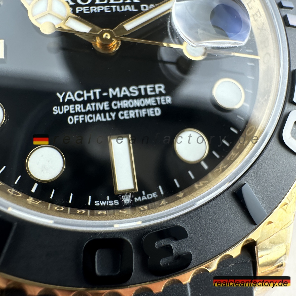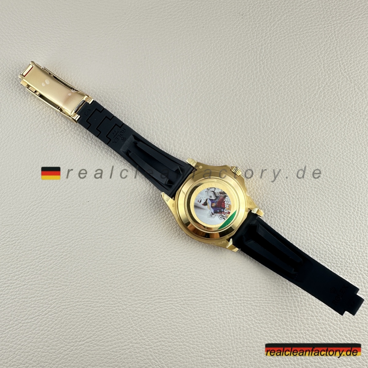 - Unsere Rolex Yacht-Master 226658-0001 in Gelbgold mit Oysterflex ist ehrlich gesagt beeindruckend. Hat die 904L Stahlbasis mit dicker 18k Goldplattierung, die wirklich hält - kein Verblassen, kein Abnutzen wie bei den billigen Sachen. Dieses warme Gold gegen die schwarze Lünette und Oysterflex? Sieht genauso aus, als würde man in einen AD gehen und das echte Ding im Display sehen.