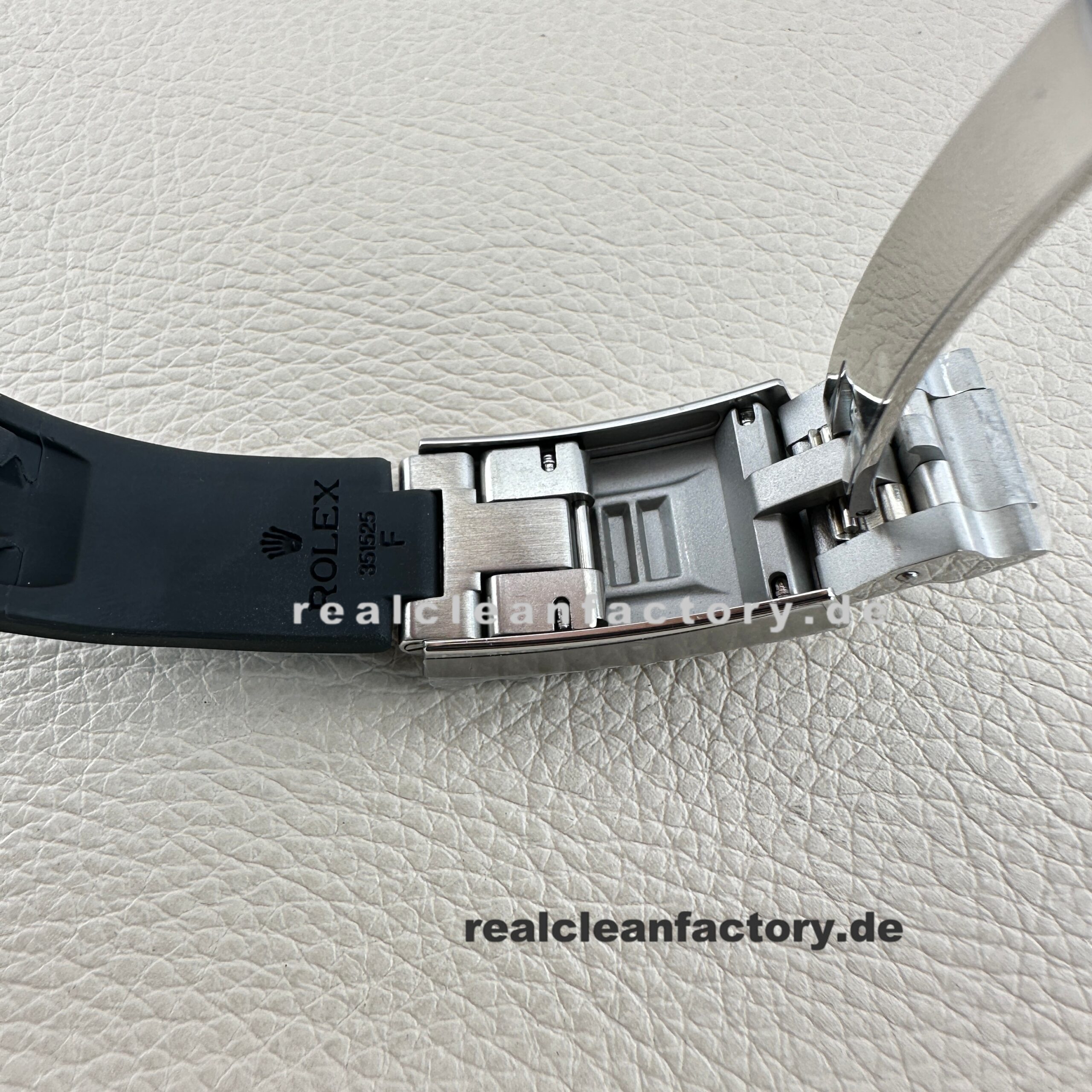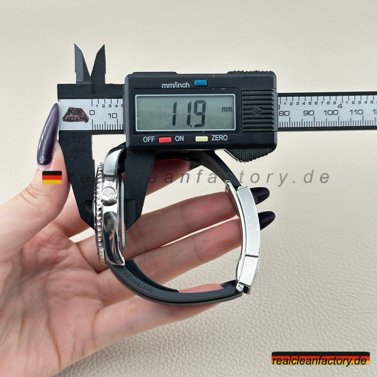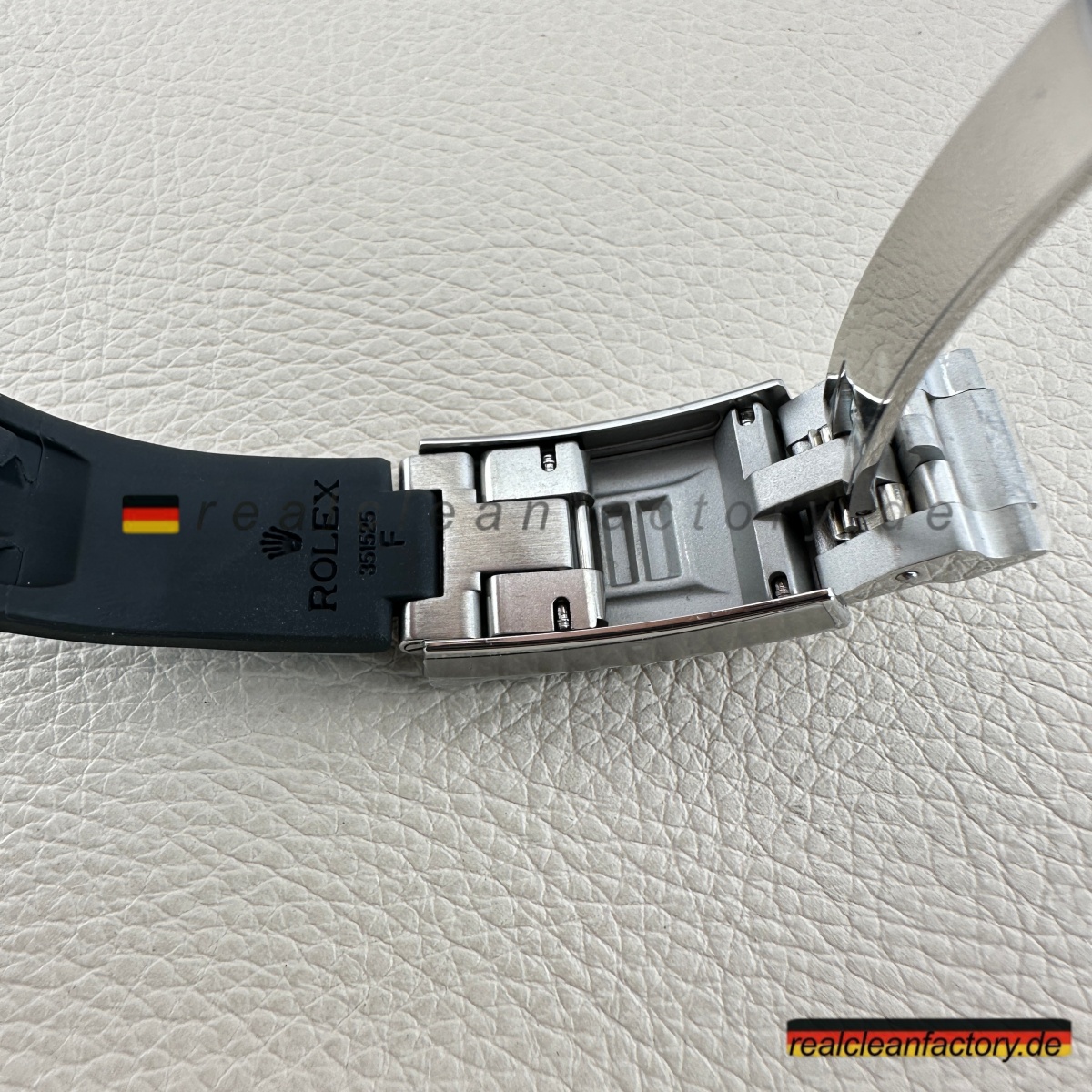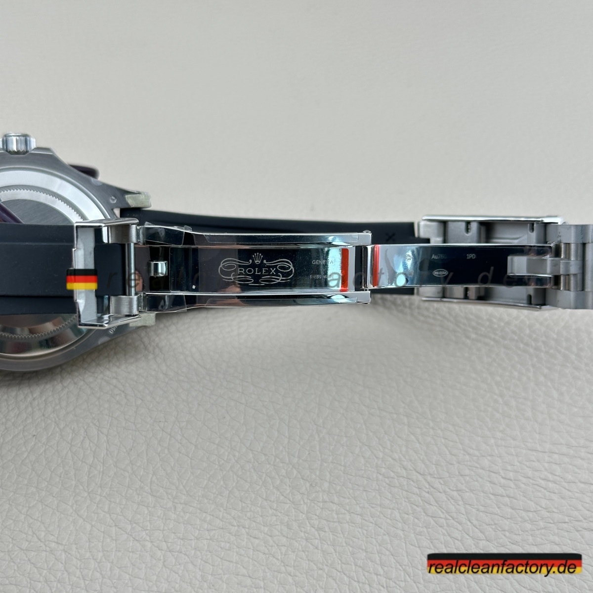 - Armband: Oysterflex-Armband mit der gleichen inneren Metallstruktur wie bei echten Rolex – nicht billiger Gummi wie bei anderen Fabriken.