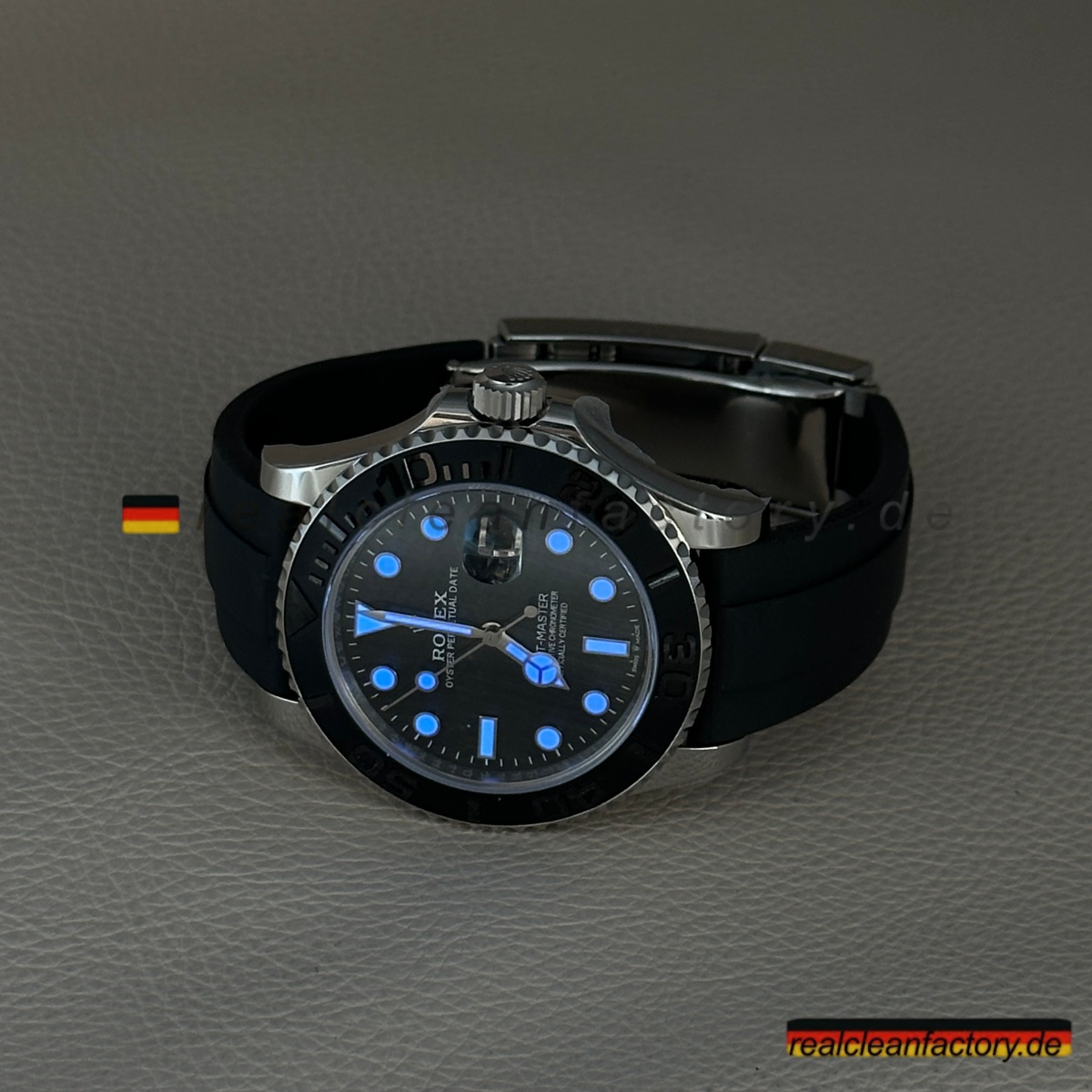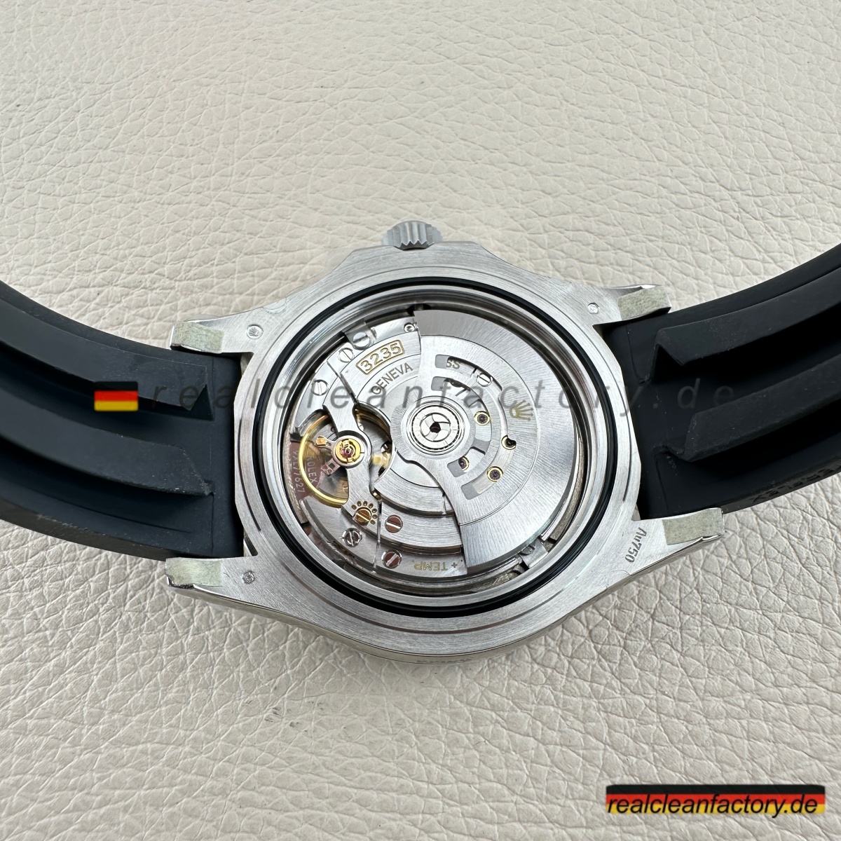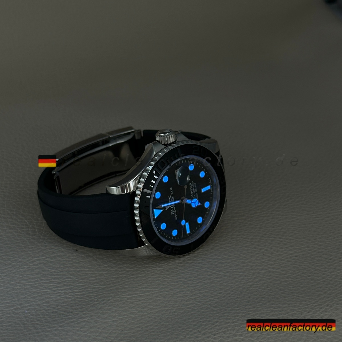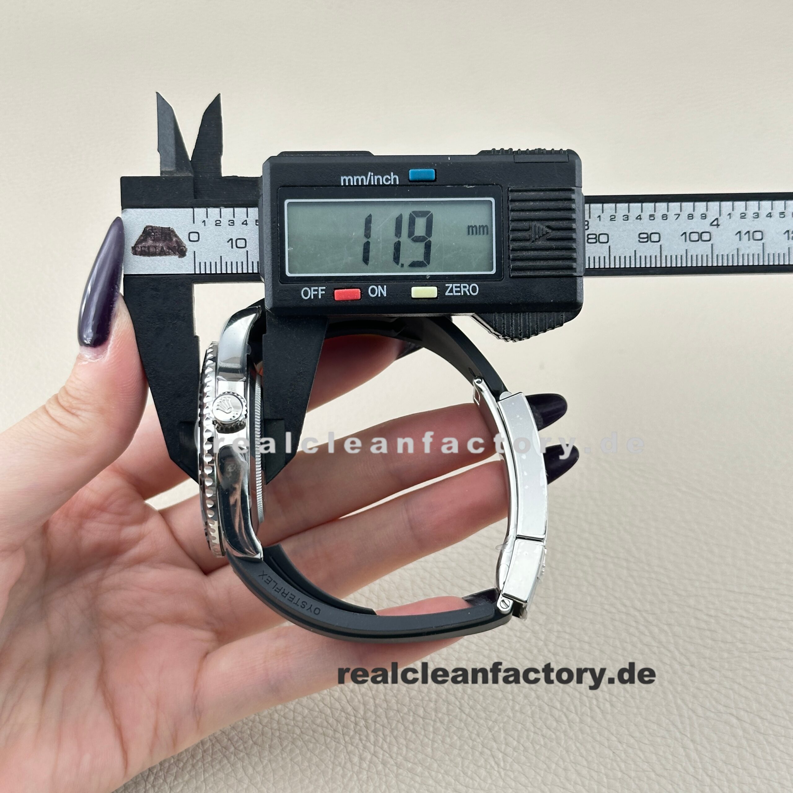 - Armband: Oysterflex-Armband mit der gleichen inneren Metallstruktur wie bei echten Rolex – nicht billiger Gummi wie bei anderen Fabriken.