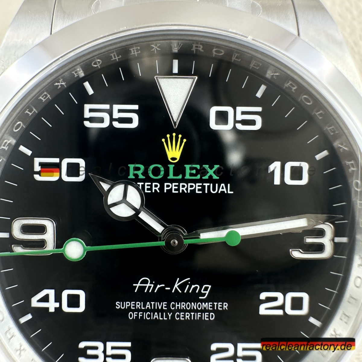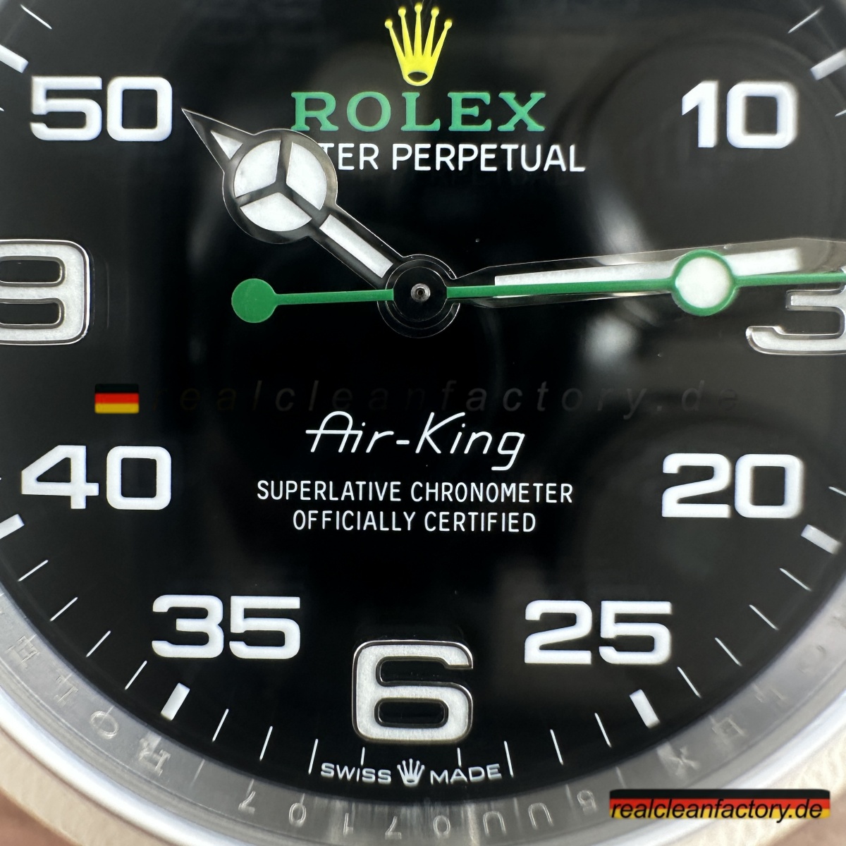 Start Laden Rolex Our Clean Factory Air-King M126900-0001 | 40mm Green ROLEX Letters Yellow Crown | Best Replica Watch