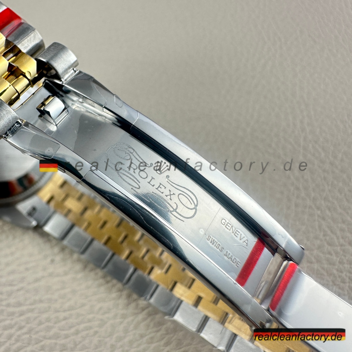 - Die Goldverarbeitung von Clean Factory ist besonders langlebig. Hier handelt es sich nicht um dekorative Vergoldung, sondern um echte molekulare Goldbindung. Das bedeutet: kein Verblassen, kein Absplittern, keine sichtbaren Grundmaterialien. Stattdessen entwickelt sich im Laufe der Jahre eine edle Patina – ganz wie bei einer echten Rolex aus Vollgold.