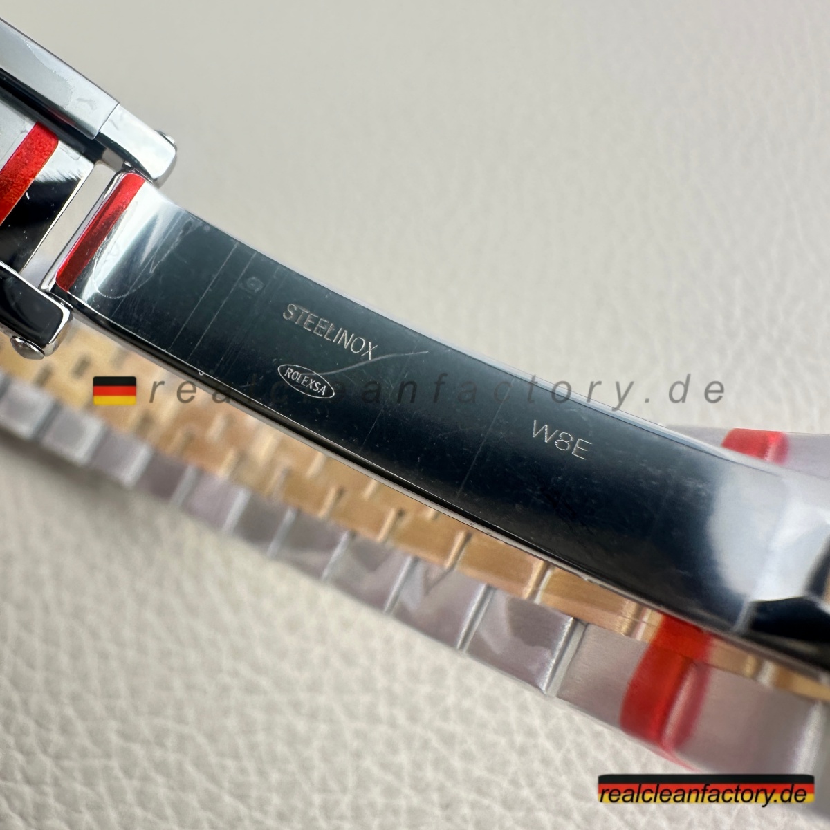 - Clean Factory achtet auf jedes Detail: Das Champagner-Zifferblatt ist präzise bedruckt, keine Unschärfe, kein Auslaufen. Die Krone lässt sich sanft drehen, die Schließe rastet satt ein – wie bei einem echten Schweizer Werk. Es geht hier nicht nur um Optik – sondern um das gesamte Trageerlebnis.