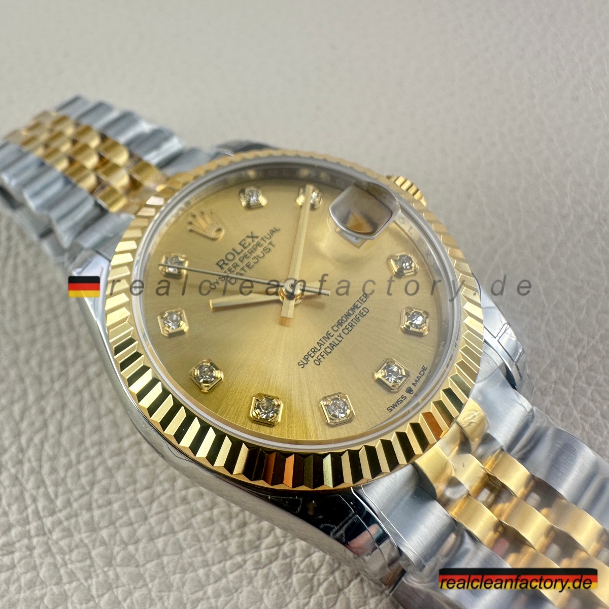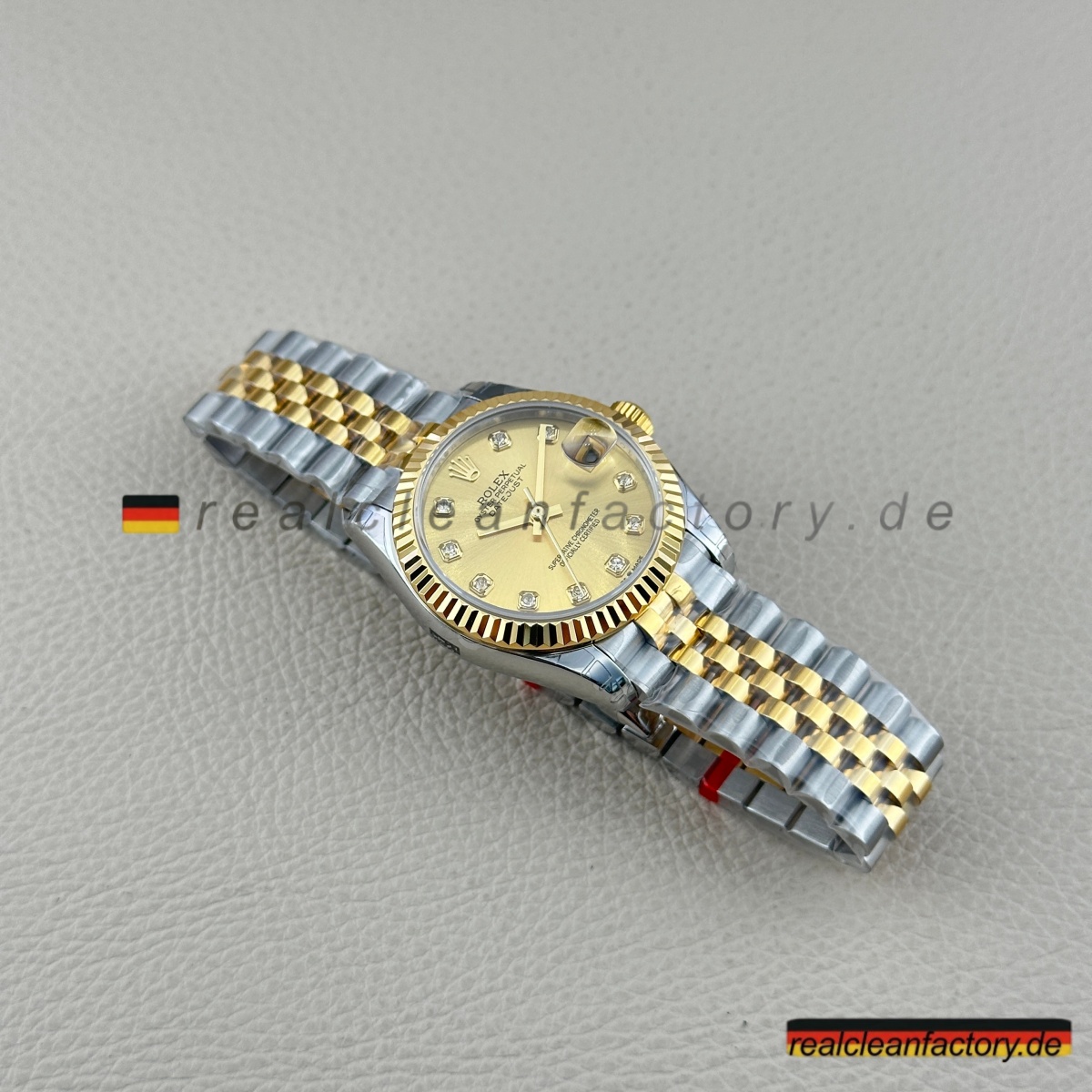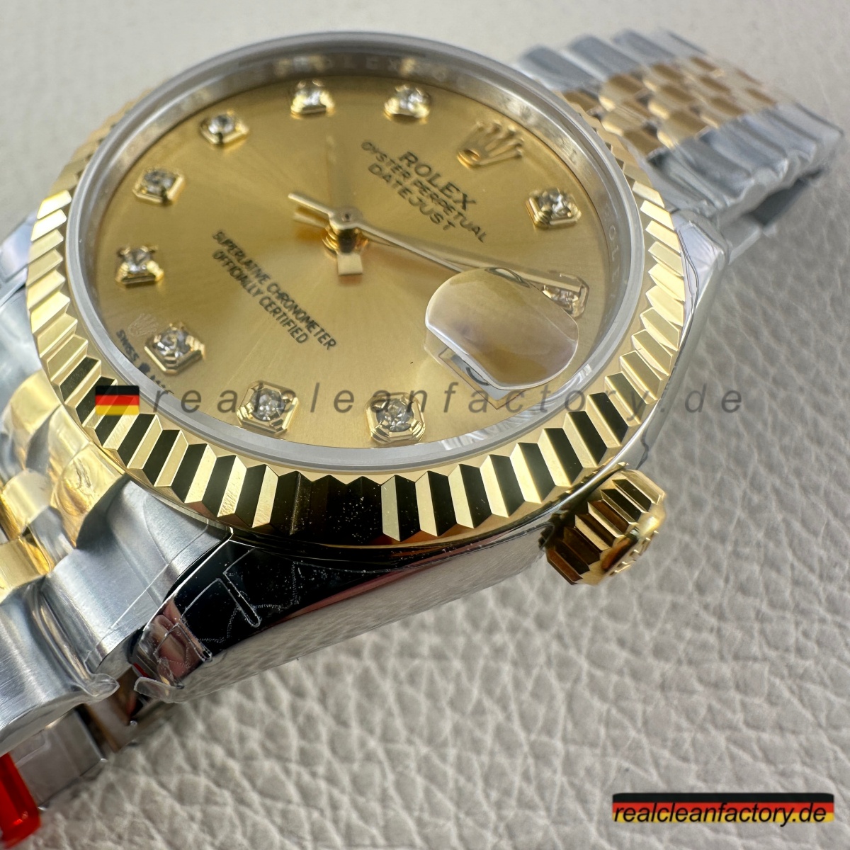 - Die beste Replik Rolex Lady Datejust 278273-0026 von Clean Factory vereint Champagner und Gelbgold in perfekter Harmonie – eine Kombination, die die Zeit überdauert hat und heute dank funkelnder Moissanite-Markierungen heller strahlt denn je. Mit 31 mm fängt sie den Zauber der „goldenen Stunde“ ein – zeitlose Eleganz, die heute genauso aktuell ist wie damals.