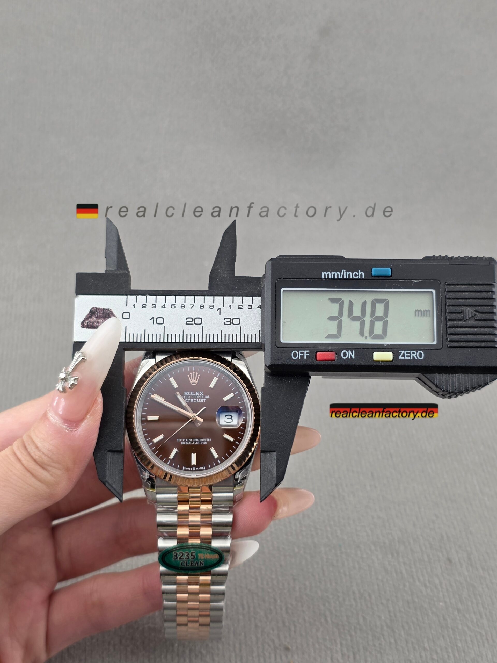 • Die Farbe wurde mit größter Sorgfalt entwickelt: Mit rot-goldenen Untertönen trifft Clean Factory exakt den berühmten Rolex-Schokoladenton. Durch präzise Farbabstimmung unter verschiedenen Lichtverhältnissen wird eine beständige, warme Eleganz erzielt – stilvoll und hochwertig.