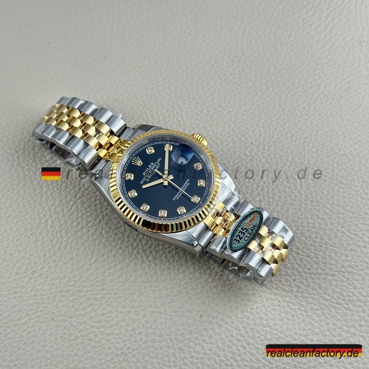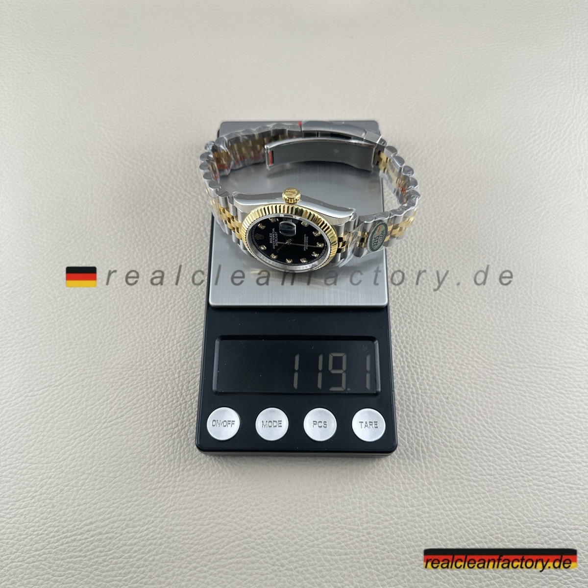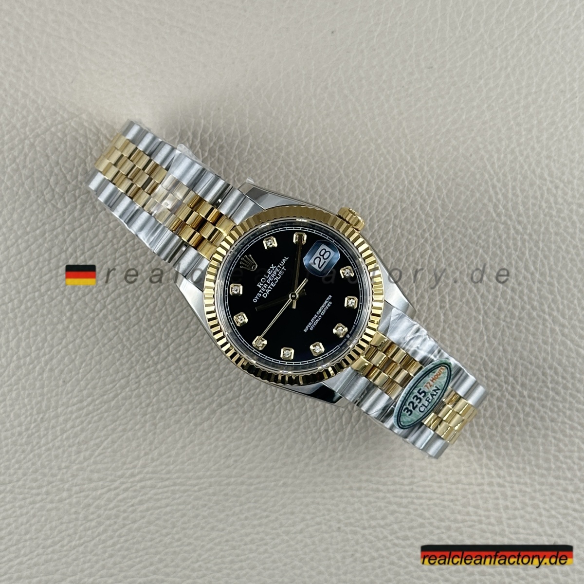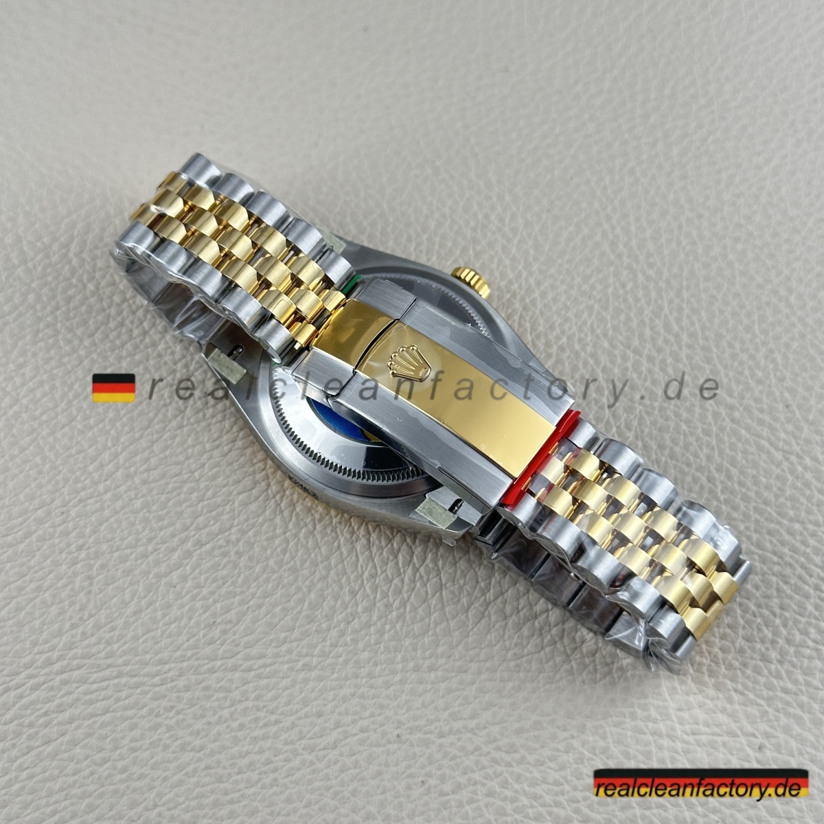 - Die Clean Factory Super Clone Rolex Datejust 126233-0021 kombiniert das dramatische schwarze Zifferblatt, brillante Moissanit-Diamant-Indizes und warmes zweifarbiges Gelbgold zu einer Uhr, die klassische Rolex-Finesse mit unverwechselbarem zeitgenössischem Flair vereint. Diese Konfiguration ist nicht auf Kompromisse ausgerichtet – sie ist ein mutiges Statement für Meisterschaft in Materialwahl und Ausführung, die darauf abzielt, das Original in jeder Hinsicht zu übertreffen.