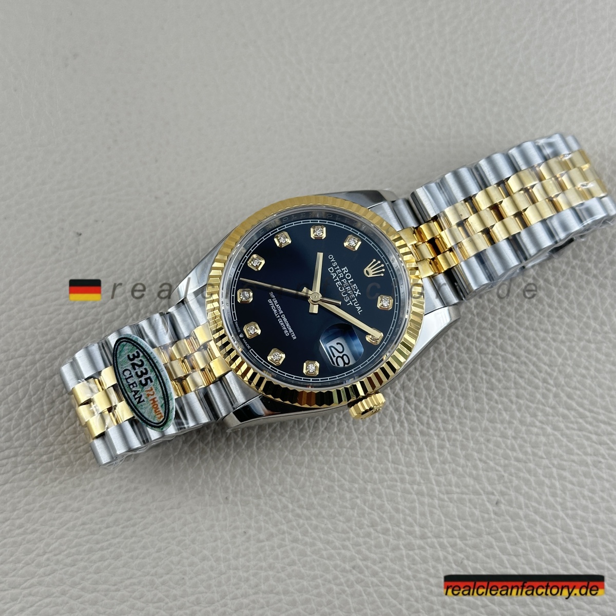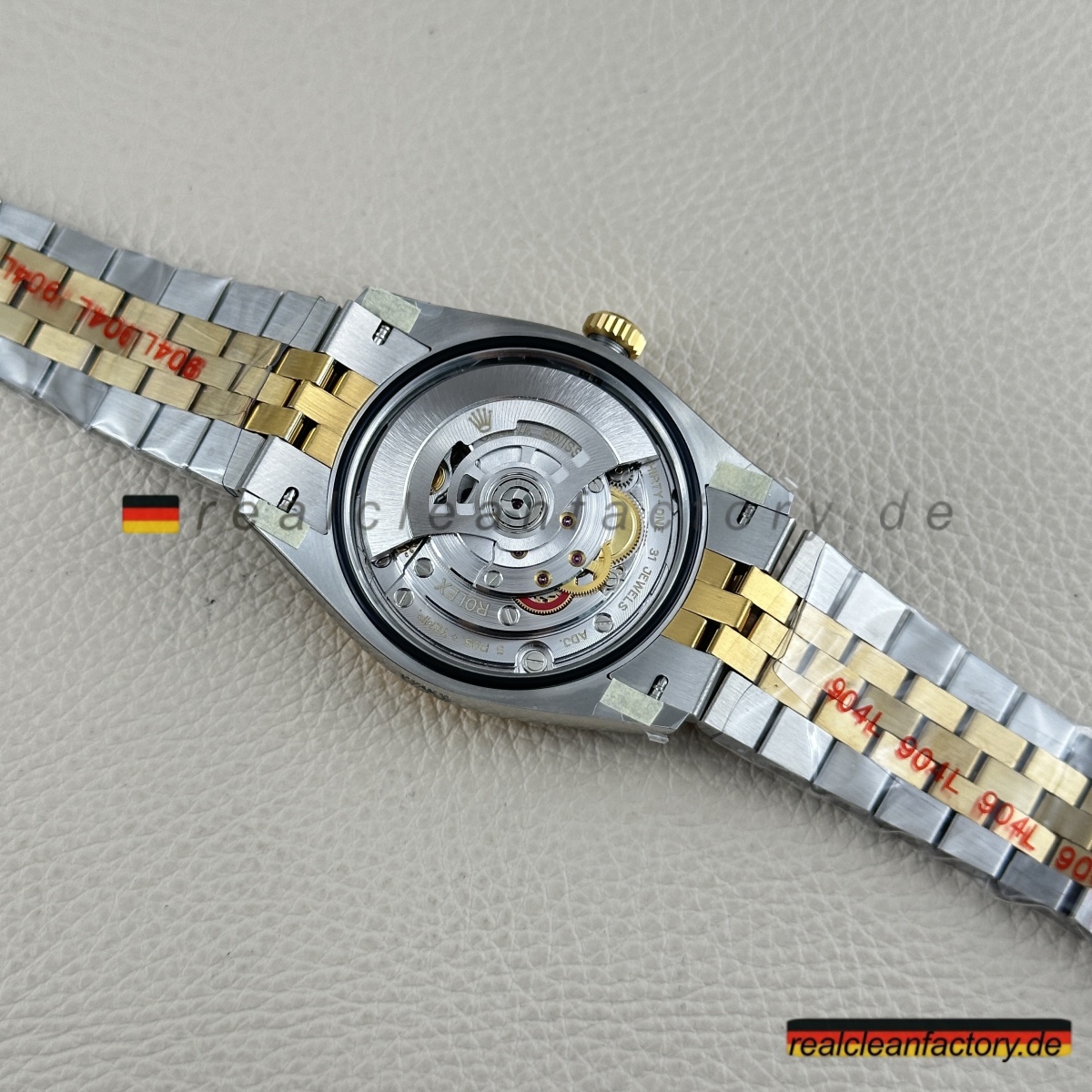- Mit 36mm trifft die Gehäusegröße den perfekten Punkt – groß genug, um die Diamanten und das Zifferblattdetail zu zeigen, aber in der klassischen Eleganz, die zu jedem Handgelenk passt. Clean Factory hat die Gehäuseproportionen von Rolex perfekt dupliziert, von den elegant gebogenen Hörnern bis zu den präzisen Kronenschutzvorrichtungen. Das Ergebnis ist eine Uhr, die sich sicher am Handgelenk anfühlt, ohne in Bulkigkeit abzurutschen.