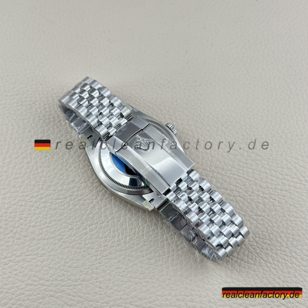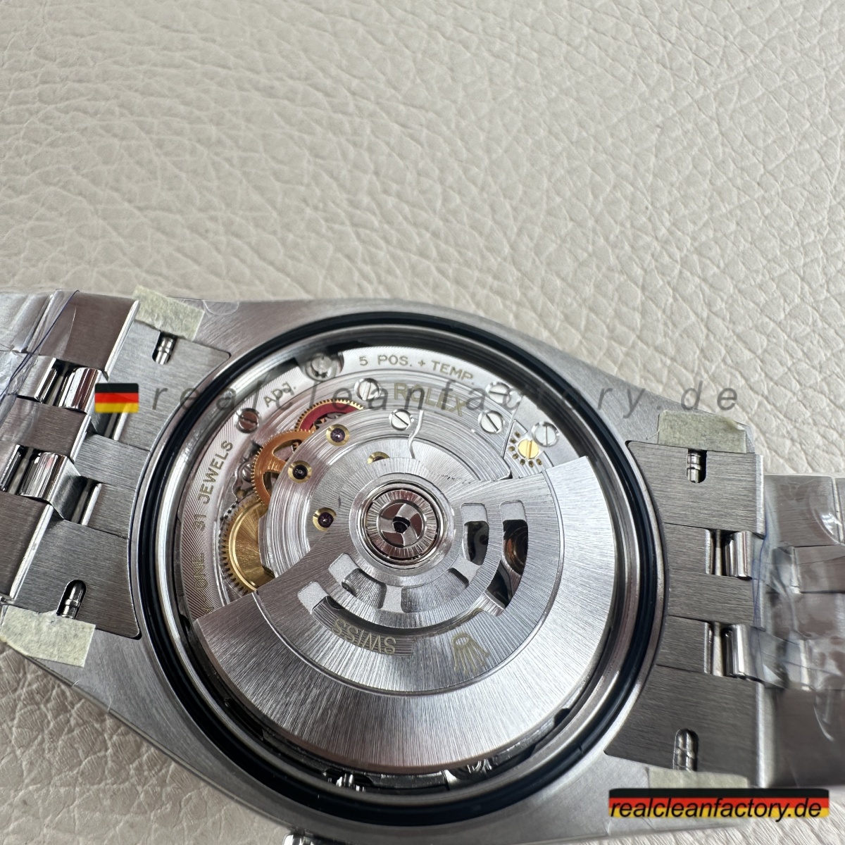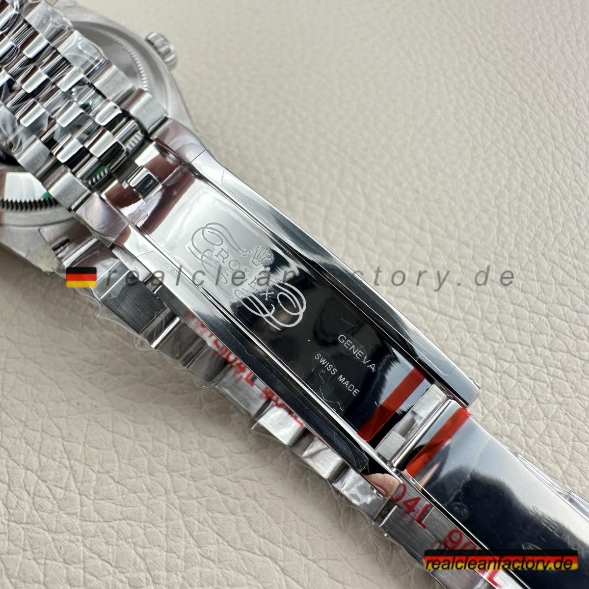 • Im direkten Vergleich mit dem Original überzeugt diese Clean Factory Super Clone durch höchste Treue: von der Zifferblatt-Tiefe über die Weißgold-Präzision bis zur vollständigen Uhrwerksqualität – nahezu 98 % authentisches Rolex-Erlebnis.