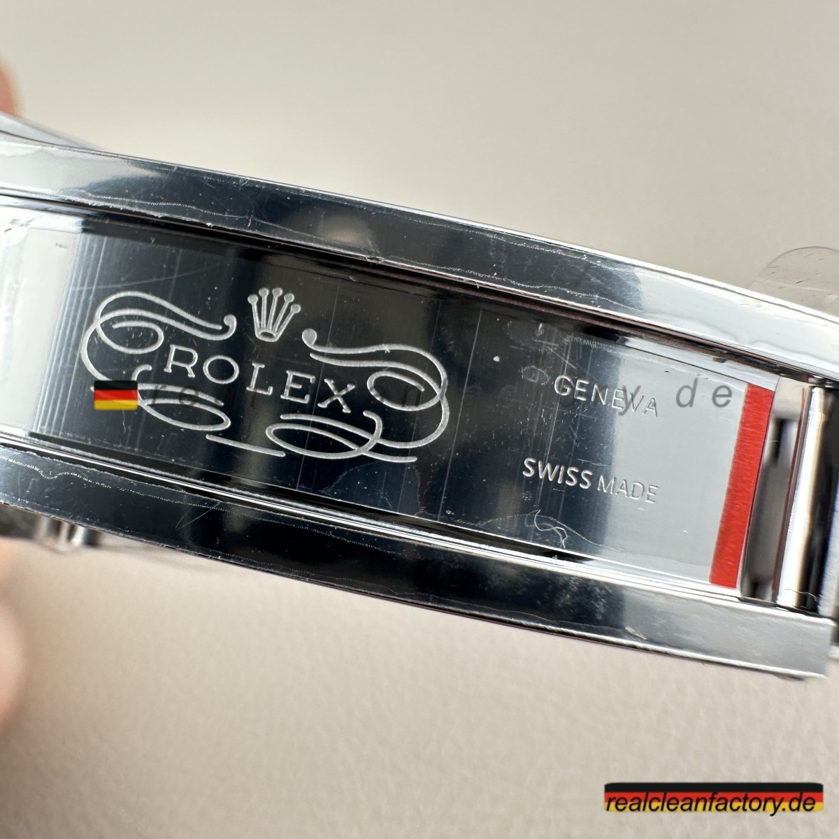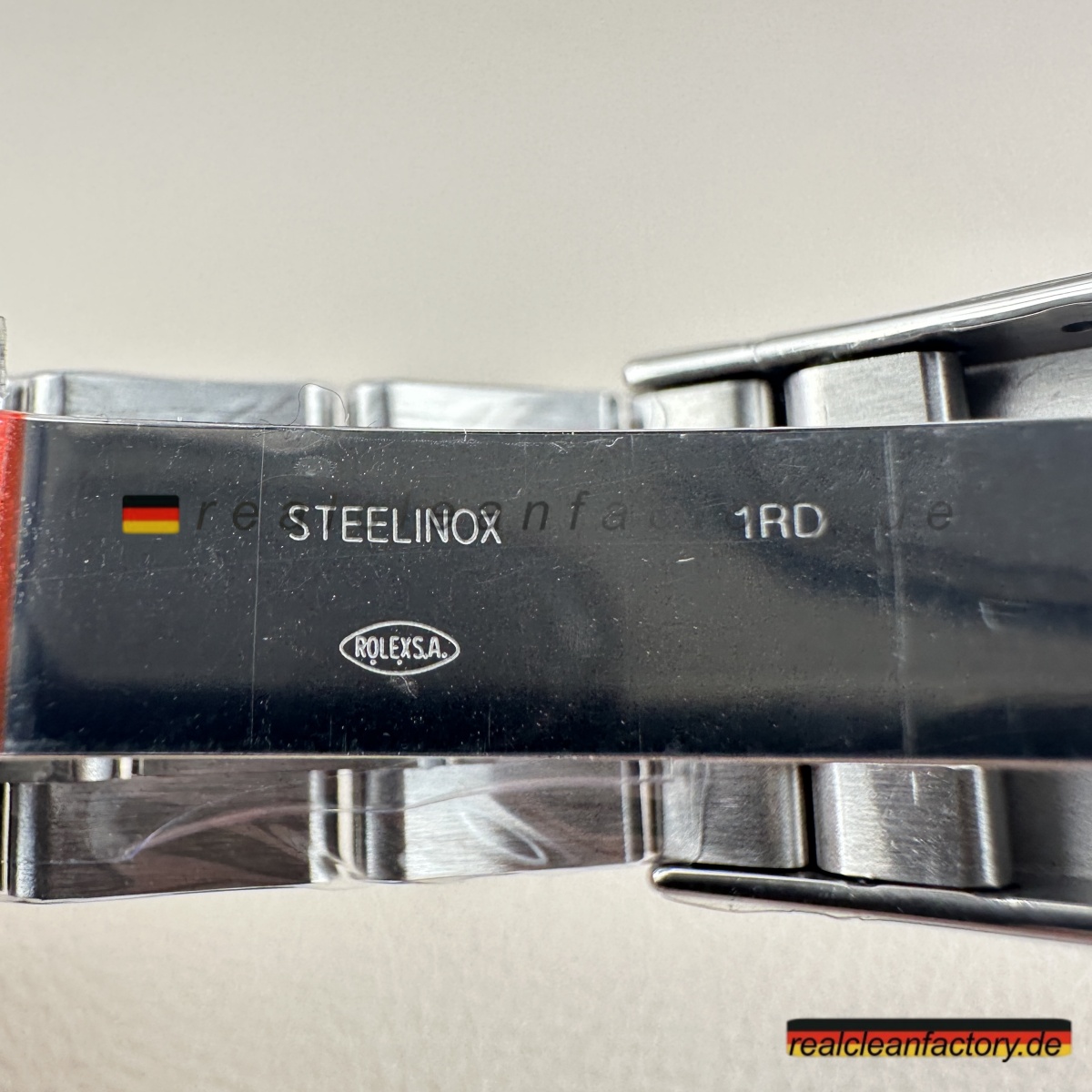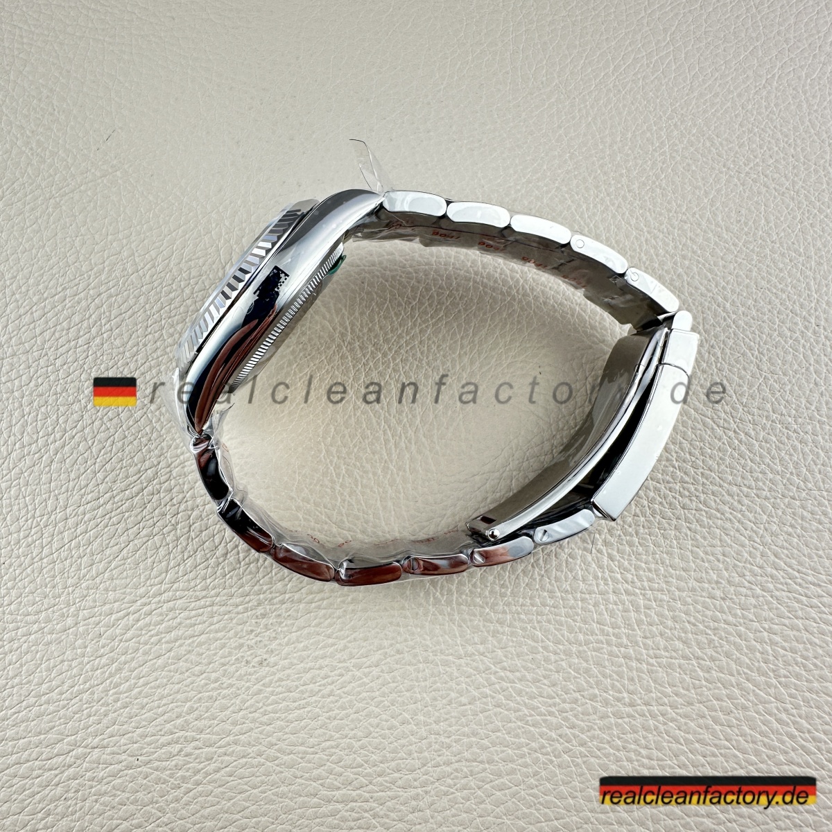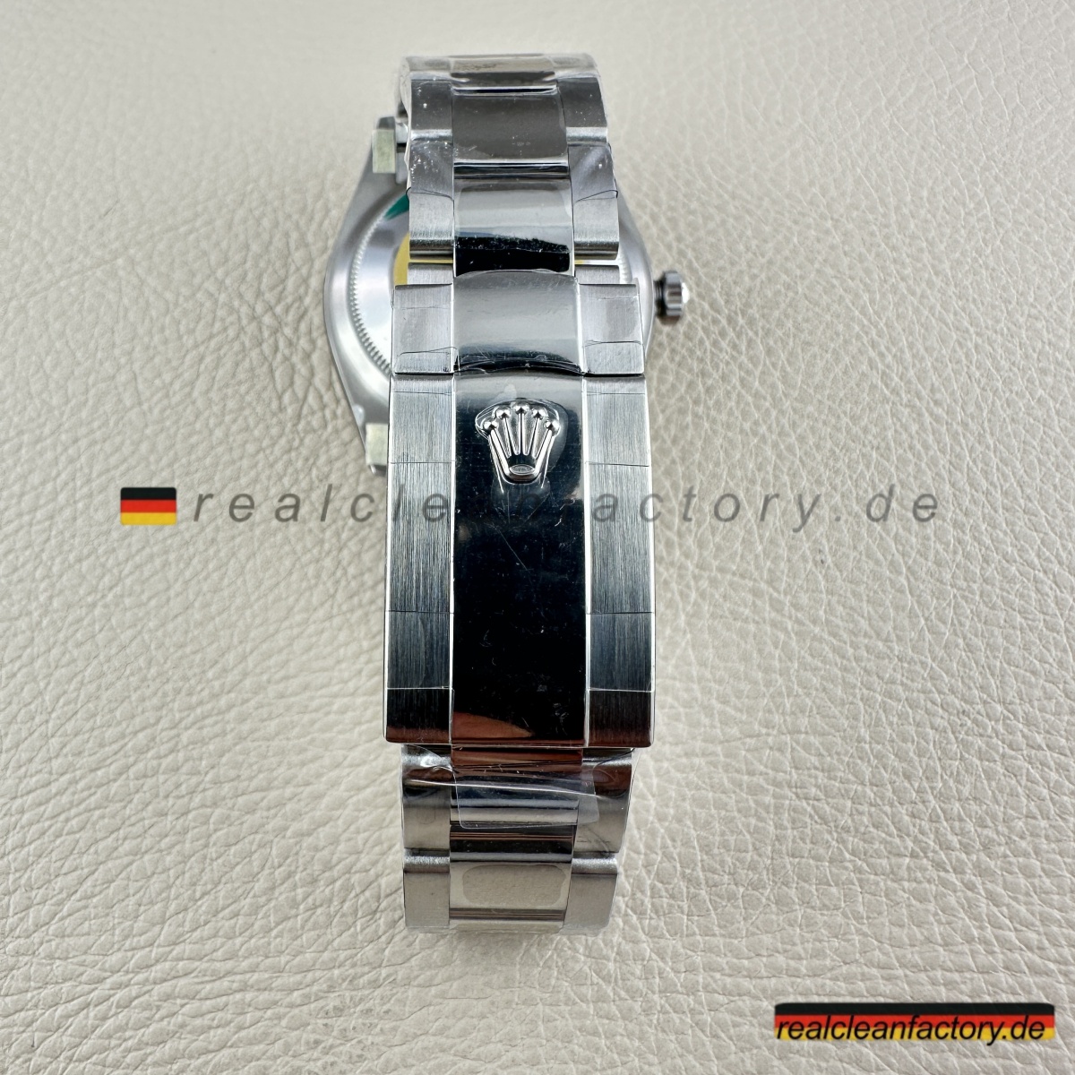 - Das Oyster-Armband trägt sowohl zum Stil als auch zur Praktikabilität bei. Die dreigliedrige Konstruktion mit polierten äußeren Gliedern und gebürsteten Mittelgliedern bietet einen raffinierten Kontrast zum weißen Zifferblatt und erhöht gleichzeitig die Haltbarkeit. Clean Factory verwendet 904L-Stahl, ein höherwertigerer Stahl als üblicher, der sicherstellt, dass das Armband Kratzern widersteht und seine Oberfläche über die Zeit hinweg behält. Die Gelenkigkeit des Armbands ist geschmeidig und bietet den Komfort und die Flexibilität, die das Oyster-Armband so ikonisch machen.