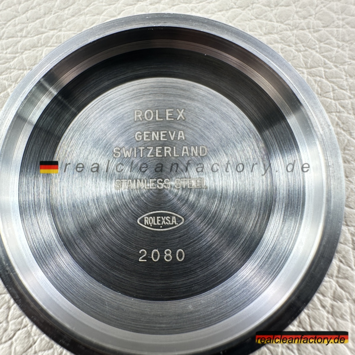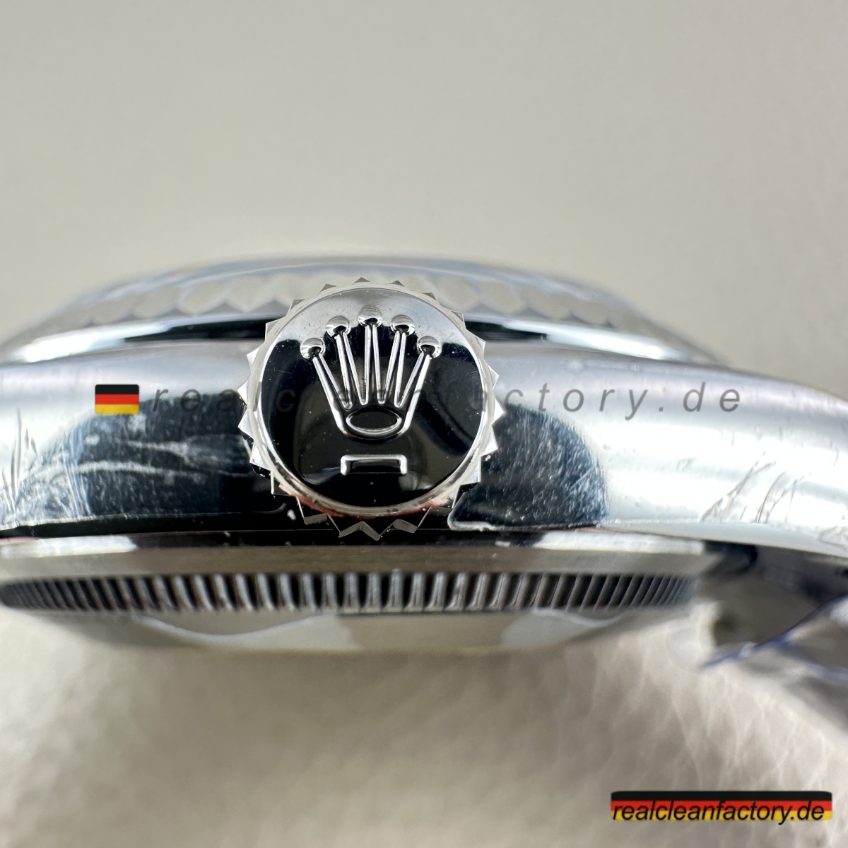 Der winzige, lasergravierte Krone bei 6 Uhr ist ein subtiler, aber wichtiger Detail, der die Authentizität der Konstruktion bestätigt und den exakten Rolex-Standards entspricht.