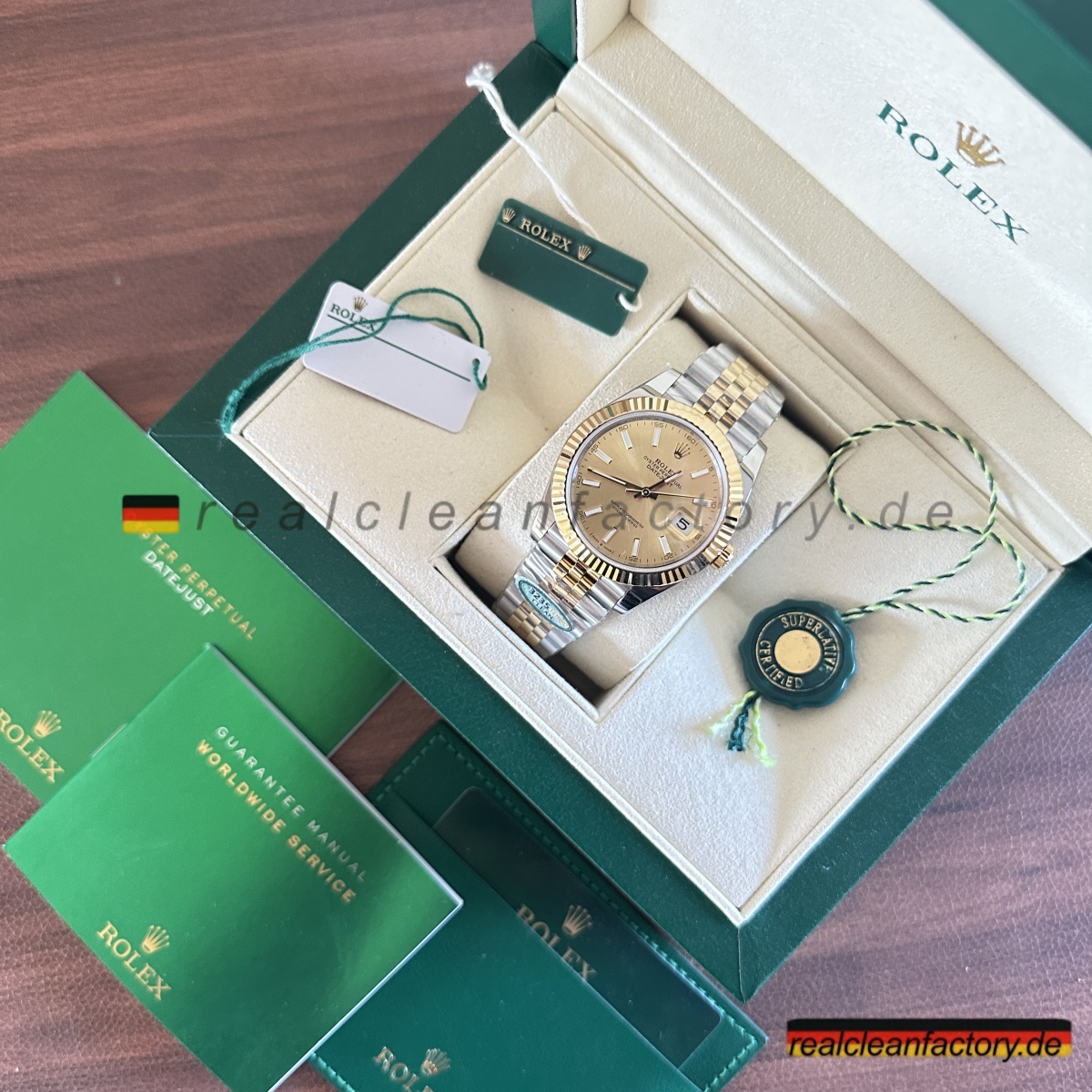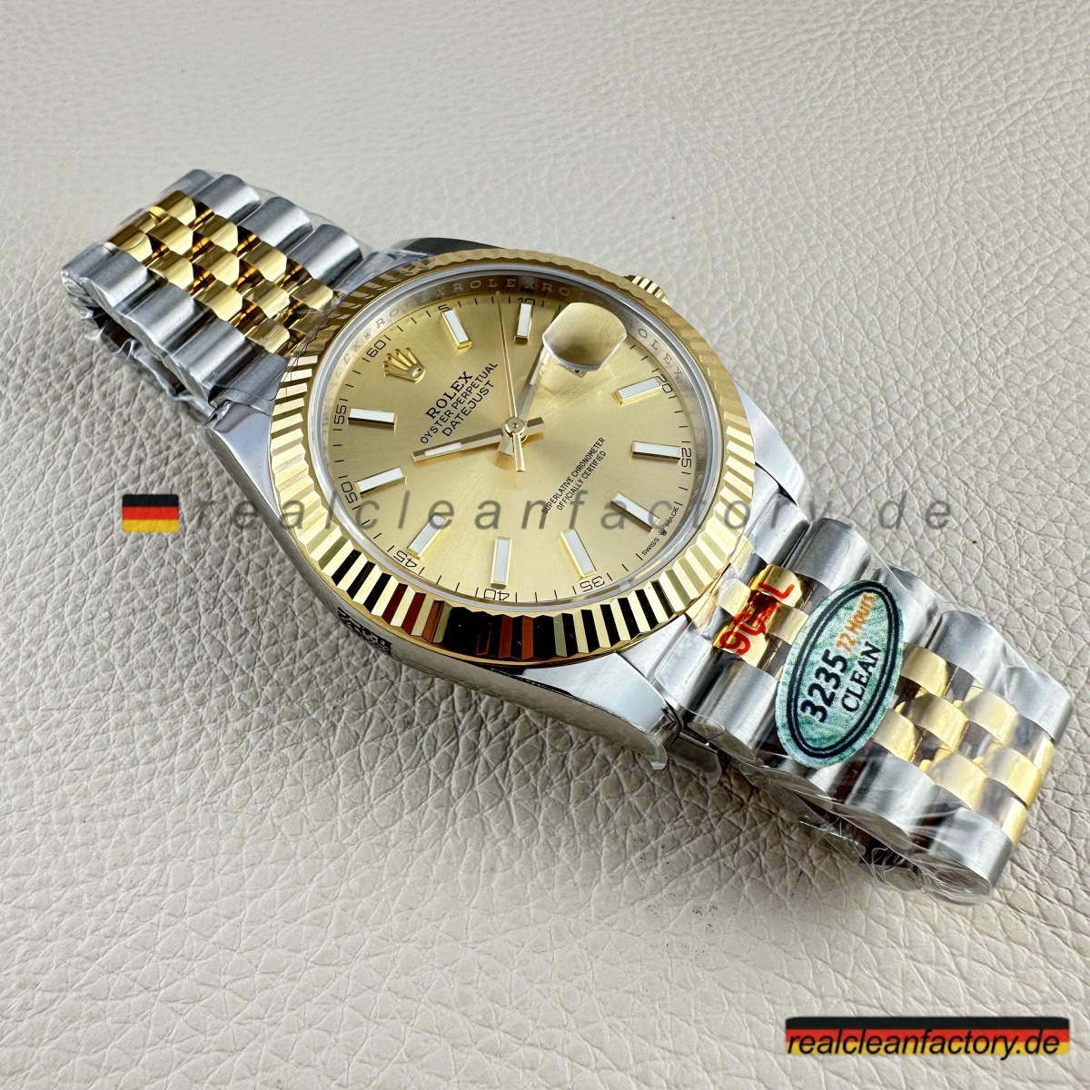 • Die meisten Hersteller scheitern schon an einem dieser Details – Clean Factory meistert alle drei: perfekte Zifferblattfarbe, makellose Goldabstimmung und präzise Jubilee-Fertigung. Das Ergebnis ist eine Uhr, die zeitlose Klasse mit moderner Technik vereint und langlebige Qualität liefert, der ihr Vorbild alle Ehre macht.