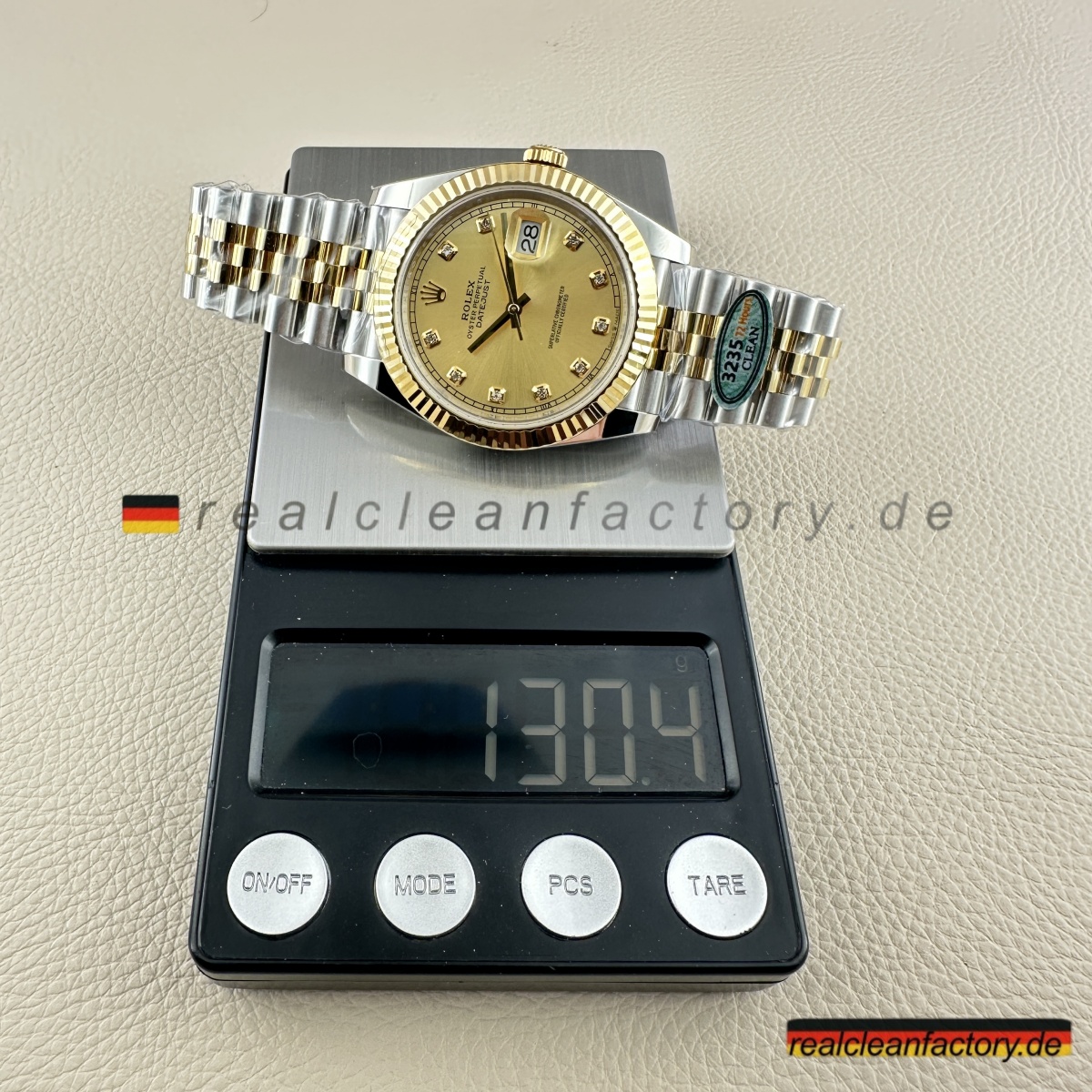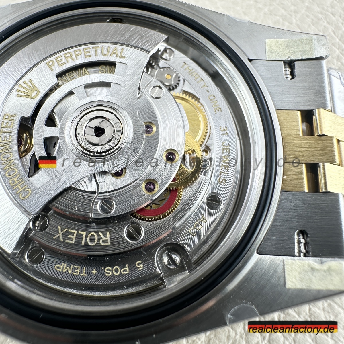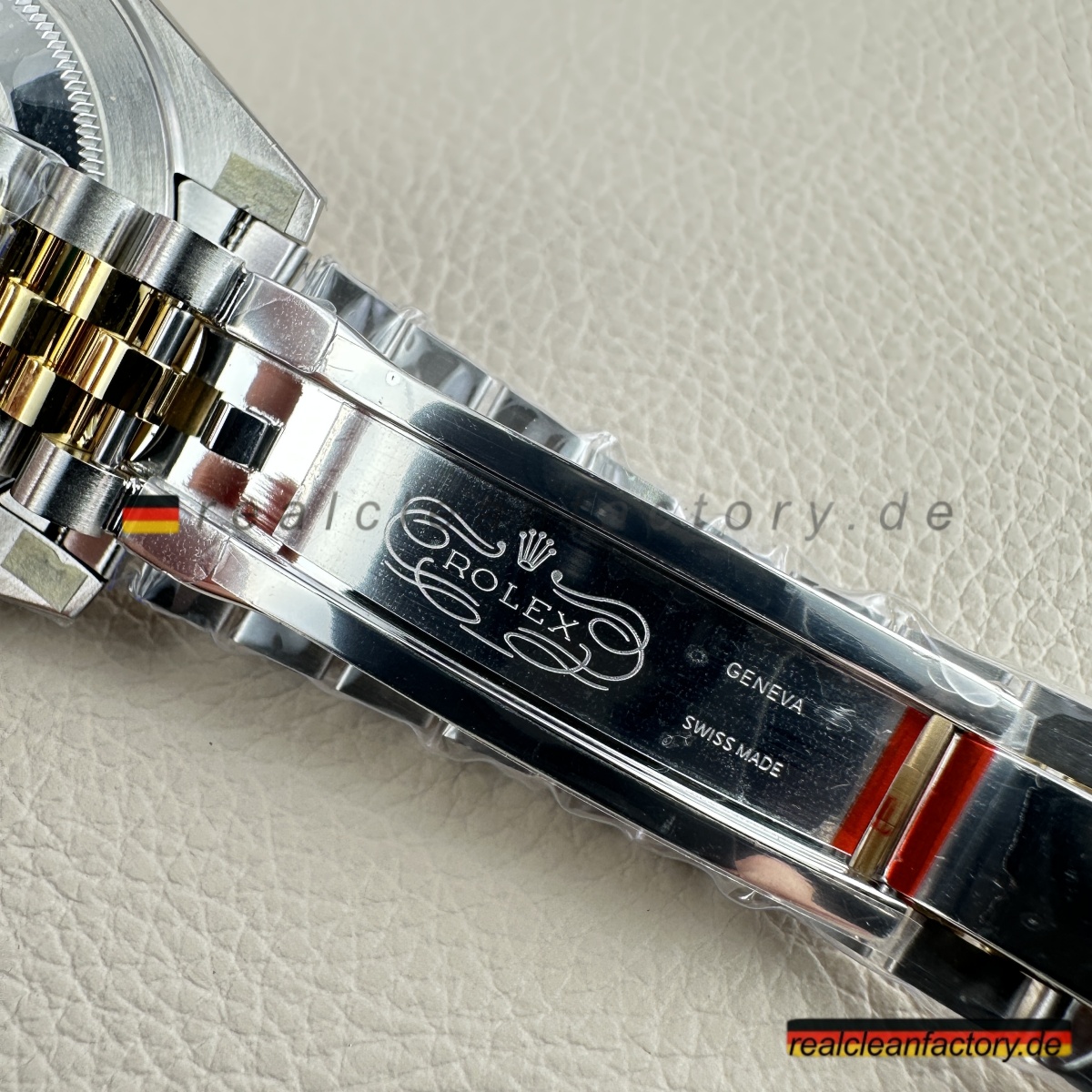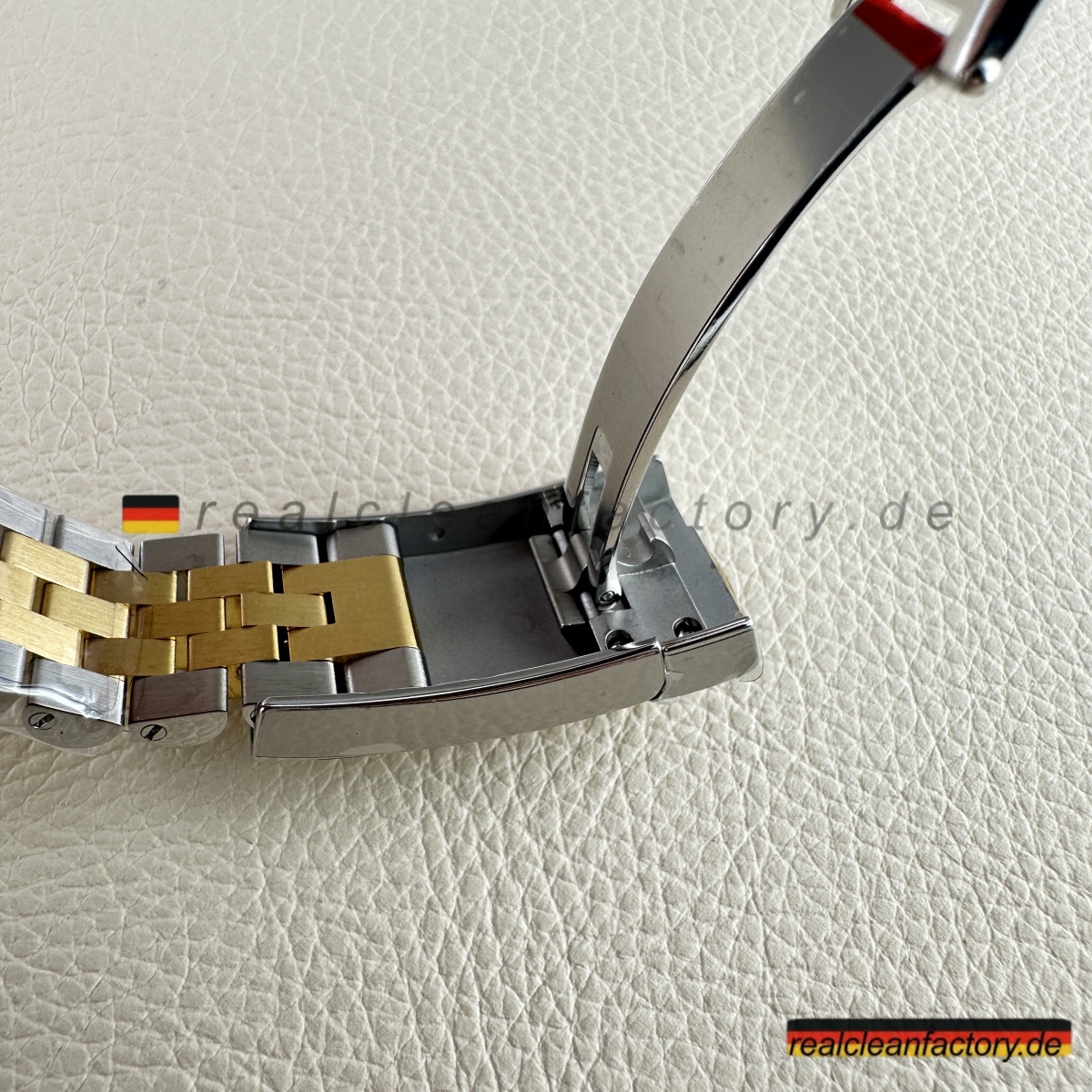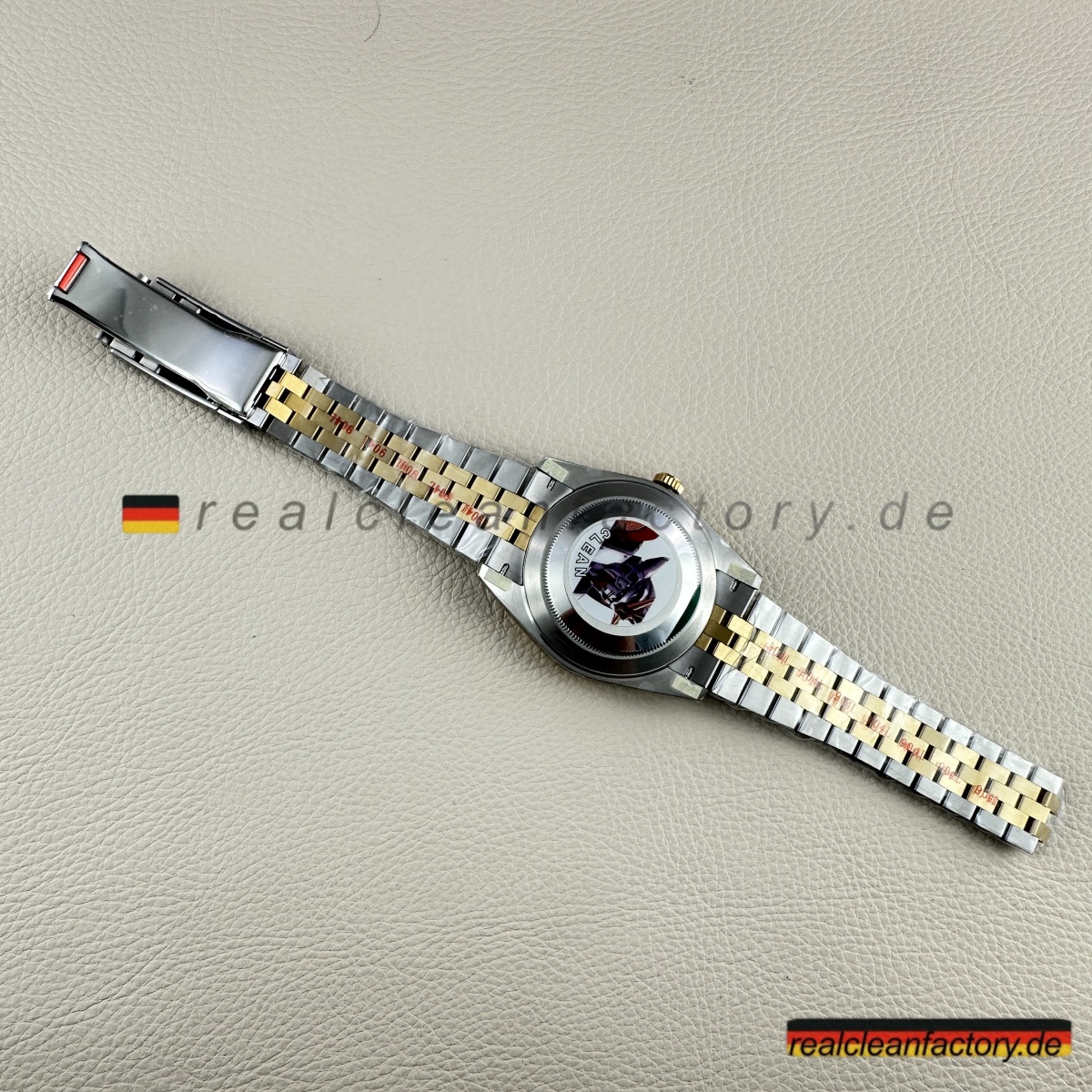 - Diese perfekte Harmonie aus Champagner-Zifferblatt, Gelbgold und Diamantakzenten erfordert präzise Abstimmung. Selbst kleine Unterschiede in Goldton oder Ausrichtung der Indizes würden sofort auffallen. Clean Factorys kompromisslose Konsistenz sorgt für ein stimmiges Erscheinungsbild, das dem Namen Rolex gerecht wird.