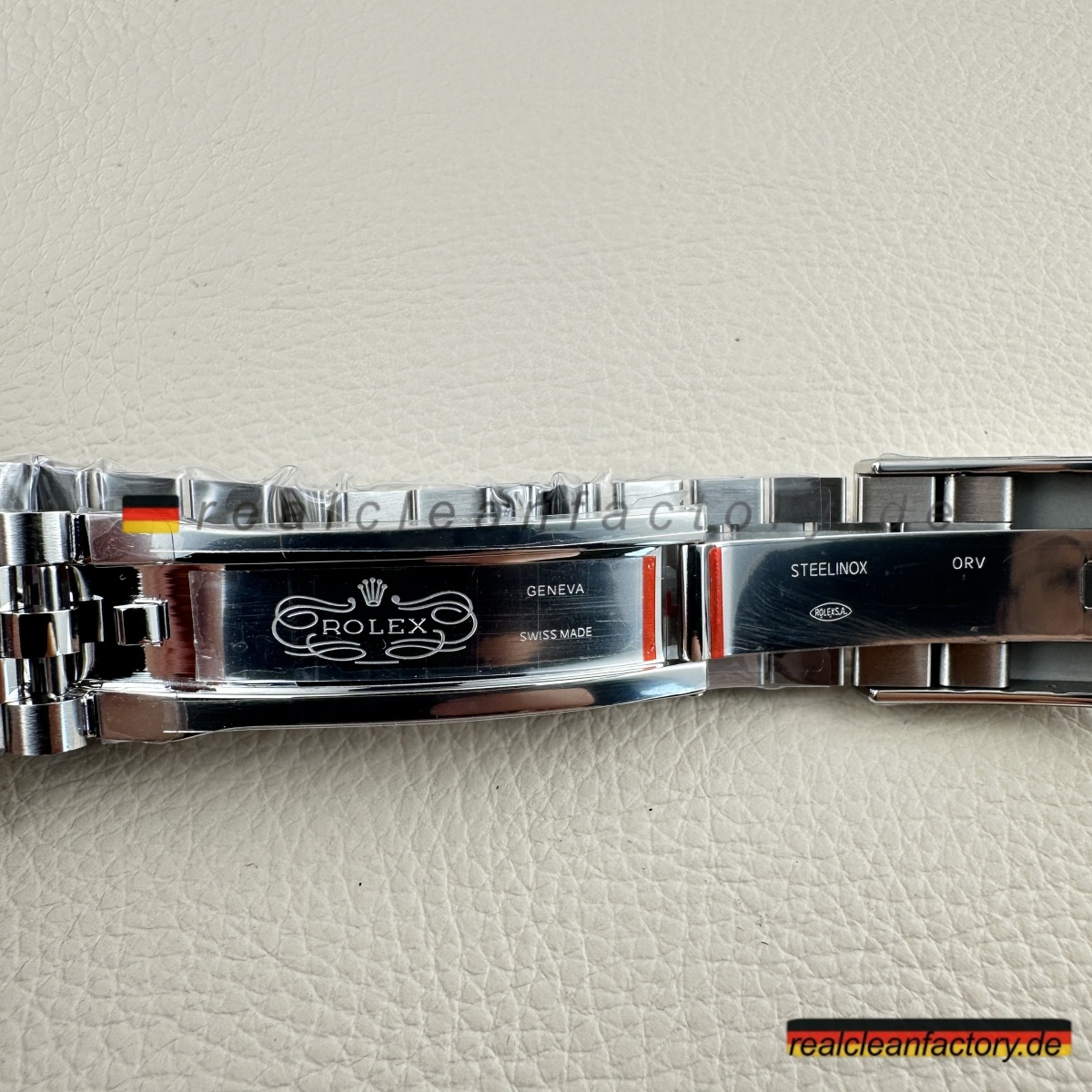 Die Schließe ist satt einrastend, das Kronenlogo tief graviert und klar erkennbar. Hier merkt man: Clean spart nicht an den wichtigen Stellen.