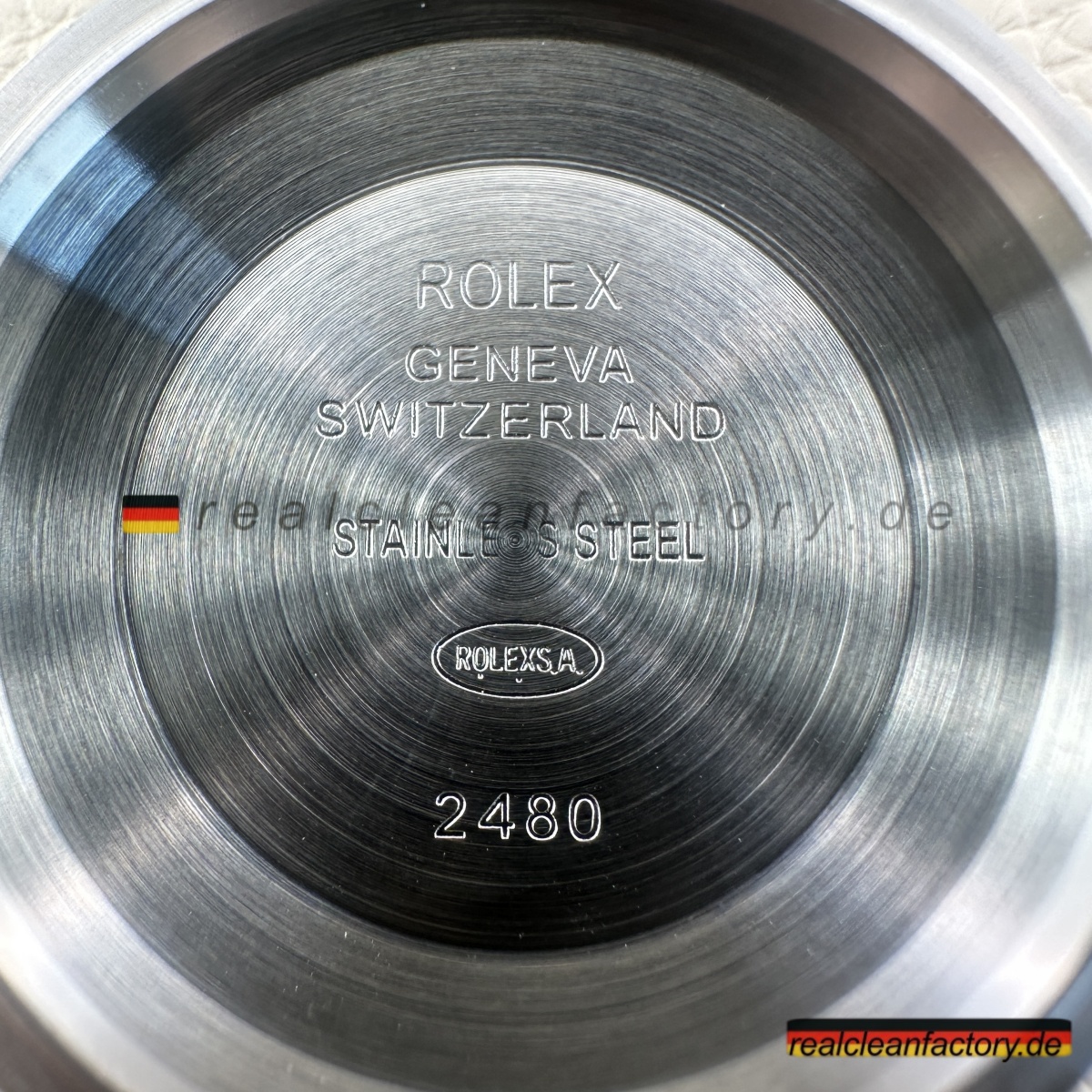 Die Rehautgravur ist gestochen scharf, zentriert und sehr sauber. Die Seriennummer bei 6 Uhr passt exakt – hier zeigt sich, wie ernst es Clean mit den Details meint.