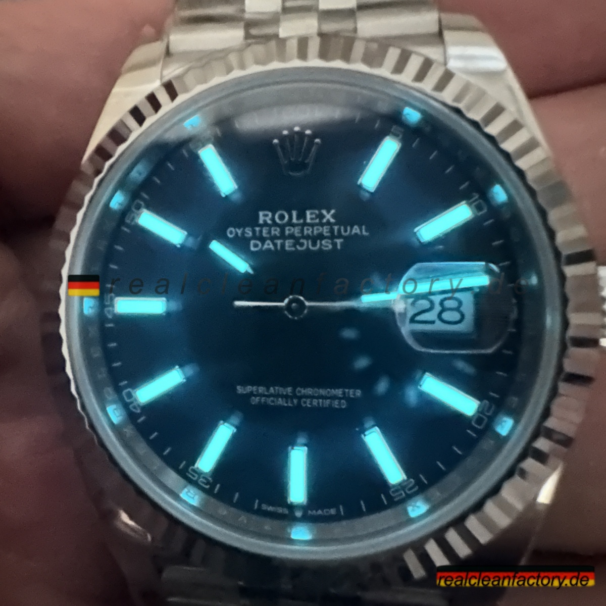 Ich besitze die echte Datejust mit silbernem Blatt – im direkten Vergleich merkt man bei der Clean-Version fast keinen Unterschied. Die Qualität ist wirklich beeindruckend.