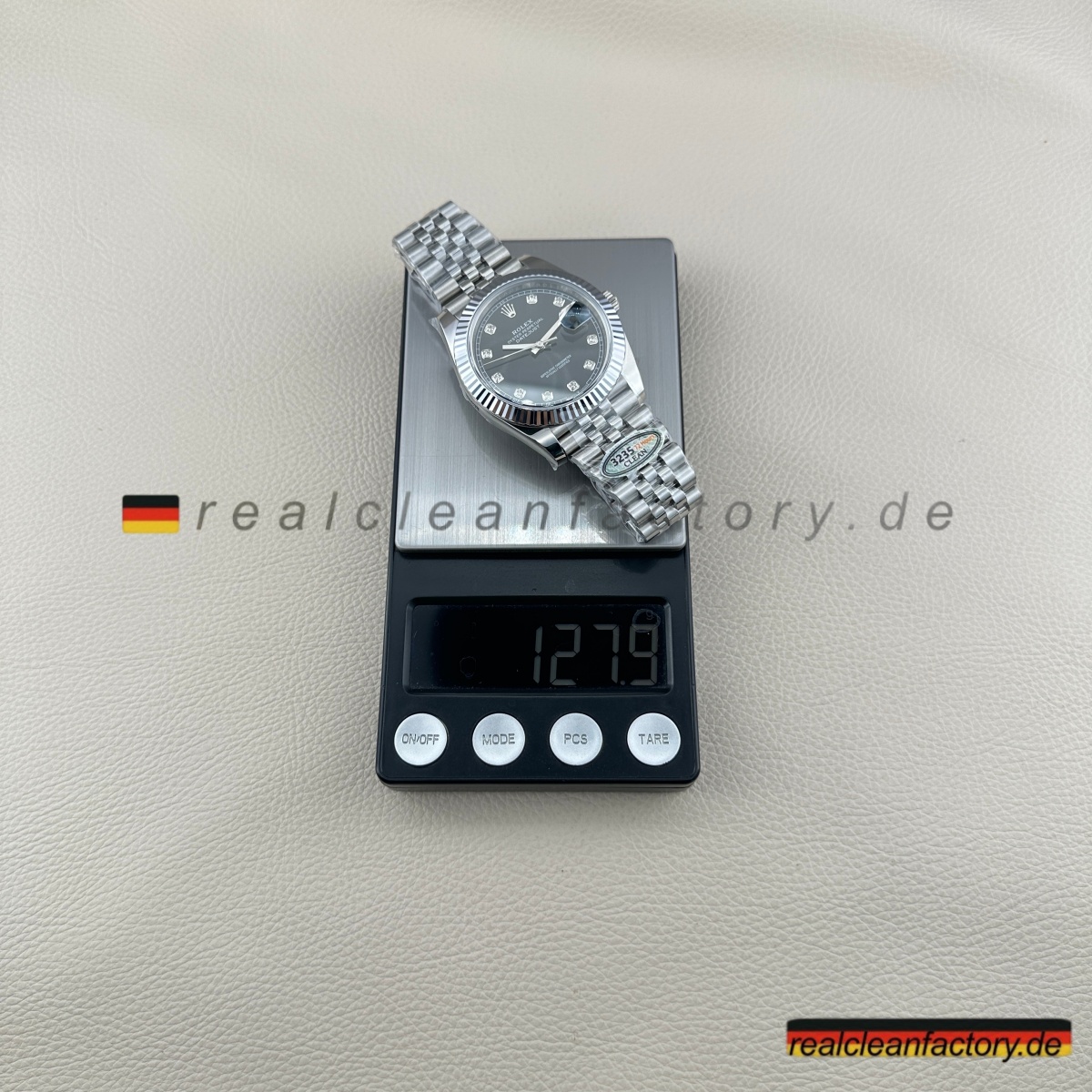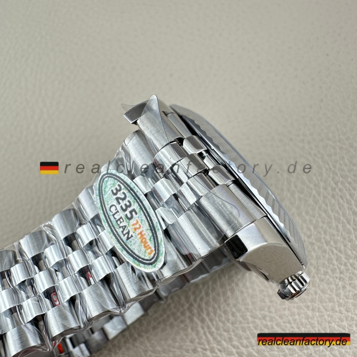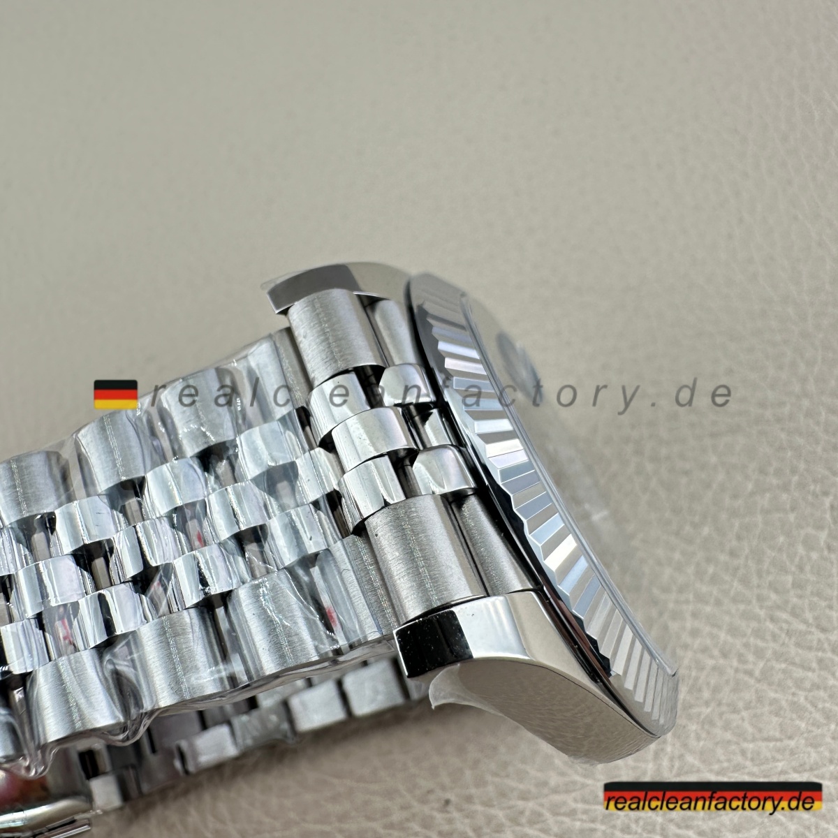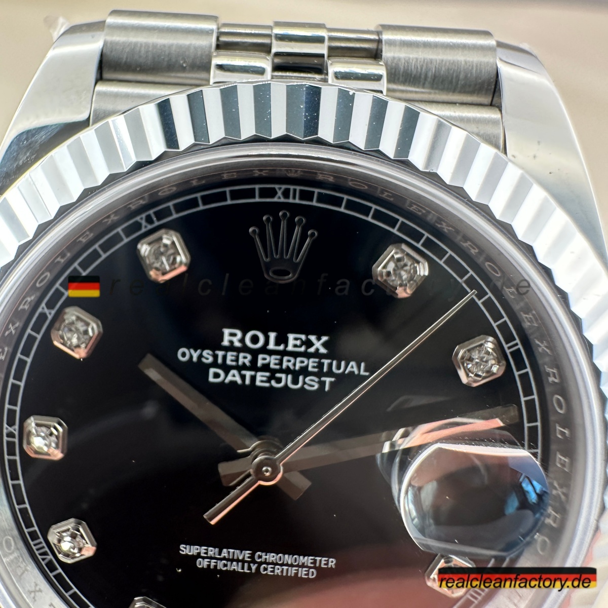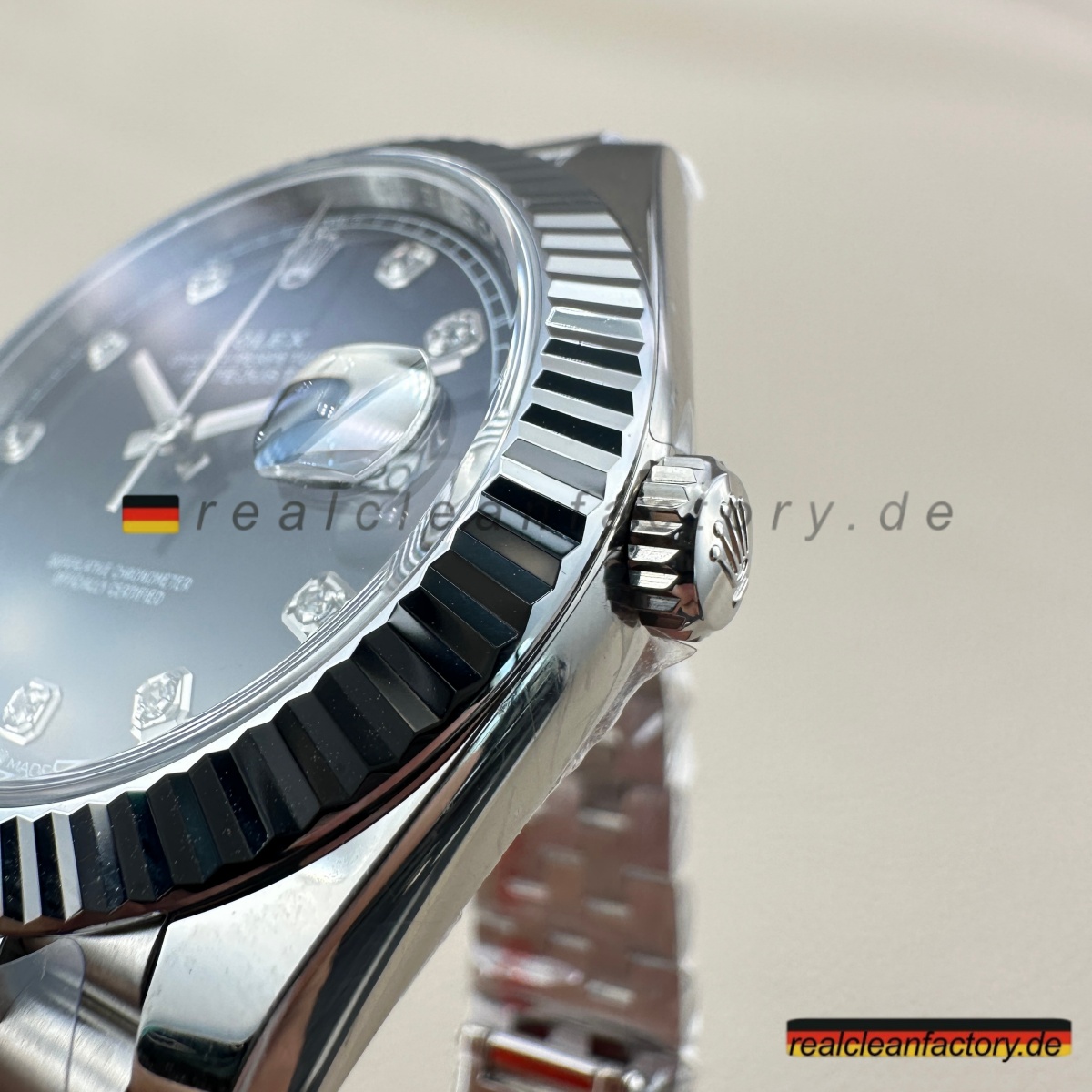 • Die meisten Hersteller vermeiden diese Kombination, weil sie kompromisslose Spitzenqualität in allen Bereichen erfordert: Diamantfassung, Weißgoldbearbeitung, perfektes Armband – alles muss stimmen. Wer es versucht, spart oft an Details. Clean Factory hingegen investiert in modernste Technik und erfahrene Handwerkskunst – mit dem Ergebnis, dass dieses Modell echten Luxus vermittelt, der jeder Prüfung standhält.