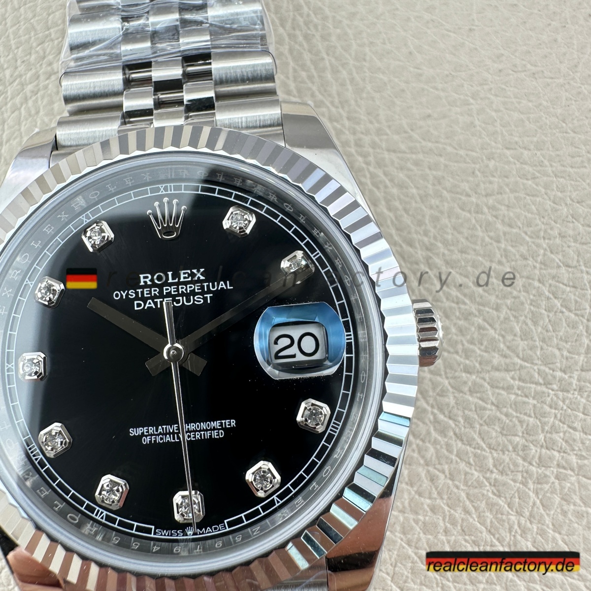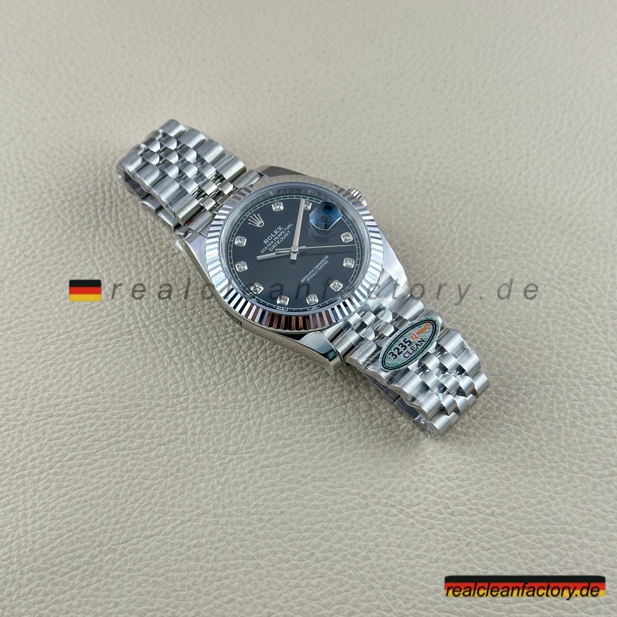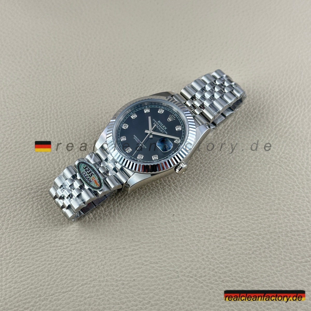 • Clean Factorys Super Clone Datejust 126334-0012 zeigt, warum diese Manufaktur zu den absoluten Spitzenreitern im Replikabereich gehört. Dieses Modell vereint die Raffinesse eines schwarzen Zifferblatts mit dem Glanz von Diamantindizes und der kühlen Eleganz einer Weißgold-Riffel-Lünette – eine der beeindruckendsten Kombinationen der gesamten Kollektion.