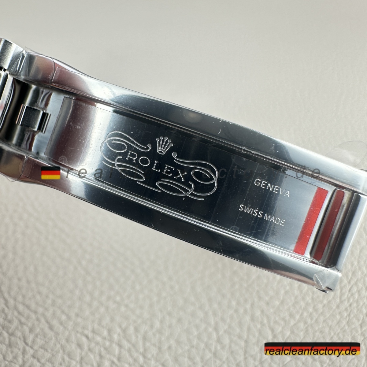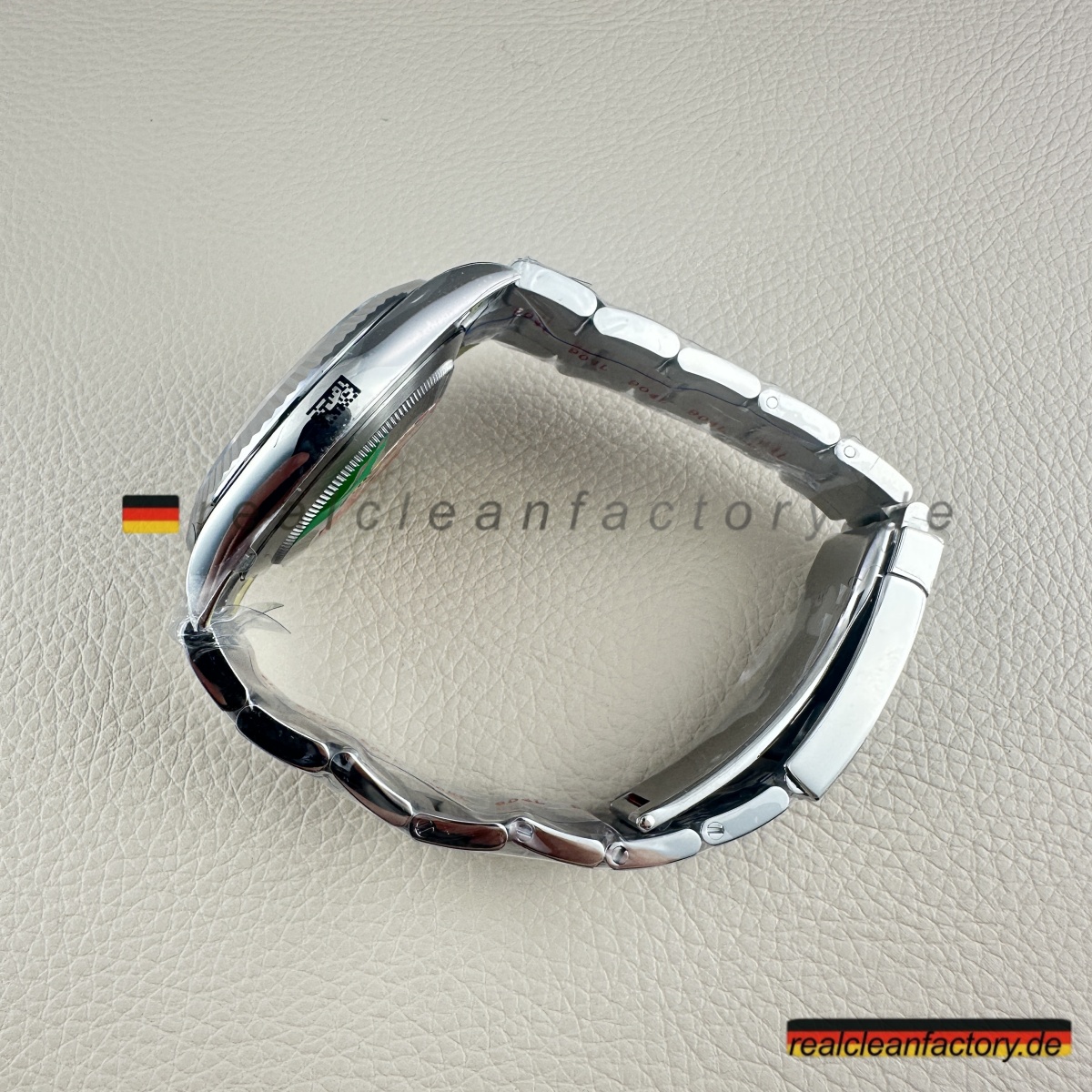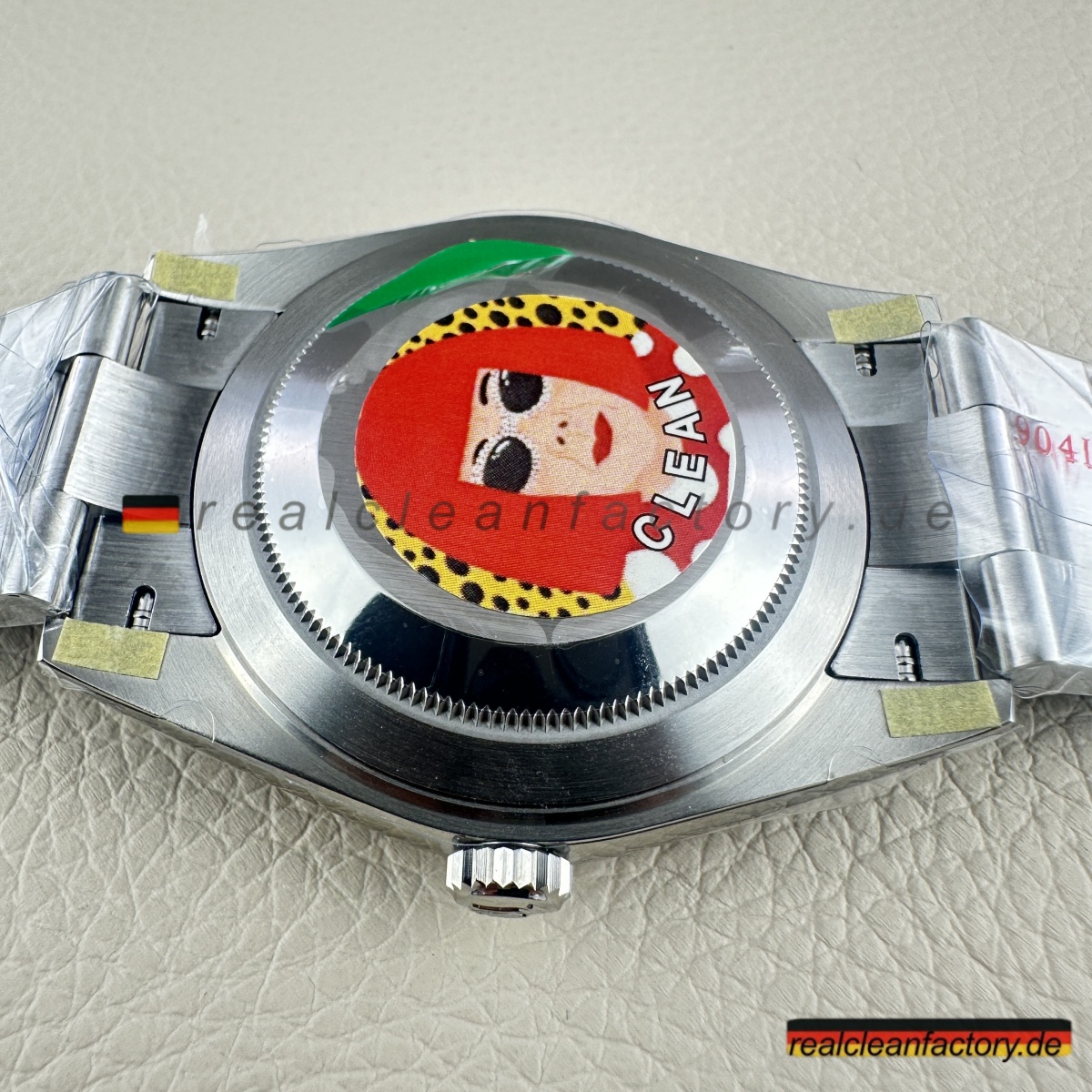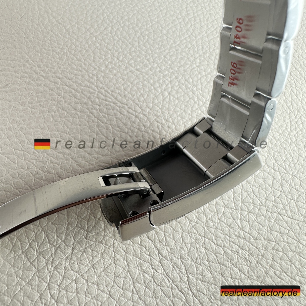 - Ein weiteres Detail, das sofort auffällt, ist, wie Clean Factory den 904L-Stahl verarbeitet hat. Die meisten verwenden günstigen 316L-Stahl und hoffen, dass es niemand bemerkt – aber man fühlt und sieht den Unterschied. Dieses Material hat diese unverkennbare Rolex-Dichte und die hohe Widerstandskraft gegen Fingerabdrücke und Korrosion. Das Band fühlt sich massiv und hochwertig an, wie es nur echter 904L-Stahl kann.
