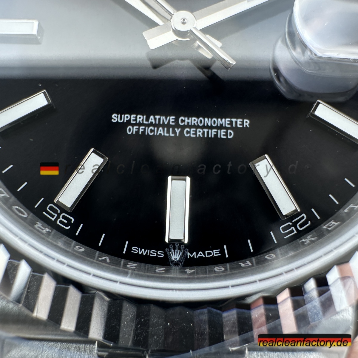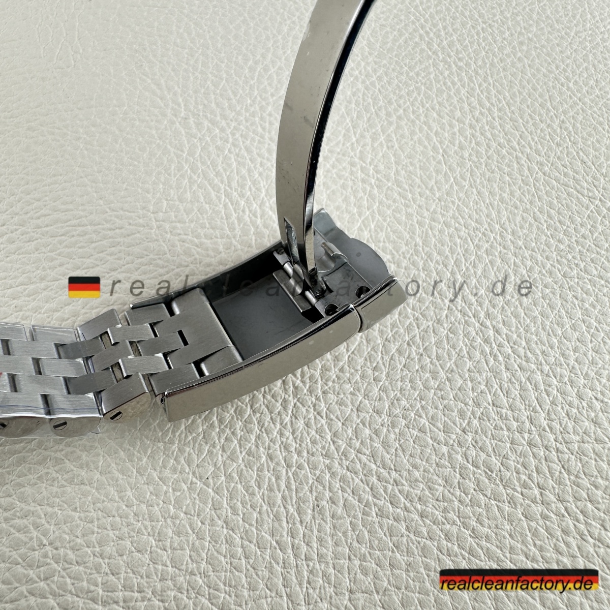 - Viele Hersteller scheitern bereits an einzelnen Details – sei es gleichmäßige Weißgold-Bearbeitung, präzise Jubilee-Fertigung oder die satte Tiefe des schwarzen Zifferblatts. Clean Factorys Investition in präzise Fertigung zeigt: Zurückhaltung kann die höchste Form von Eleganz sein.