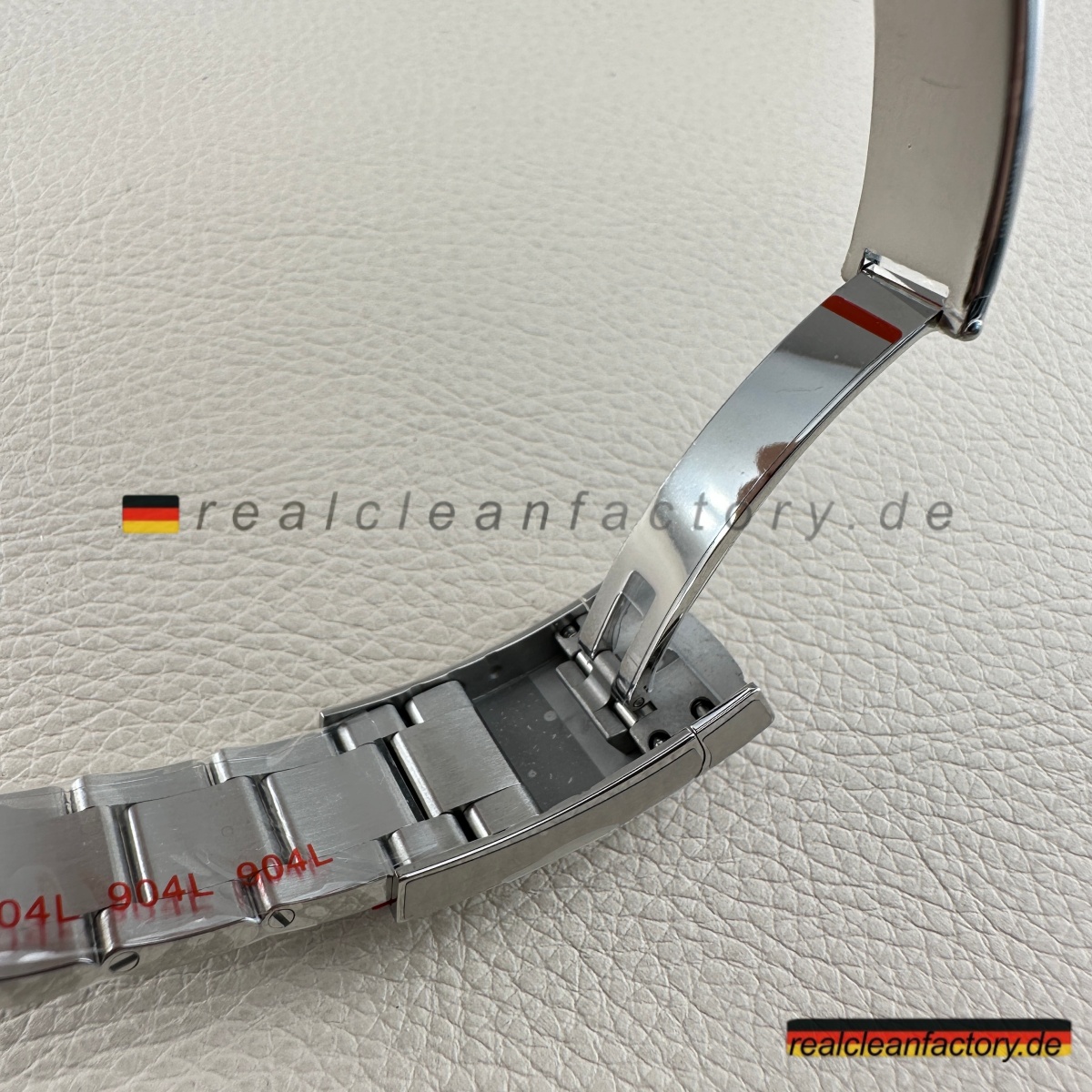 - Das Oyster-Armband passt perfekt zu diesem Zifferblatt. Es hat das sportliche, zielgerichtete Gefühl, das die abenteuerlichere Farbe ausgleicht. Jedes Glied wird aus echtem 904L-Stahl gefertigt, nicht aus dem weicheren 316L, den viele Klone verwenden. Die gebürsteten Mittelglieder und die polierten Außenkanten sind sauber verarbeitet, mit scharfen Übergängen, und die Easylink-Erweiterung funktioniert reibungslos – keine billige Steifheit hier. Schon beim Handling merkt man sofort, dass das Armband das gleiche Gewicht und die gleiche Flüssigkeit wie ein Rolex-Armband hat.