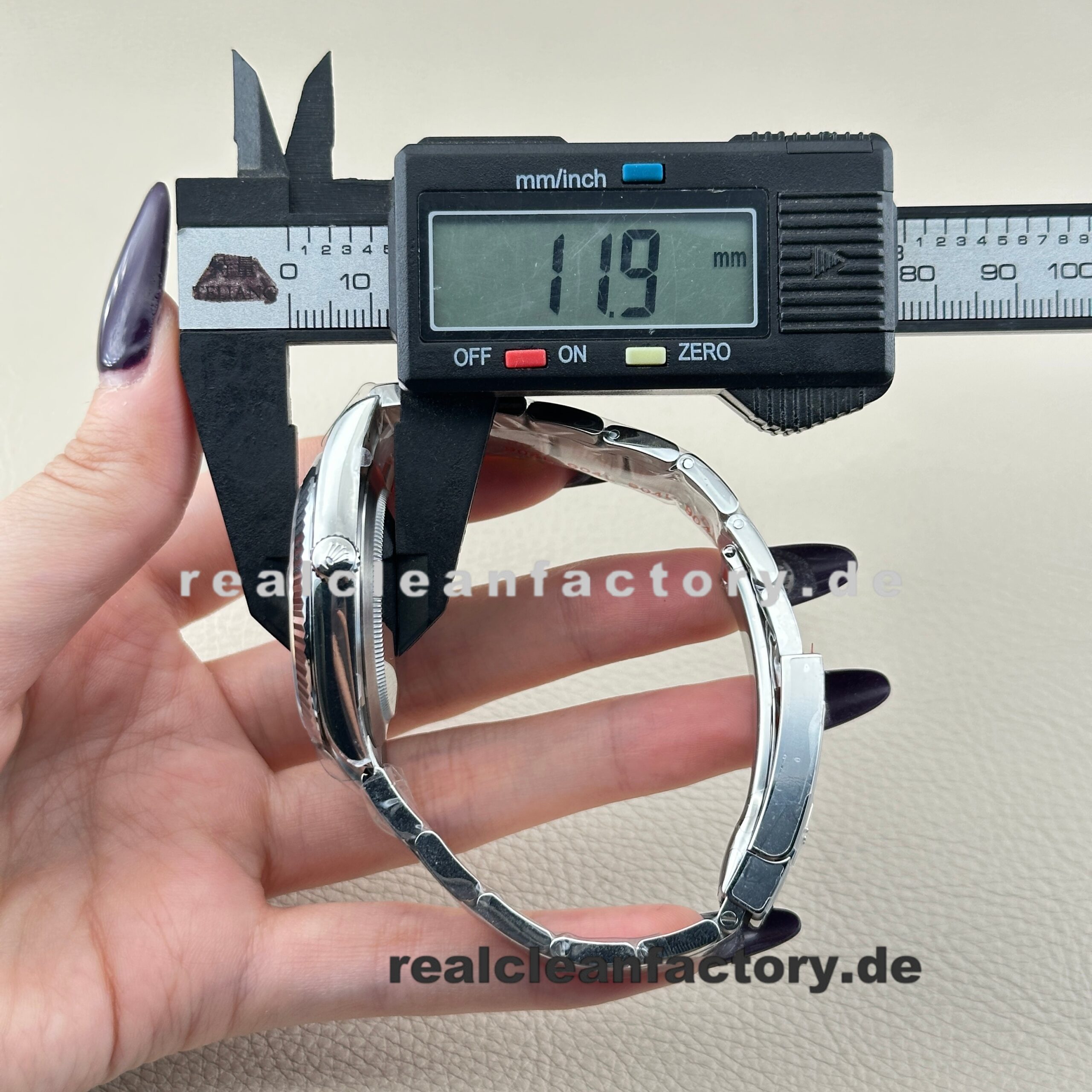 • Die Triplock-Krone ist ein Detail, das nur ein wahrer Rolex-Enthusiast bemerken würde, aber es ist entscheidend. Das Gewinde, die kleine Coronet-Gravur und sogar das Widerstandgefühl beim Zudrehen entsprechen exakt dem Original. Solche Kleinigkeiten sind der Grund, warum Clean Factory in einer eigenen Liga spielt.