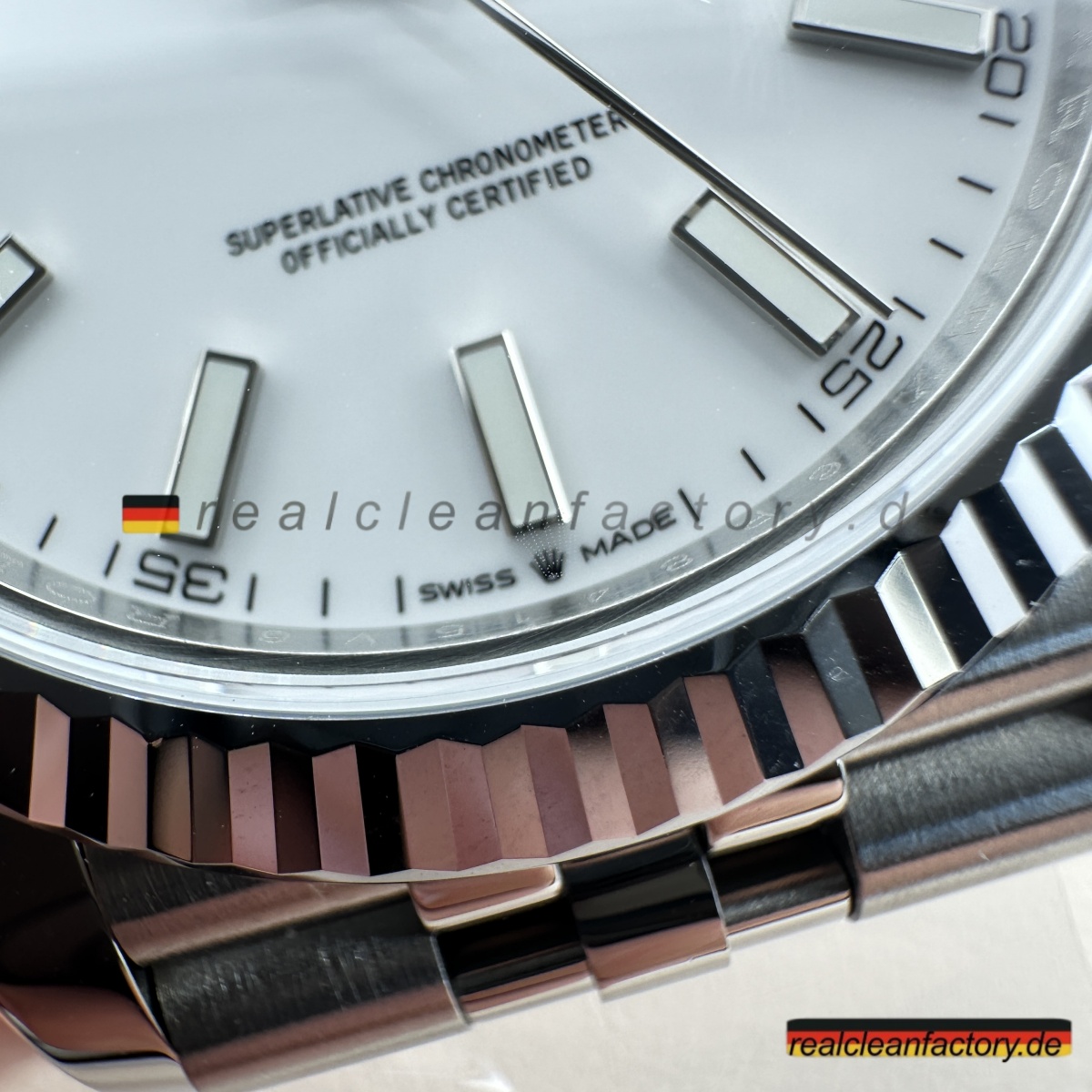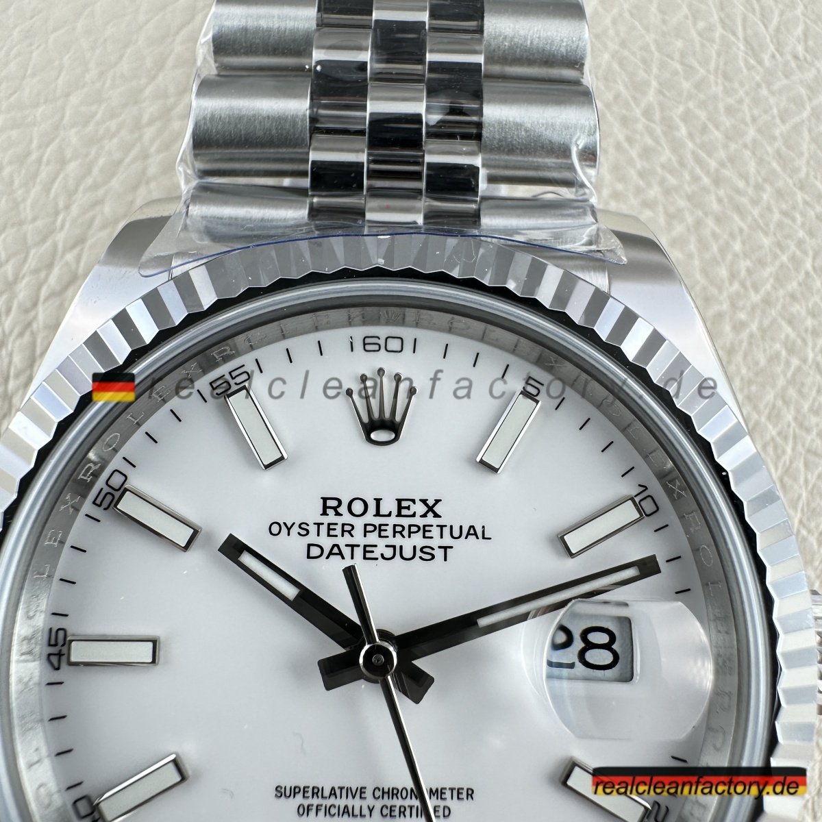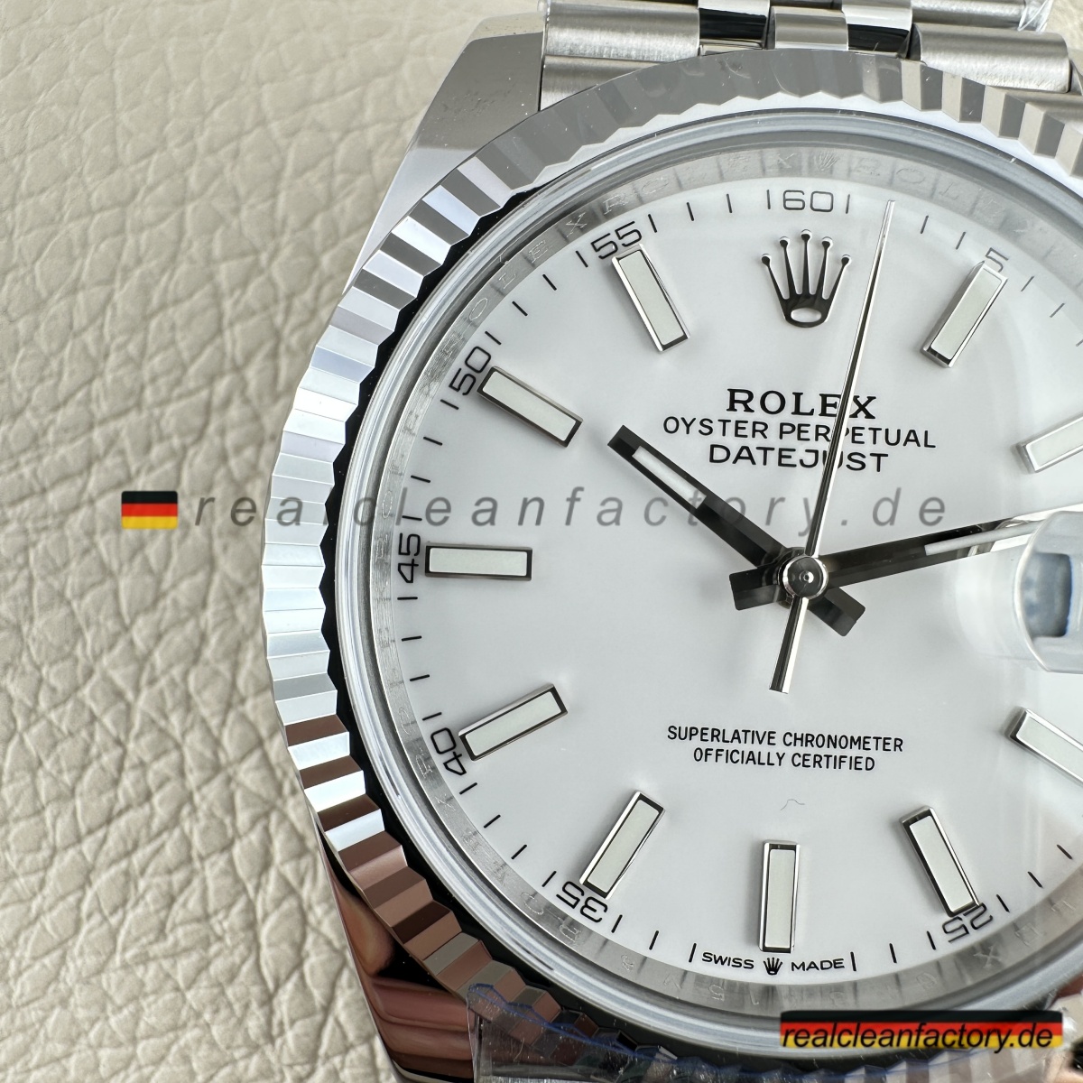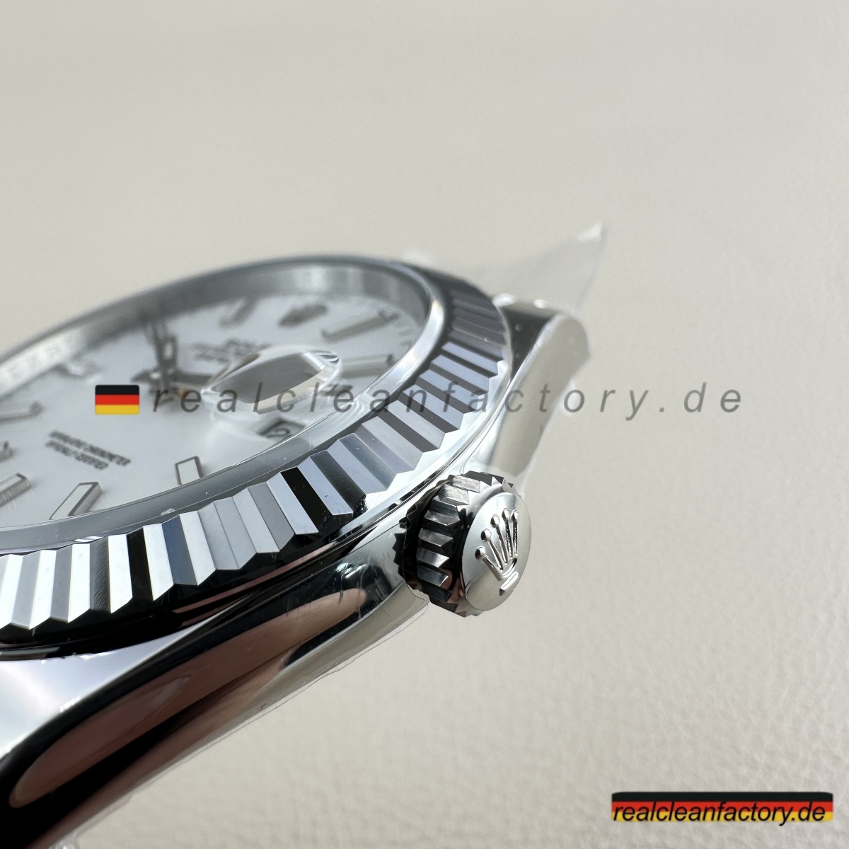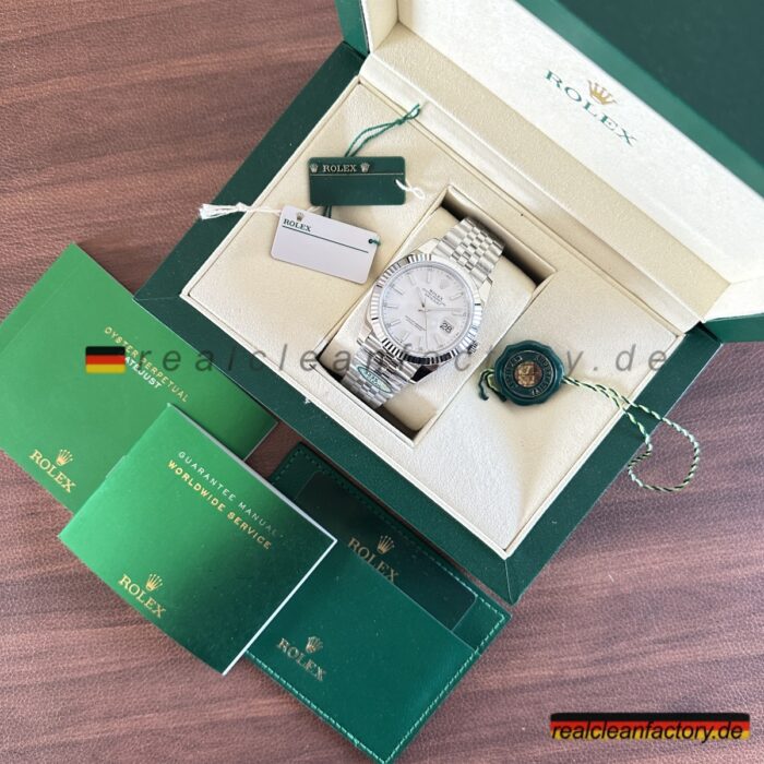 - Clean Factorys Rolex 1:1 Super Clone Datejust 126334-0010 verkörpert ultimativ zurückhaltenden Luxus mit seinem weißen Zifferblatt und der Weißgold-Riffel-Lünette – eine Kombination, die so dezent ist, dass sie fast schon „Stealth Wealth“ repräsentiert. Dieser monochrome Ansatz richtet sich an alle, die feinste Materialien und erstklassige Fertigung schätzen, ohne den Wunsch nach offensichtlicher Zurschaustellung. Ein weißes Zifferblatt zu gestalten, das reichhaltig wirkt statt steril, ist wesentlich anspruchsvoller, als es scheint: Es erfordert tiefes Verständnis, wie man Tiefe und Textur innerhalb einer minimalistischen Farbpalette erzeugt. Kombiniert mit der Komplexität einer Weißgold-Lünette und dem Jubilee-Armband entsteht eine Uhr, die stille Raffinesse ausstrahlt – sichtbar nur für jene, die genau hinsehen.