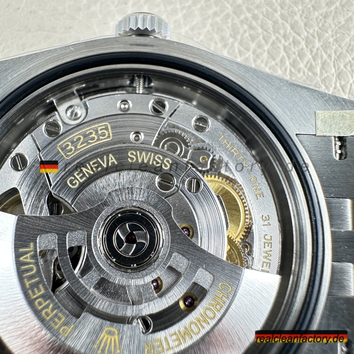 - Das 3235-Uhrwerk liefert die geschmeidige Präzision, die man bei dieser Qualitätsstufe erwartet. Der Datumswechsel erfolgt exakt um Mitternacht, die Krone arbeitet mit dem charakteristischen Schweizer Widerstand, und die 70-Stunden-Gangreserve bietet zuverlässige Autonomie. Gerade bei einem so zurückhaltenden Auftritt wird die mechanische Qualität zum sichtbarsten Ausdruck von Exzellenz.