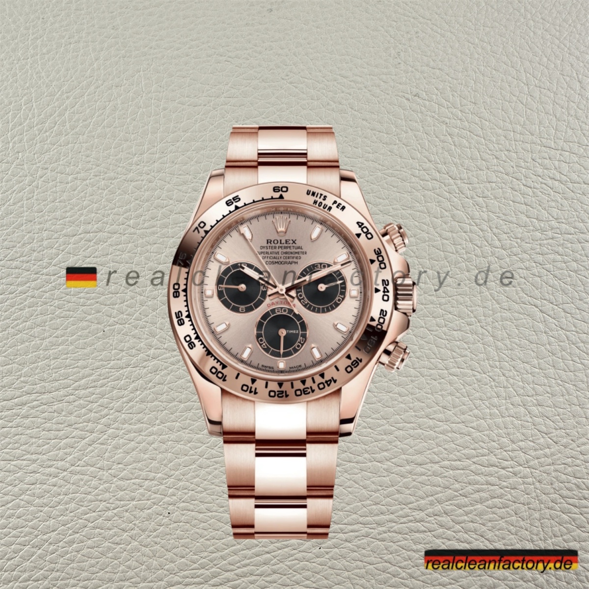 Diese Daytona 116505-0016 ist Clean Factorys eleganteste Everose-Variante – dezente Sundust-Brillanz, klare Funktionalität und kompromisslose Qualität.