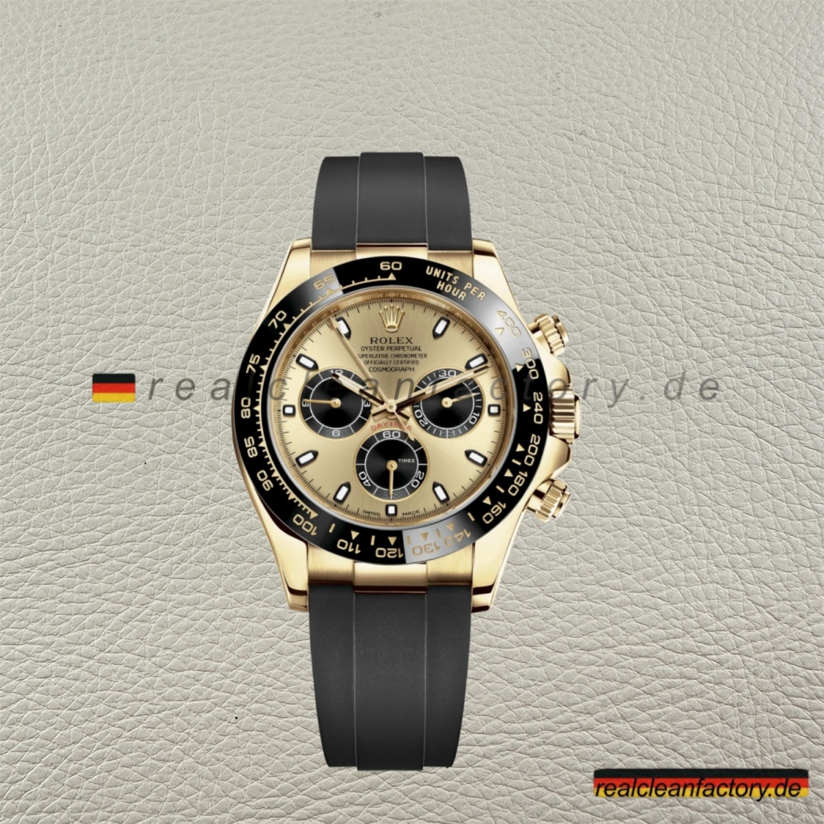 - Clean Factory Rolex Daytona 116518LN-0048 Yellow Gold Champagne Black Dial Oysterflex Super Clone