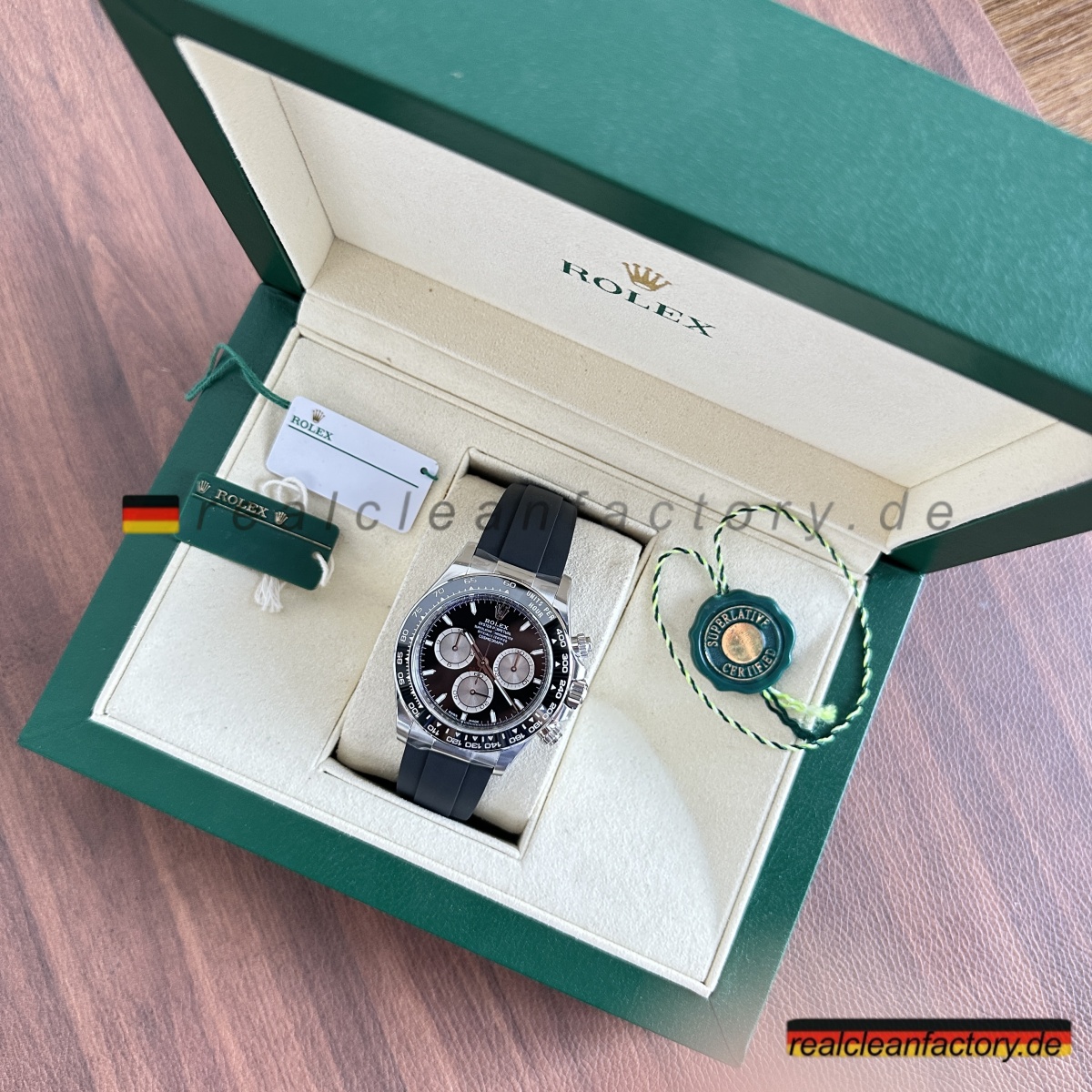 - Hier ist die Sache mit wahrer Sophistication — sie schreit nicht nach Aufmerksamkeit. Die Clean Factory 126519LN-0002 "Reverse Panda" ist nicht einfach nur eine weitere schwarze Zifferblatt-Uhr. Das ist die Rolex Daytona, die Macht flüstert, während alle anderen schreien.