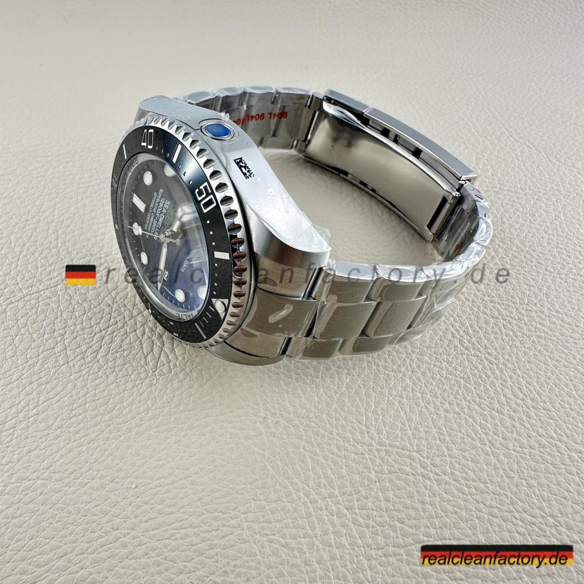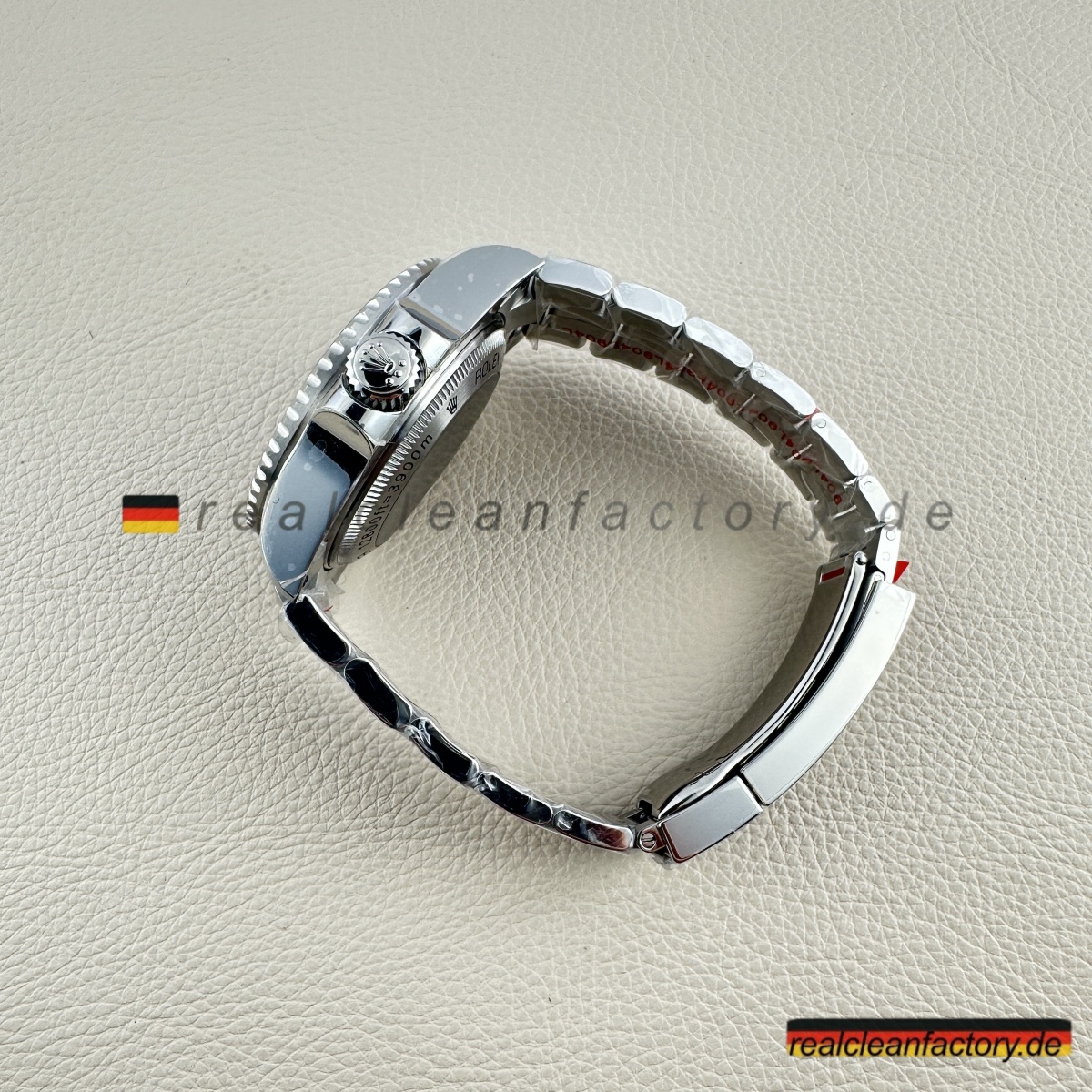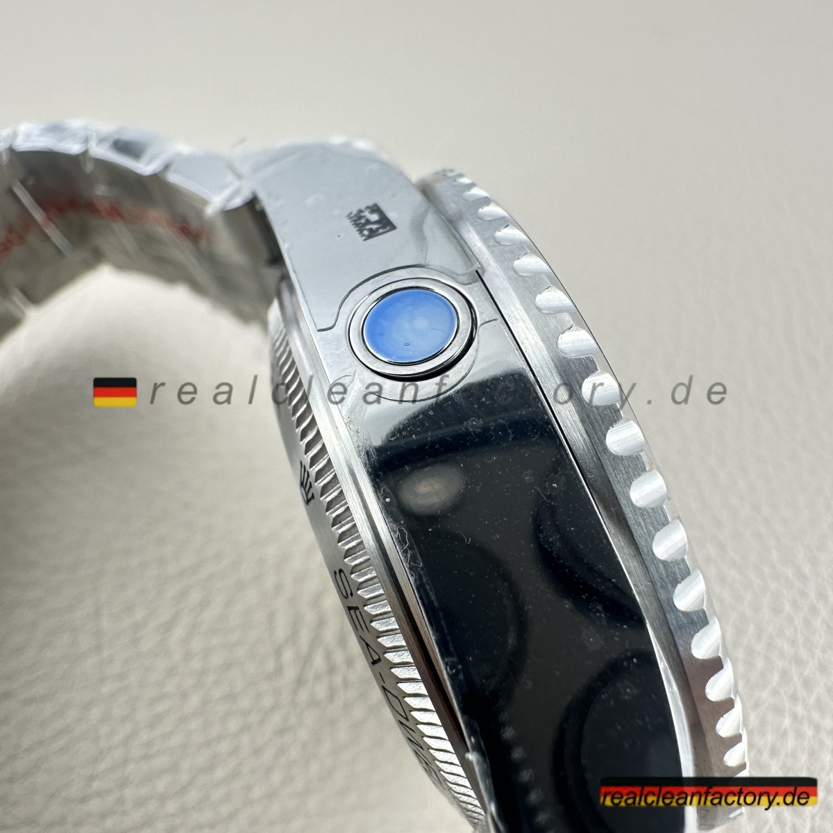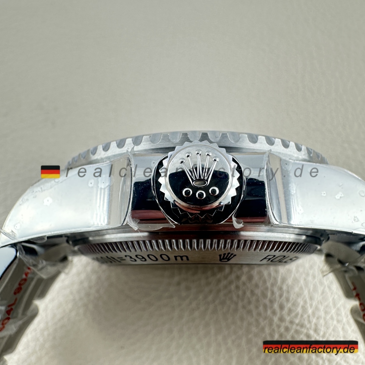 - Das 44-mm-Gehäuse mit dem Ringlock-System ist ingenieurtechnische Spitzenleistung. Es ist keine vergrößerte Sea-Dweller, sondern eine vollständig eigenständige Konstruktion für extreme Tiefen. Clean Factory hat das Ringlock-System originalgetreu repliziert: den Stickstoff-legierten Kompressionsring, das gewölbte Saphirglas, den Titanboden aus Grade 5. Jedes Bauteil arbeitet zusammen für die echte Druckresistenz bis 3.900 Meter.