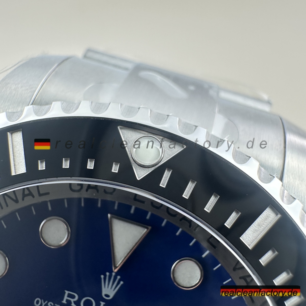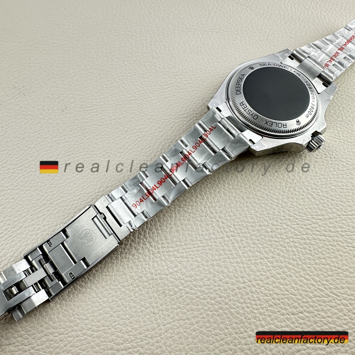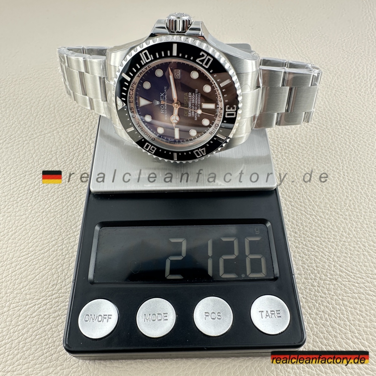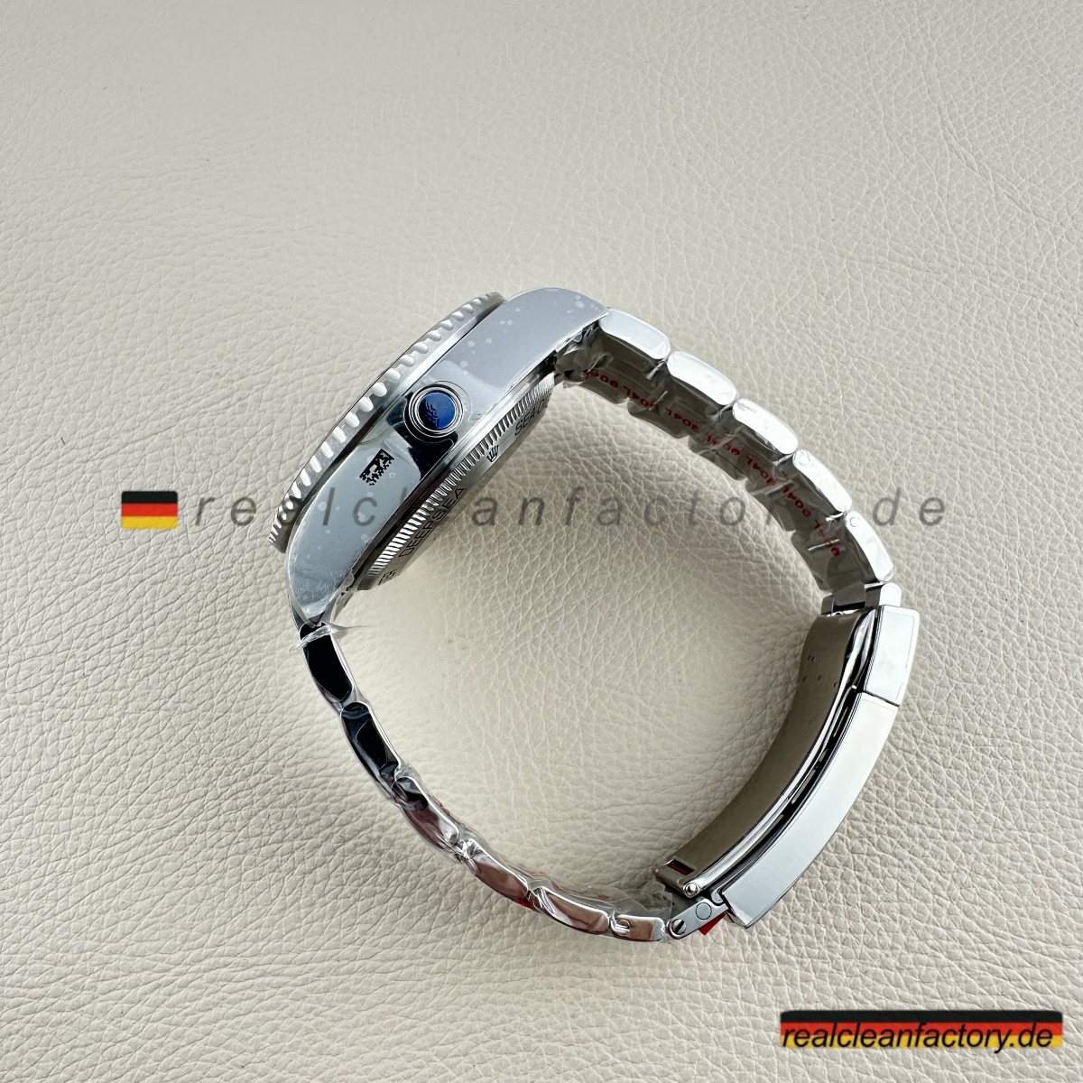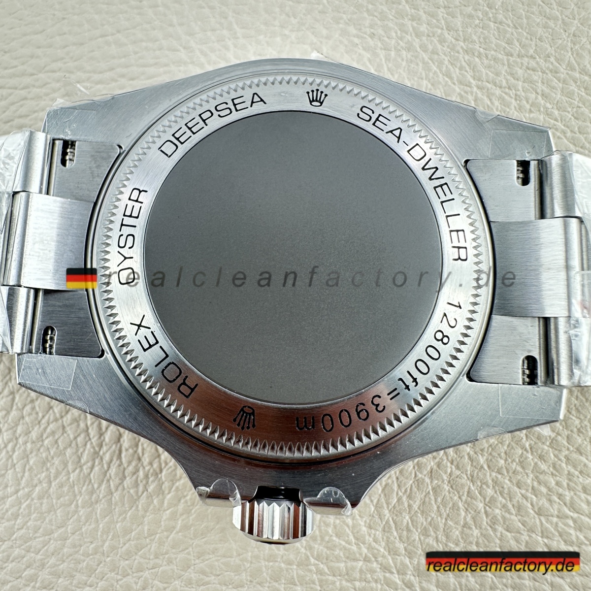 - Das 44-mm-Gehäuse mit dem Ringlock-System ist ingenieurtechnische Spitzenleistung. Es ist keine vergrößerte Sea-Dweller, sondern eine vollständig eigenständige Konstruktion für extreme Tiefen. Clean Factory hat das Ringlock-System originalgetreu repliziert: den Stickstoff-legierten Kompressionsring, das gewölbte Saphirglas, den Titanboden aus Grade 5. Jedes Bauteil arbeitet zusammen für die echte Druckresistenz bis 3.900 Meter.
